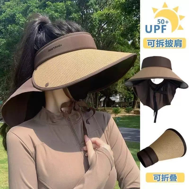 2026년 신형 여성용 여름 자외선 차단 모자, 목 보호, 자외선 차단, 챙이 큰 야외용 밀짚 모자, 태양 모자스토어 가기