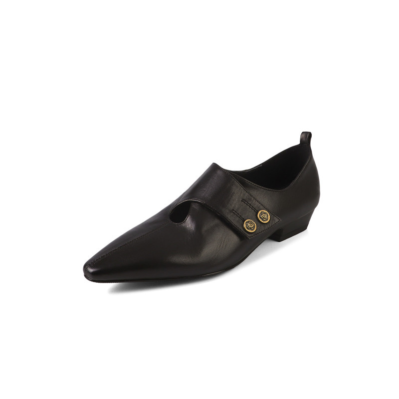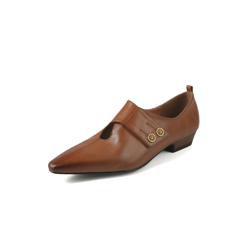 2025 봄 새로운 빈티지 뾰족한 작은 가죽 신발 전체 가죽 깊은 입 플랫 신발 영국 스타일 옥스포드 신발 여성스토어 가기