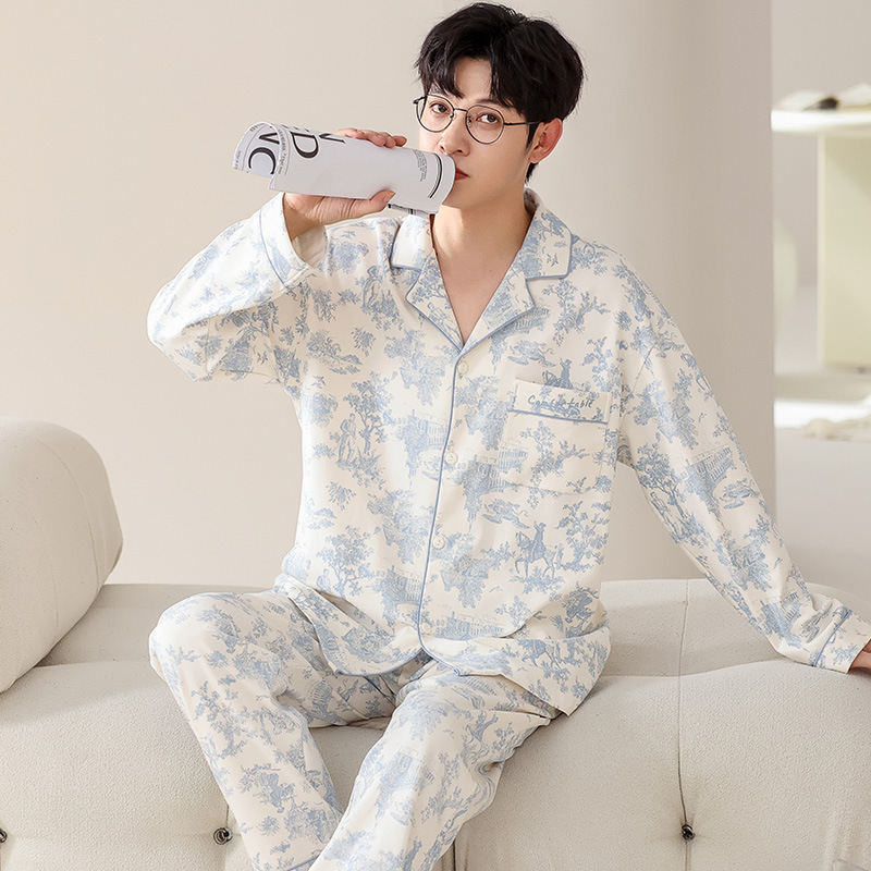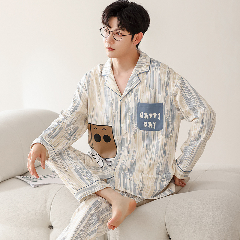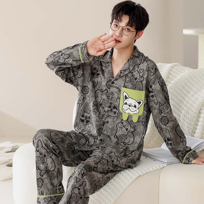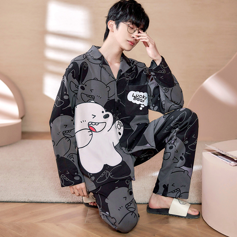 트렌디 한 브랜드 십대 면 파자마 남성 봄과 가을 카디건 플러스 사이즈 면 긴 소매 바지 만화 홈 의류 세트스토어 가기