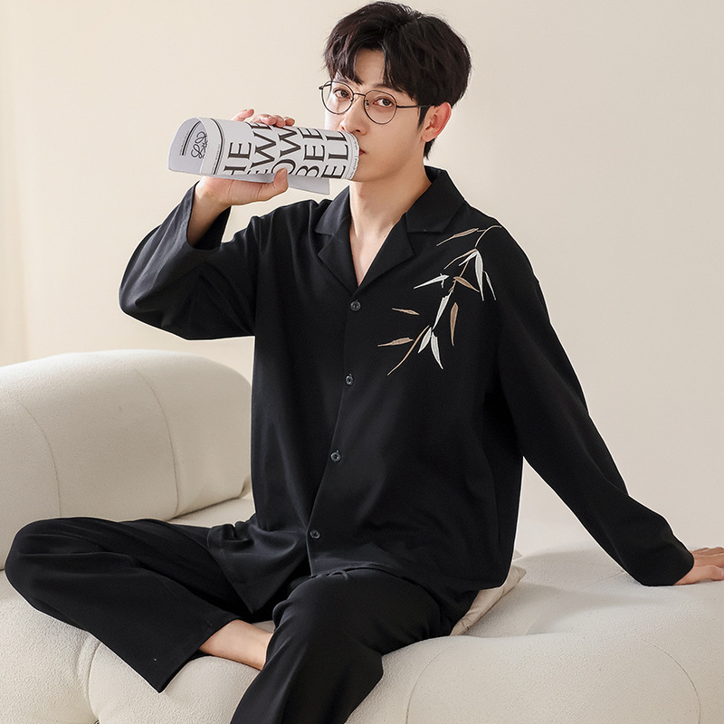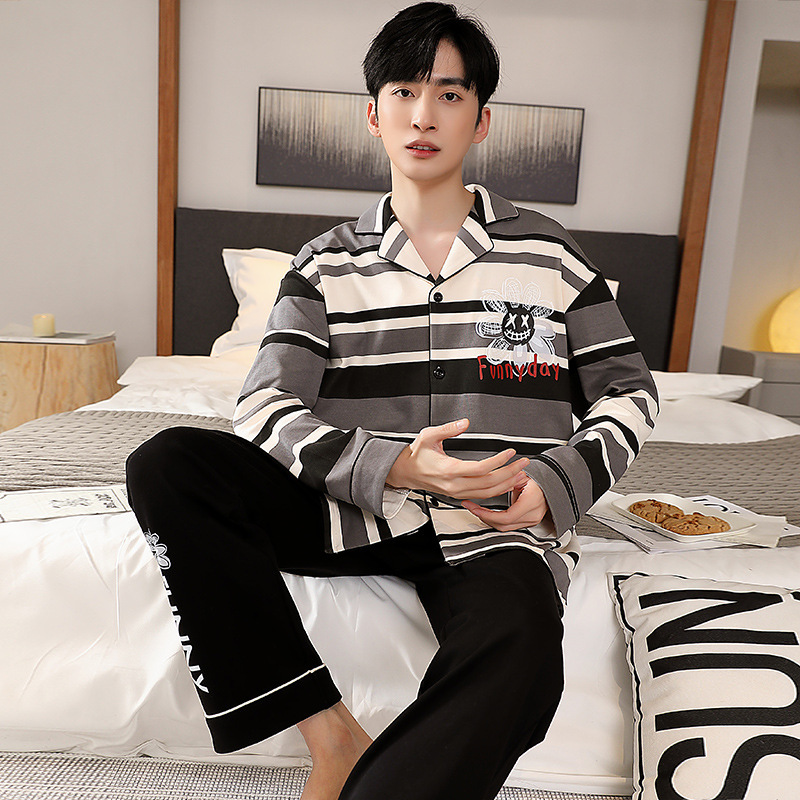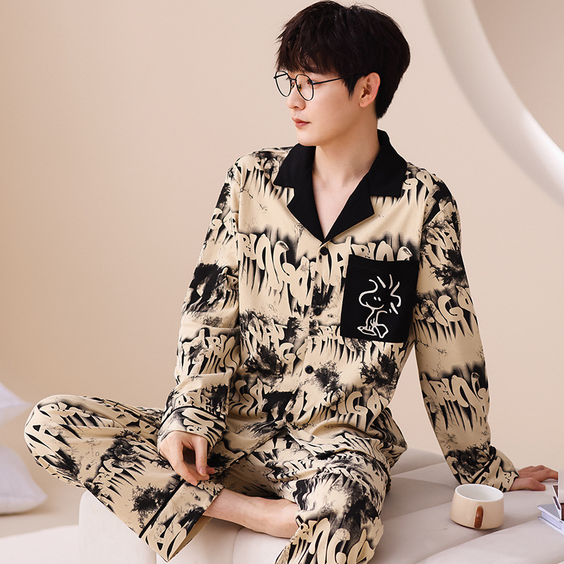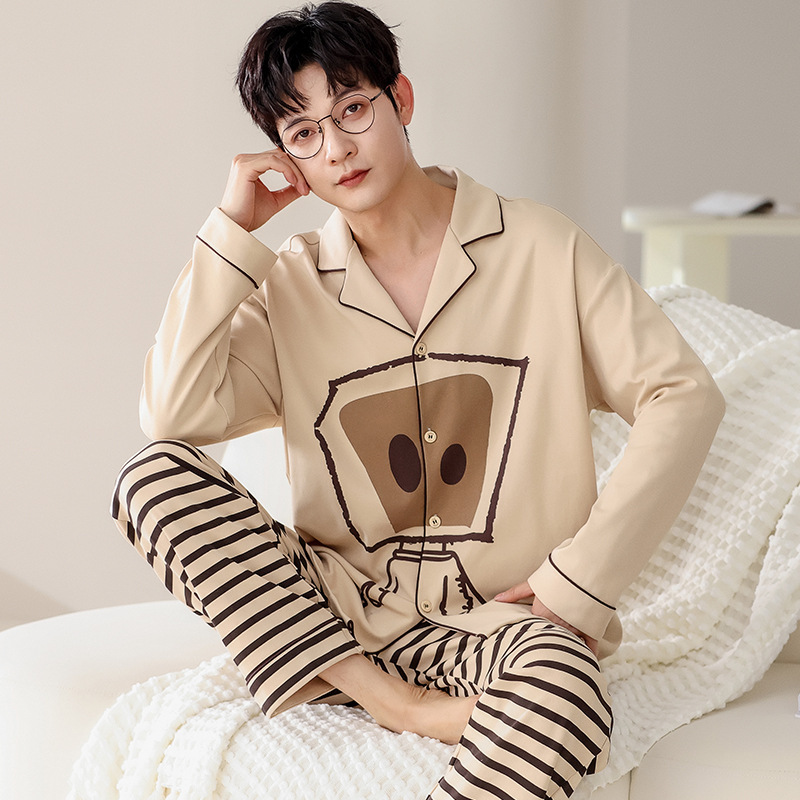 트렌디 한 브랜드 십대 면 파자마 남성 봄과 가을 카디건 플러스 사이즈 면 긴 소매 바지 만화 홈 의류 세트