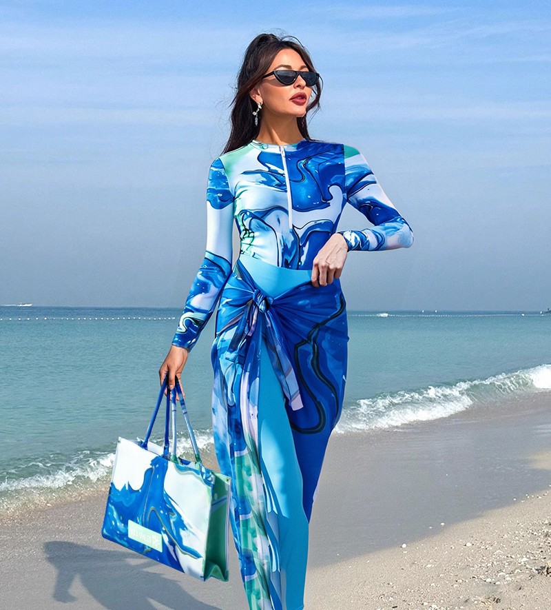2025 새로운 아마존 이슬람 수영복 롱 스커트 바지 레트로 슬림 보수적 인 온천 원피스 수영복 여성스토어 가기