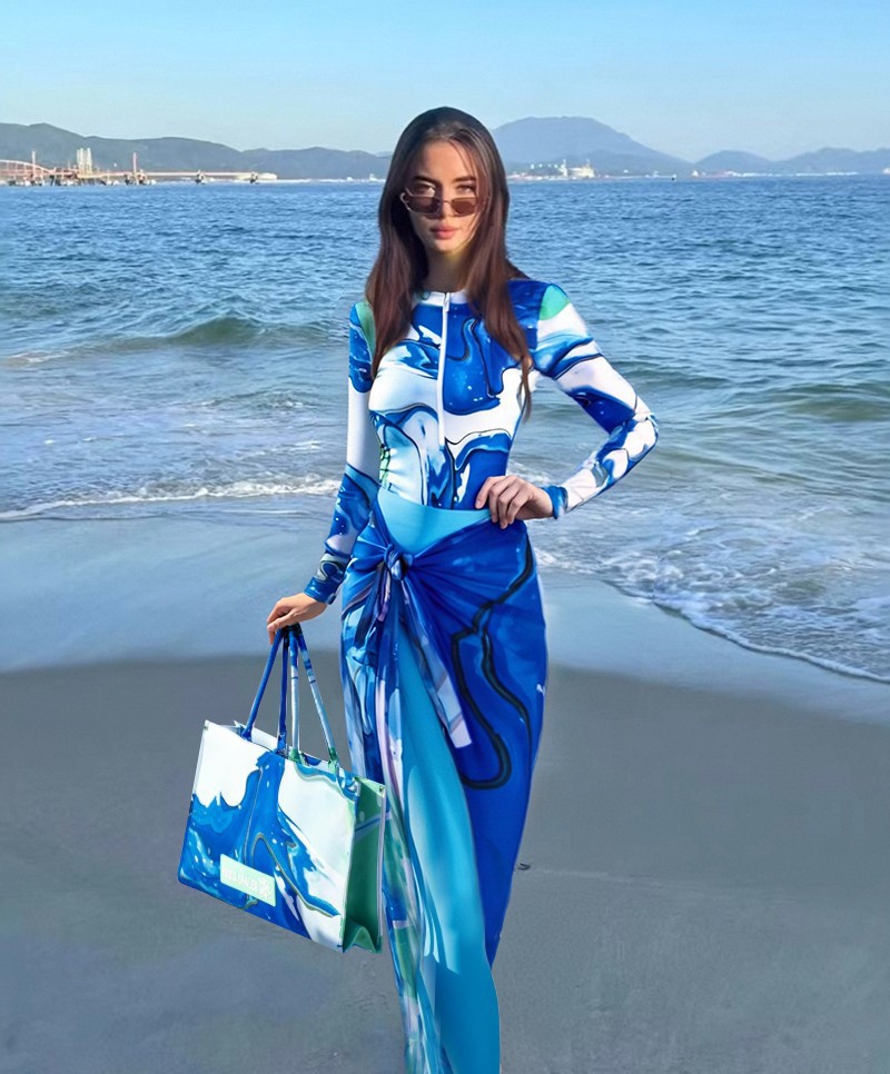 2025 새로운 아마존 이슬람 수영복 롱 스커트 바지 레트로 슬림 보수적 인 온천 원피스 수영복 여성