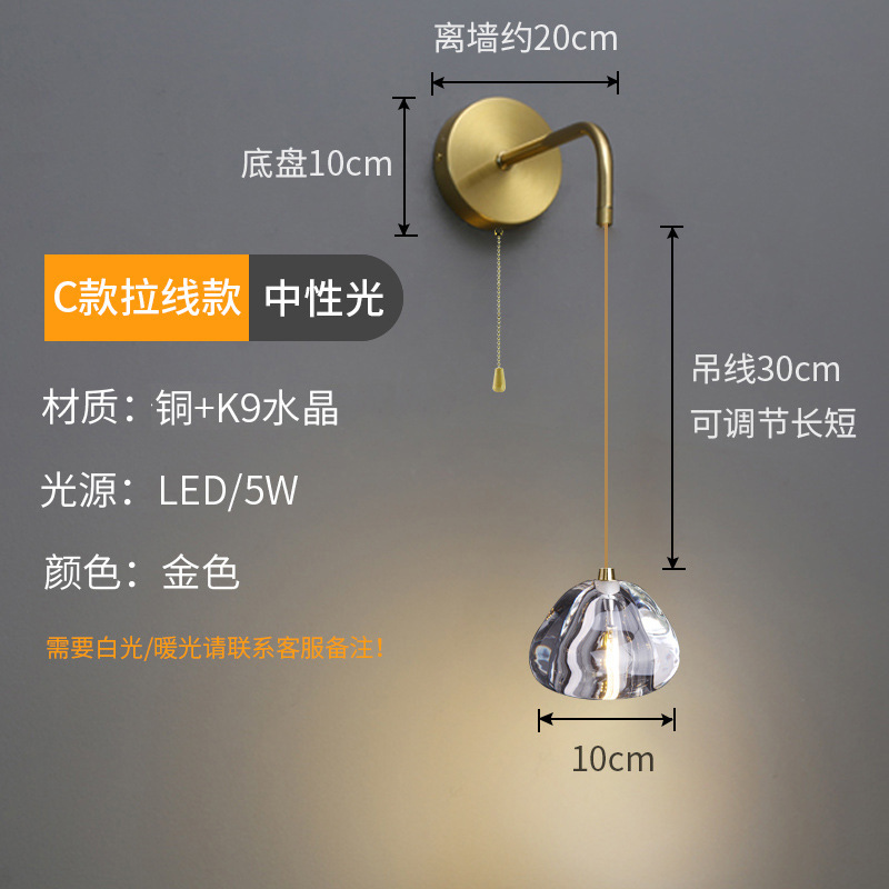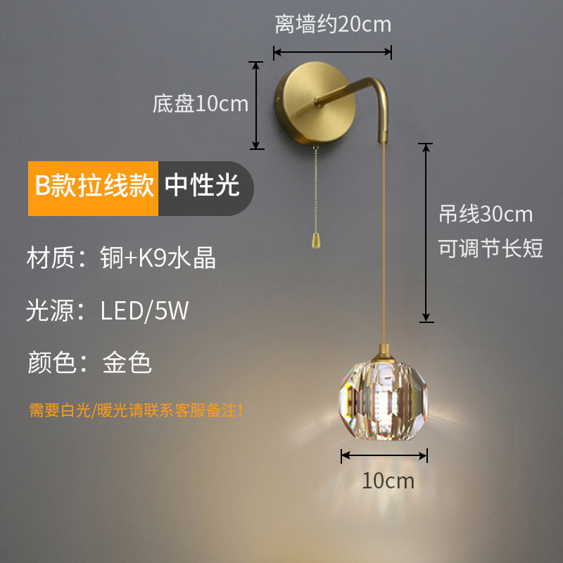 가벼운 럭셔리 침실 침대 옆 벽등, 긴 코드, 모던하고 심플한 디자인, 독창적이고 개성 있는 벽등, 인터넷 인기 침대 옆 벽등, 긴 스트립형 벽걸이 조명