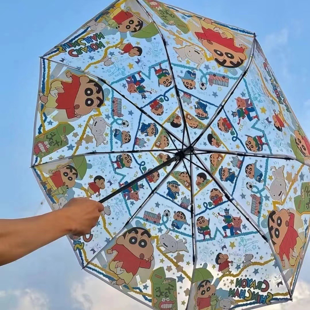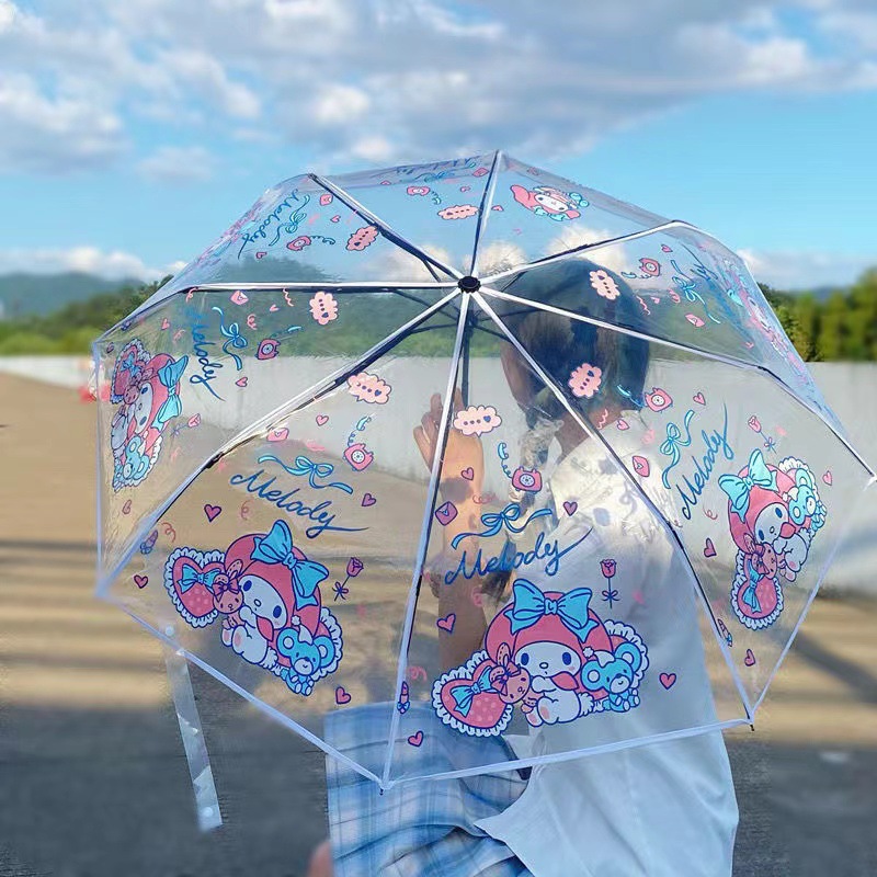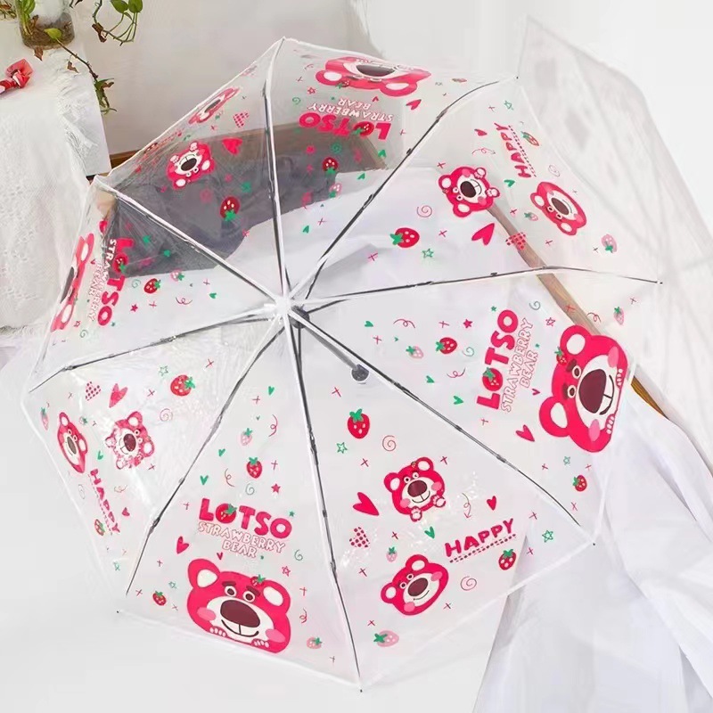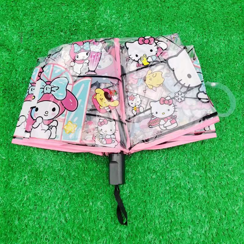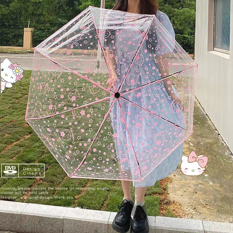 Sanli Oh Stilwell 작은 새로운 접히는 투명 우산 3 배 자동 투명 우산 케이티 Kt 귀여운 만화스토어 가기
