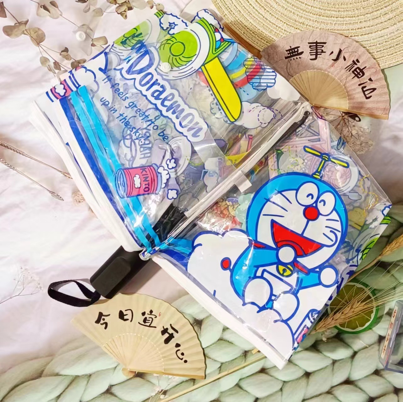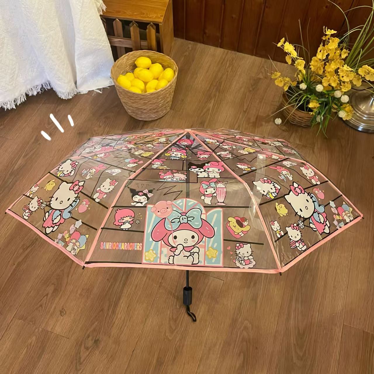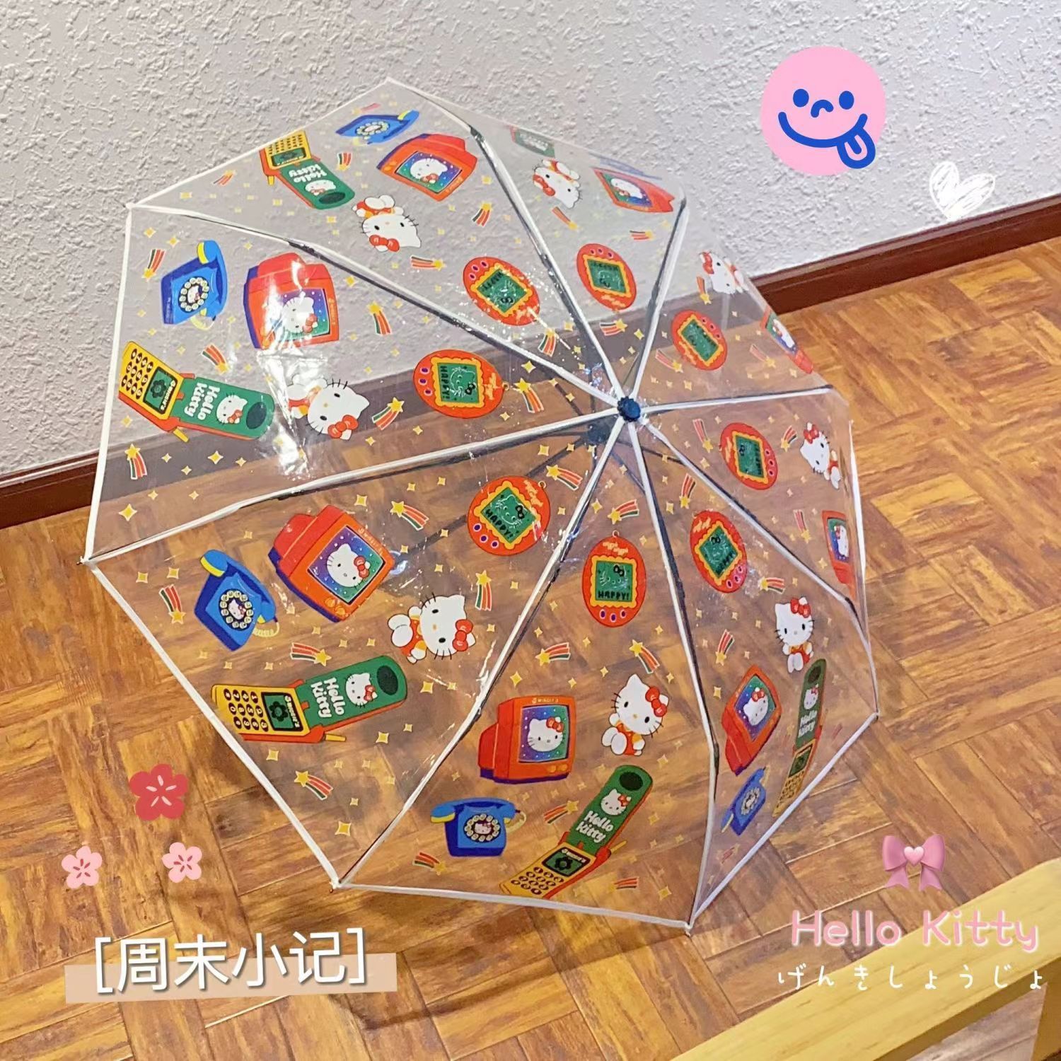 Sanli Oh Stilwell 작은 새로운 접히는 투명 우산 3 배 자동 투명 우산 케이티 Kt 귀여운 만화스토어 가기