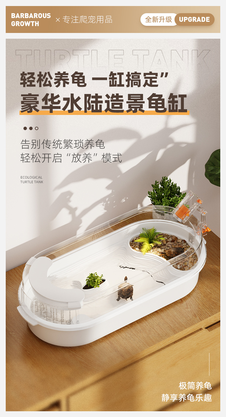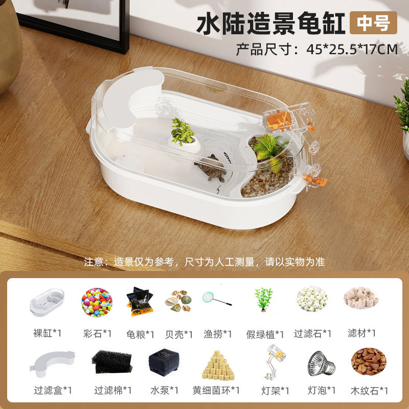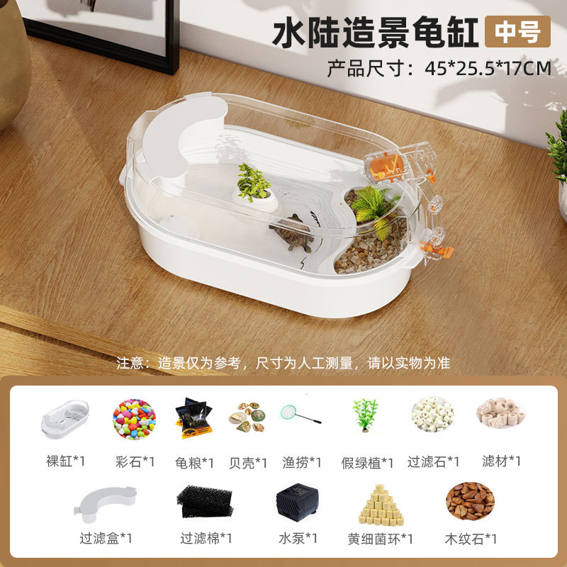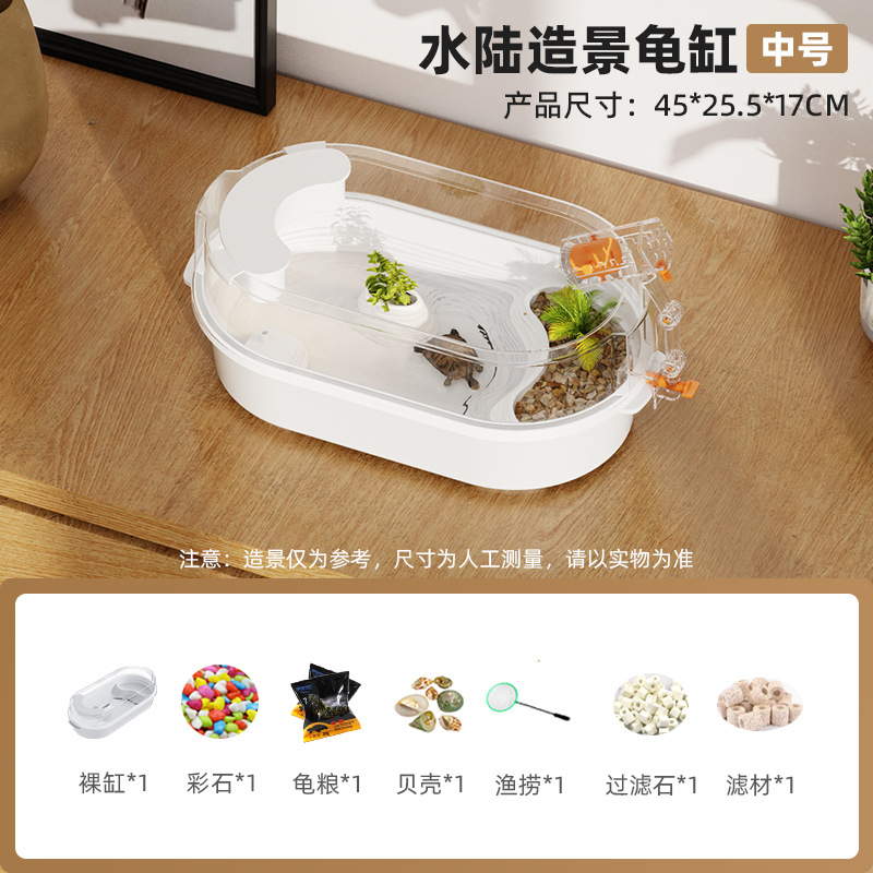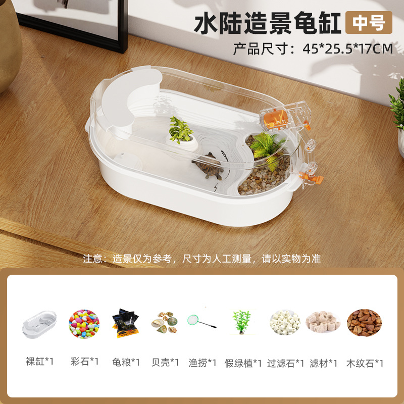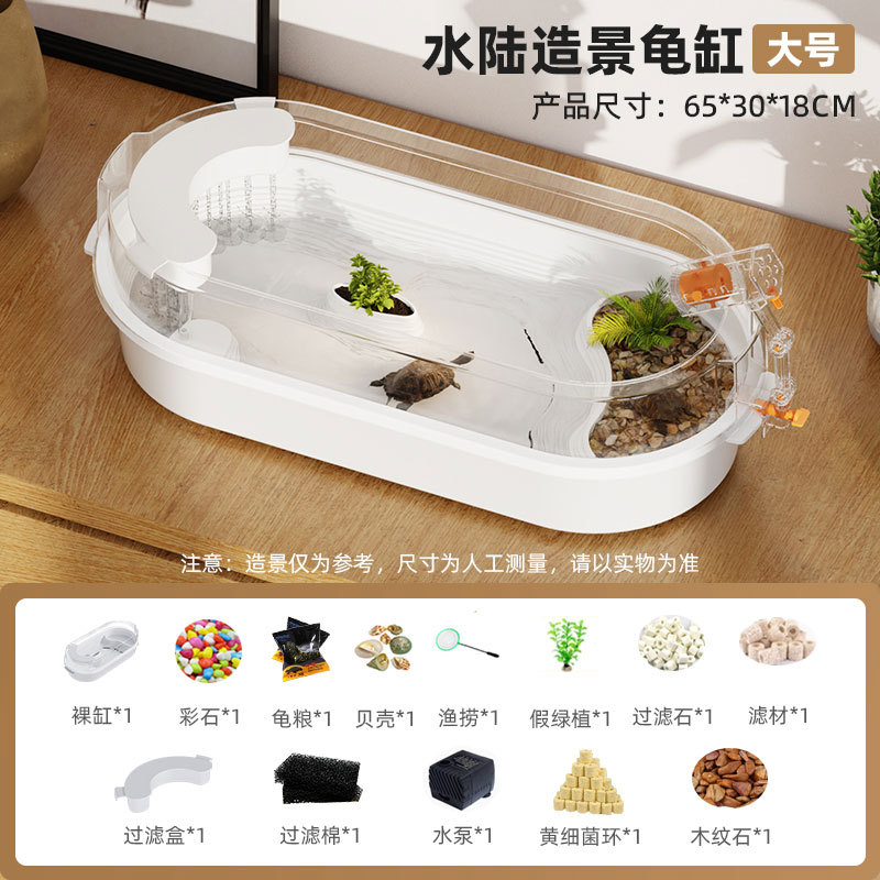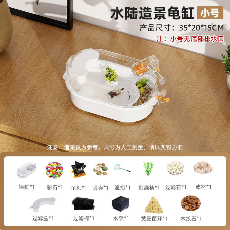 BG 데스크탑 거북이 수유 탱크 특수 생태 플라스틱 거북이 분지 거북이 탱크 가정용 거실 작은 순환스토어 가기