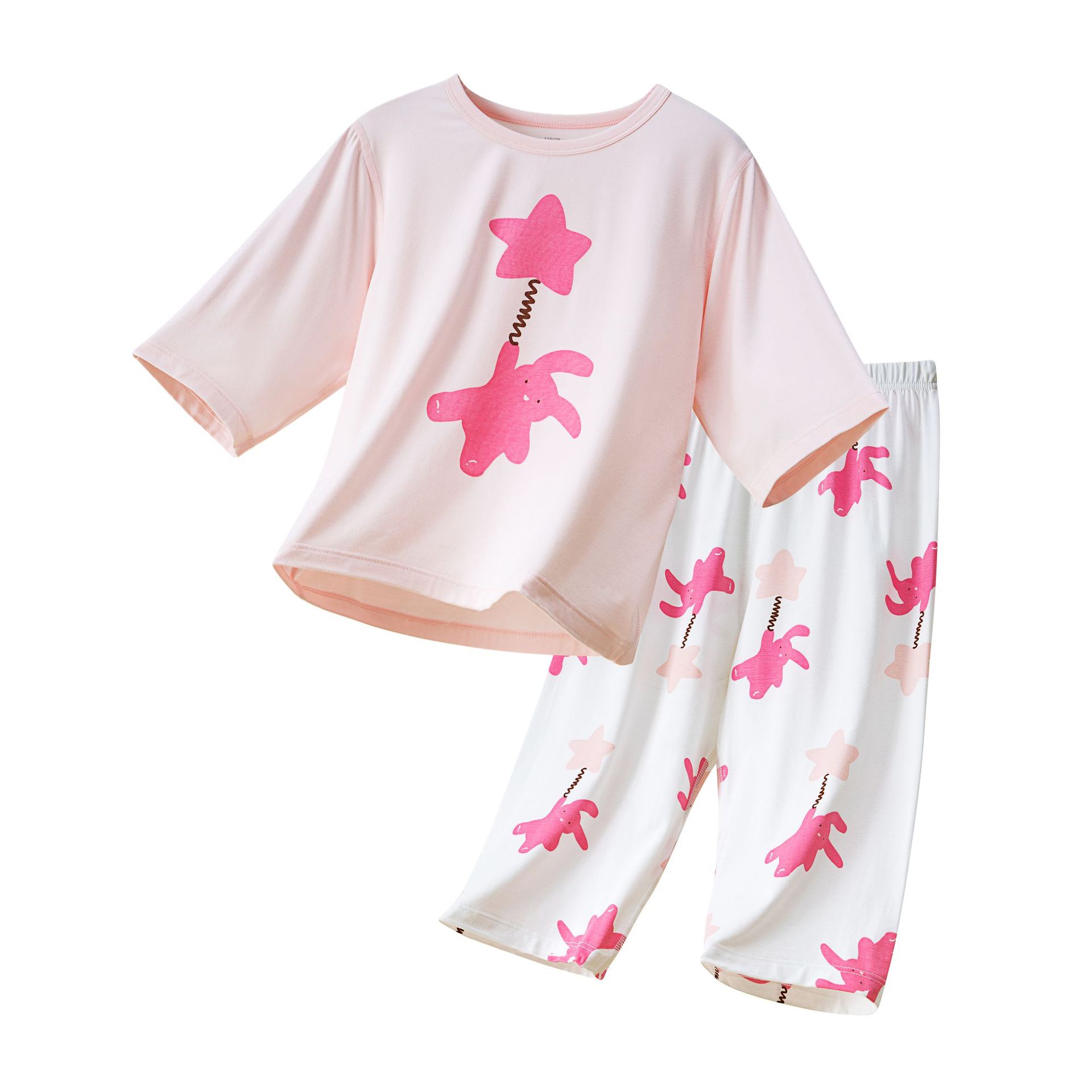 어린이 홈 의류 클래스 봄과 여름 얇은 소녀 잠옷 Youkosi 박테리아 어린이 만화 티셔츠 반팔 세트스토어 가기