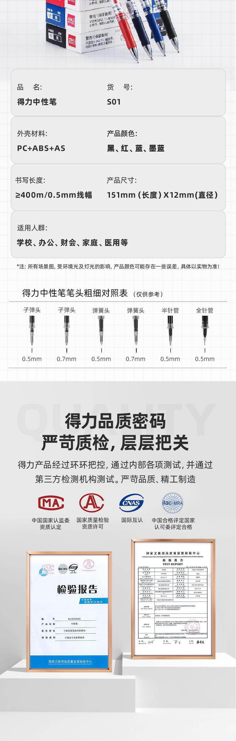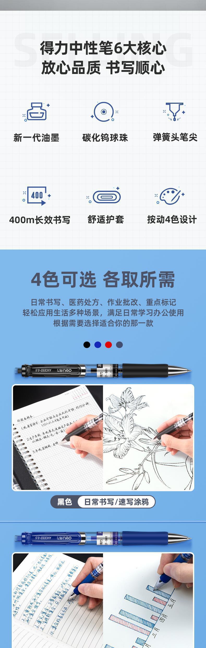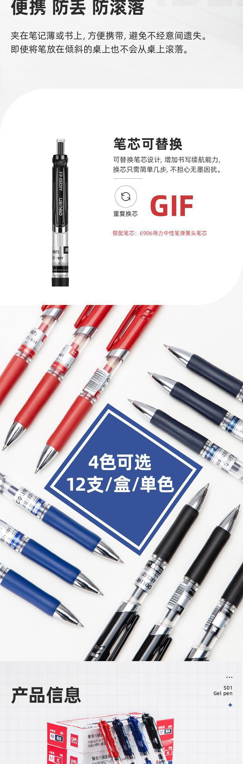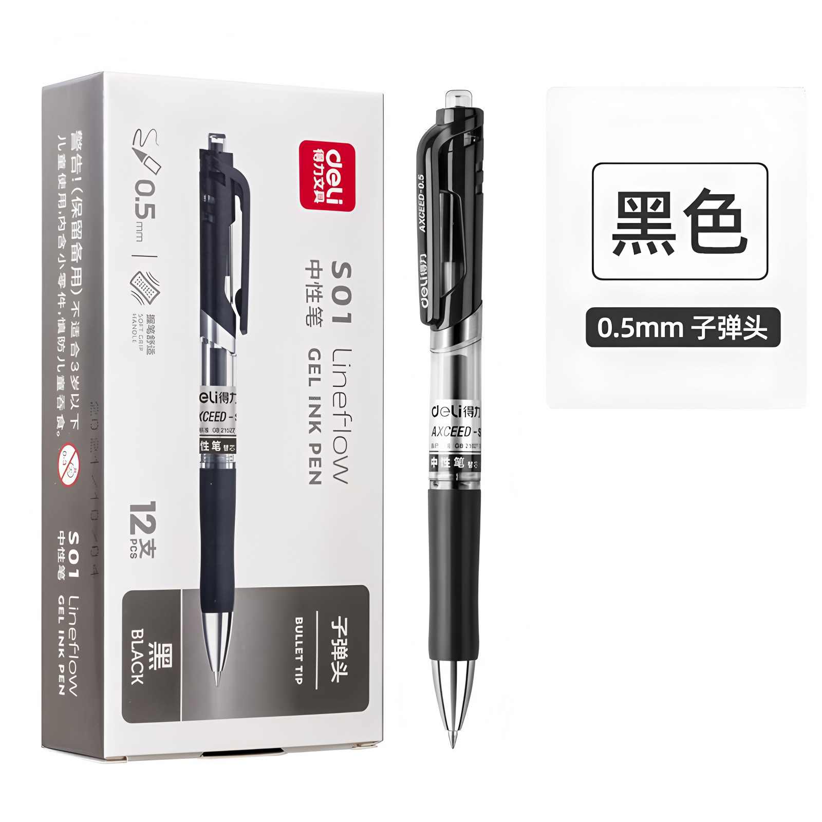 대세일 델리 S01 젤 펜 0.5mm 총알형 펜 사무용 학생용 클릭형 젤 펜