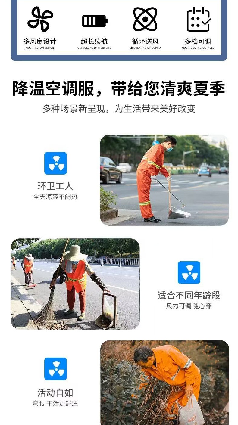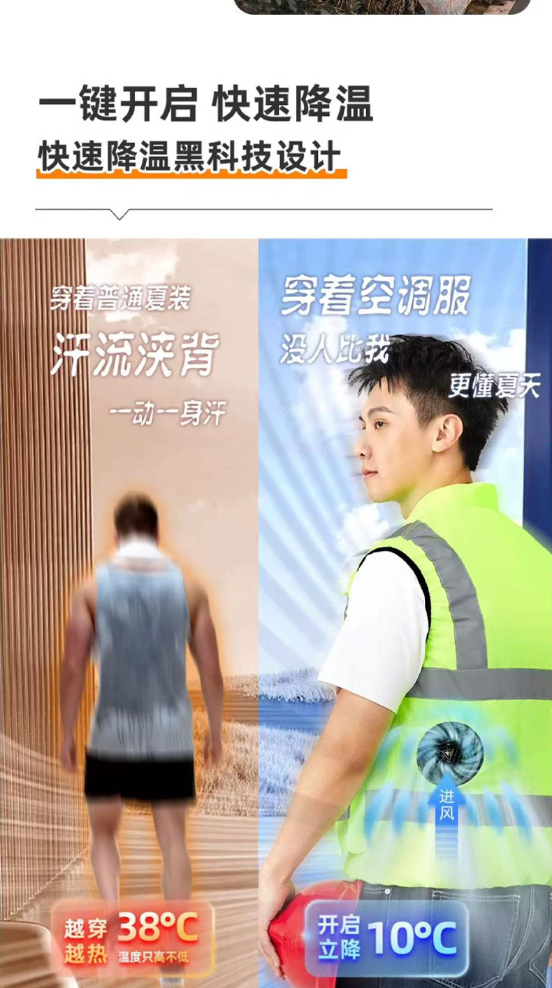 국경 간 여름 에어컨 의류 반사 스트립 팬 의류 조끼 건설 현장 야간 작업복 남성 야외 냉각스토어 가기