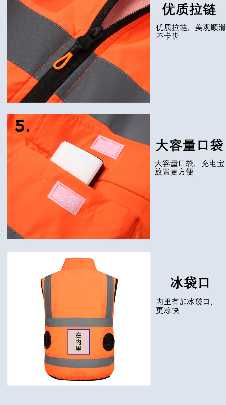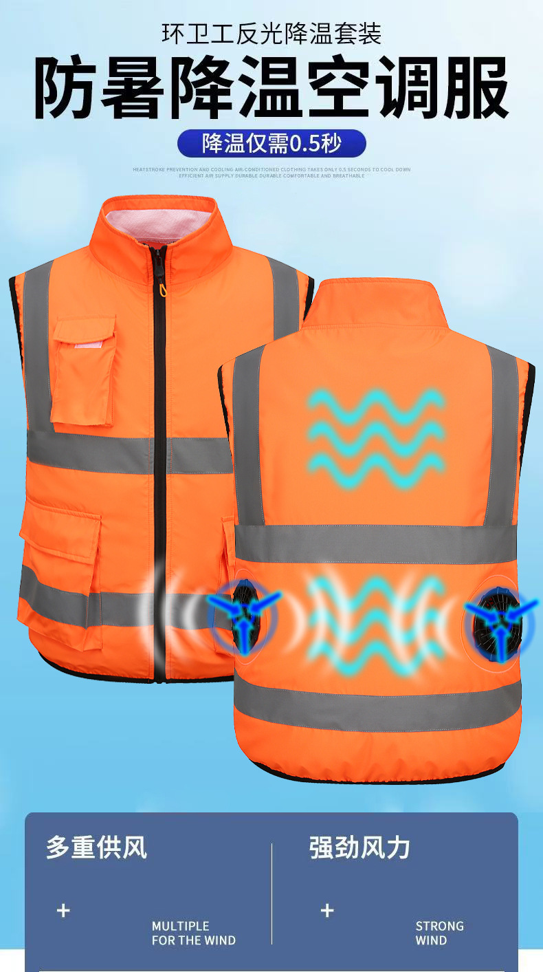 국경 간 여름 에어컨 의류 반사 스트립 팬 의류 조끼 건설 현장 야간 작업복 남성 야외 냉각