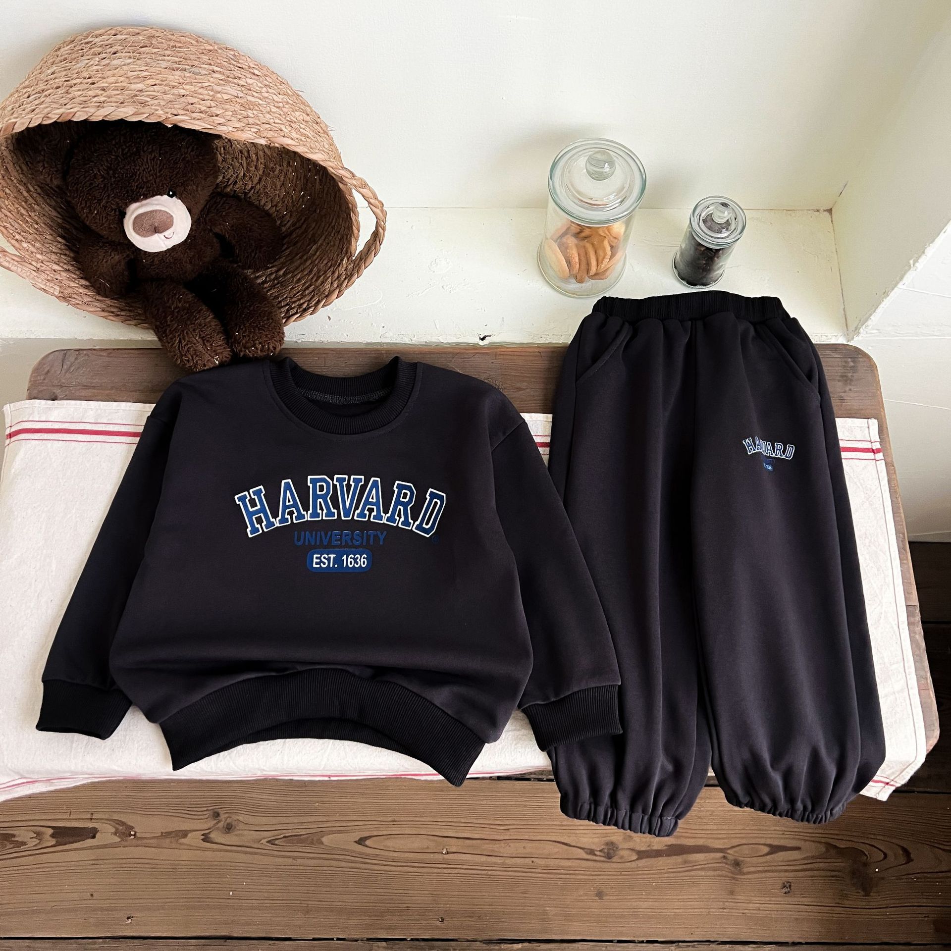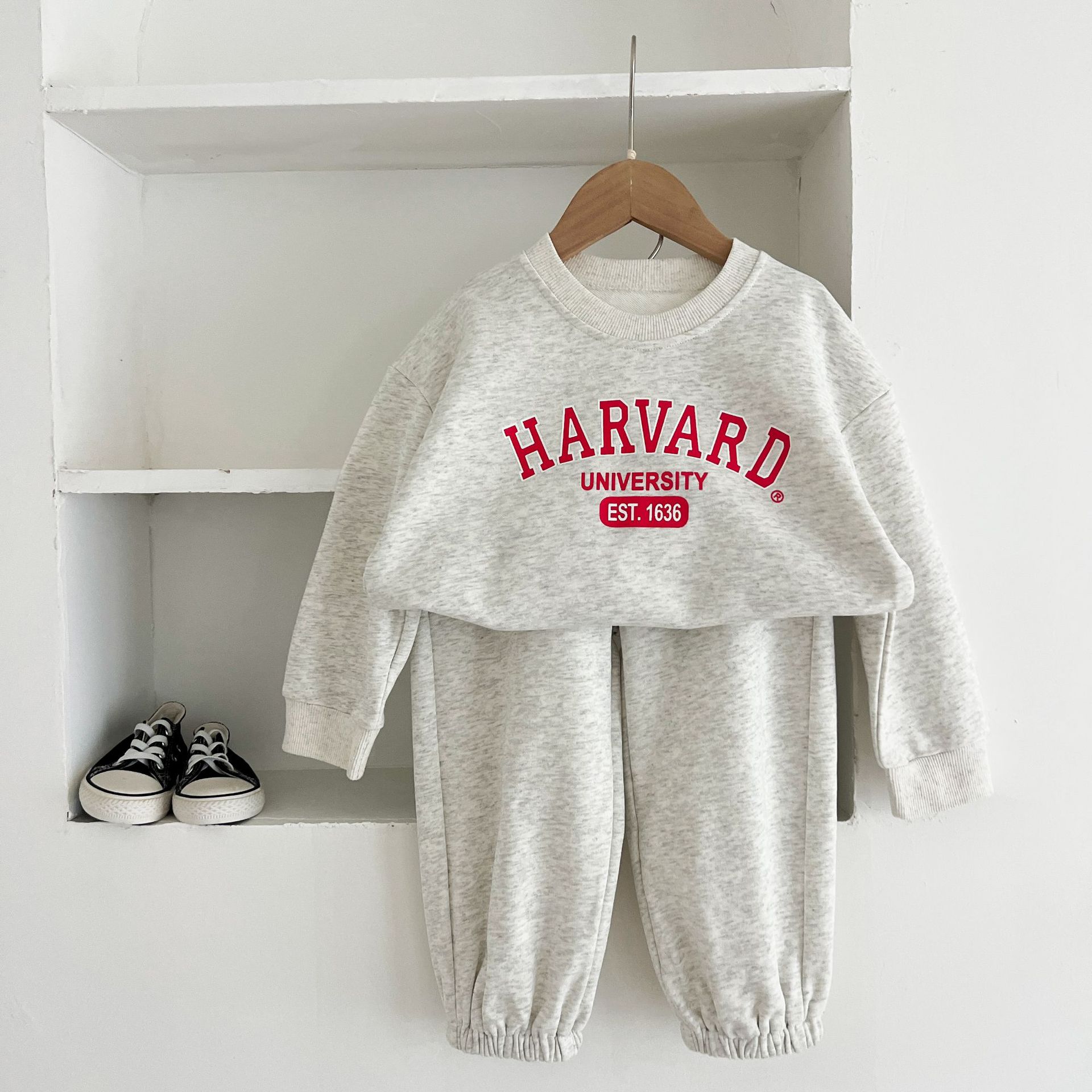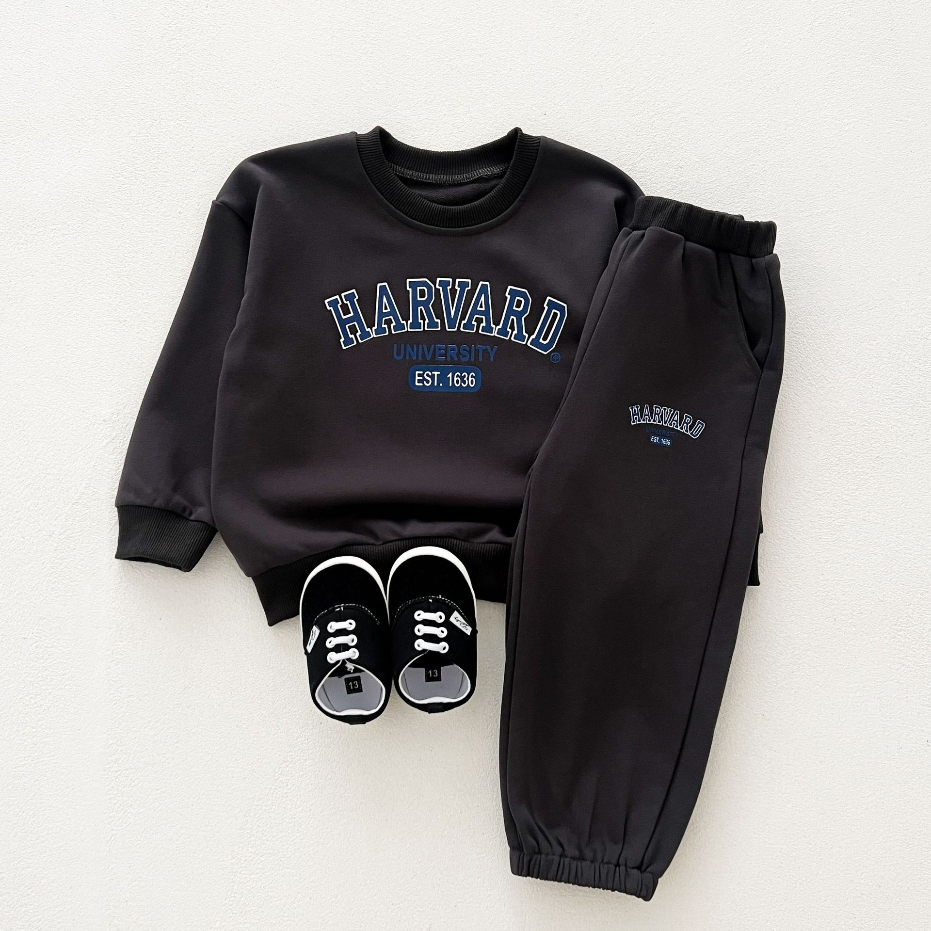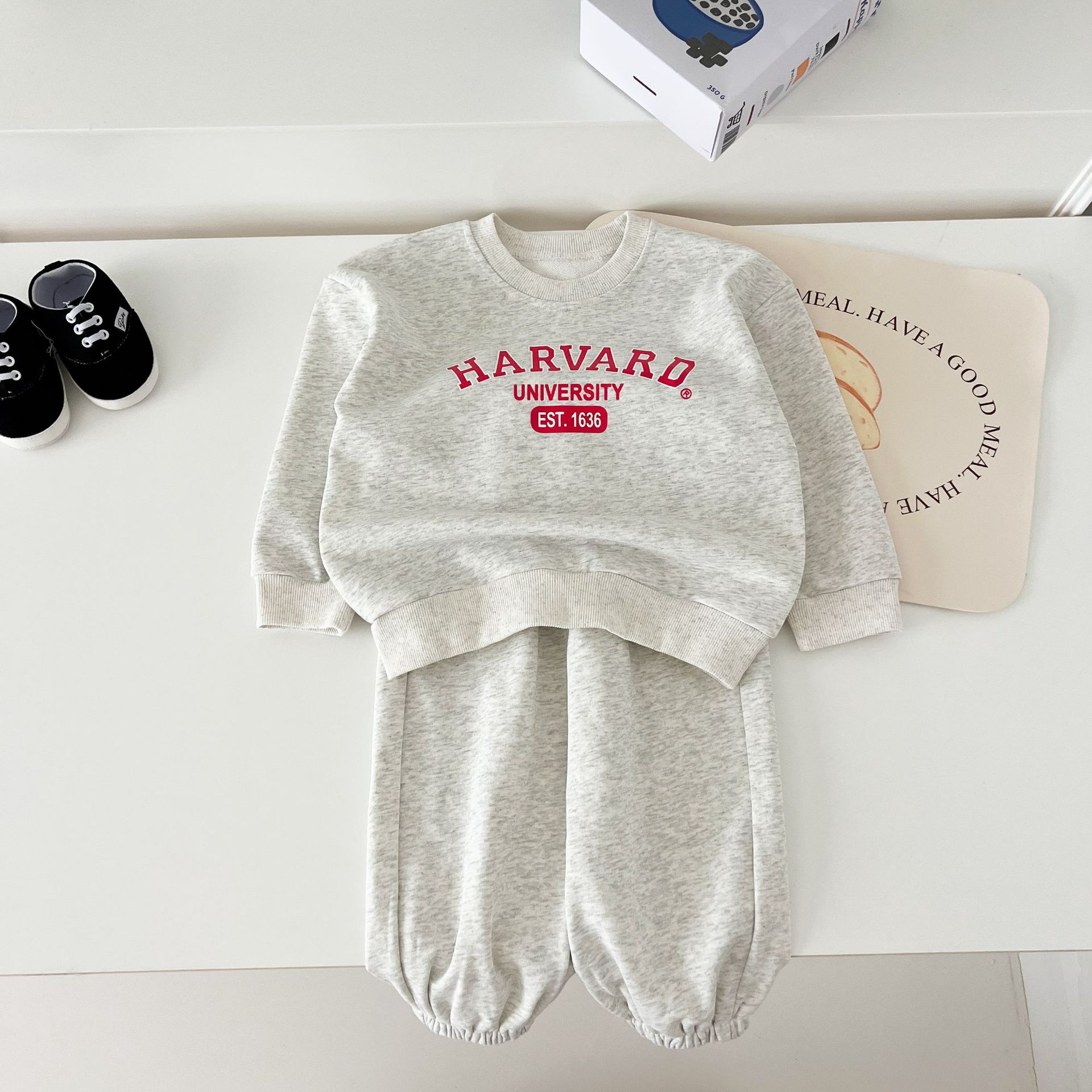 어린이 세트 봄 가을 신상품 남아용 레터 프린트 스포츠 세트 여아용 스웨트셔츠와 바지 겨울용 플리스 버전스토어 가기