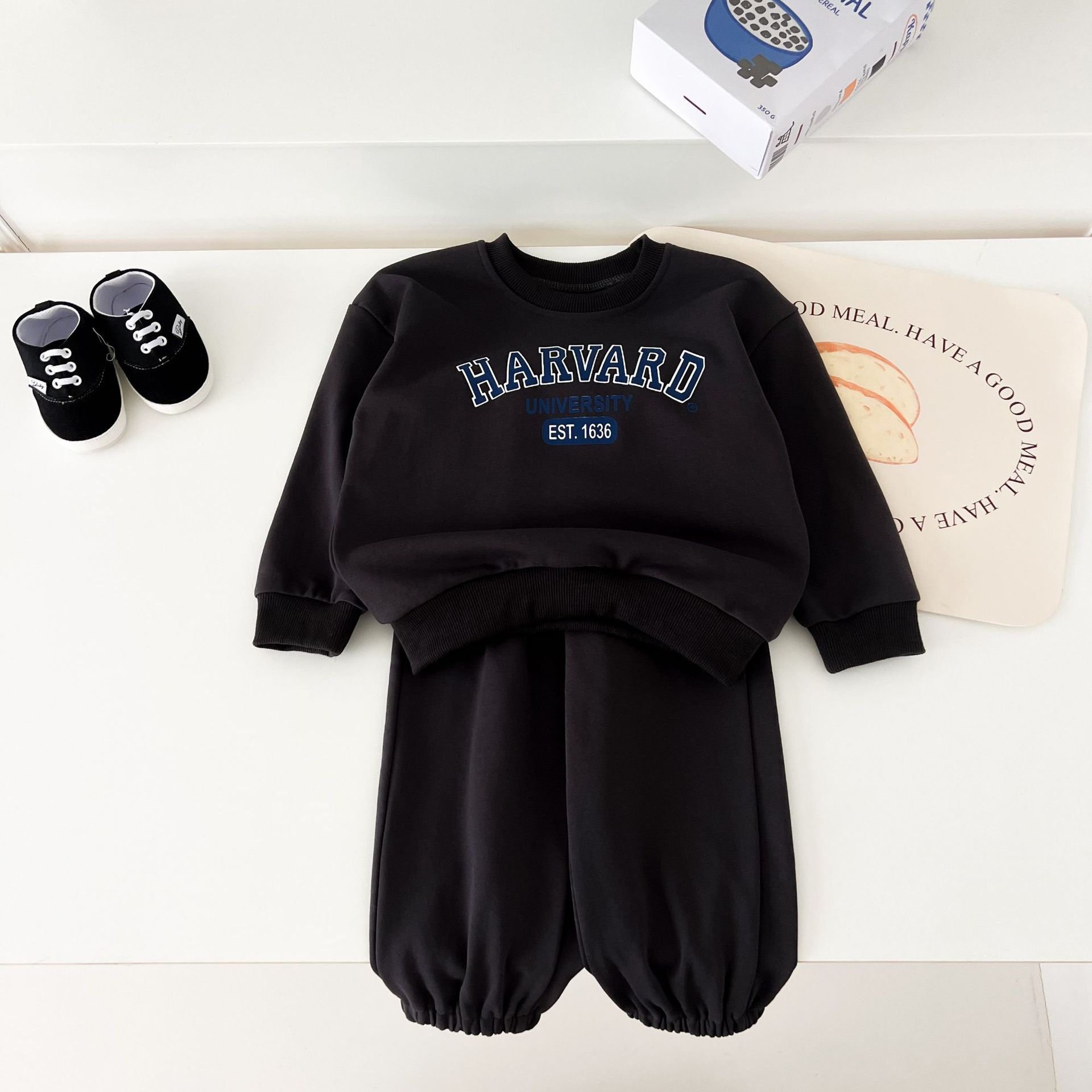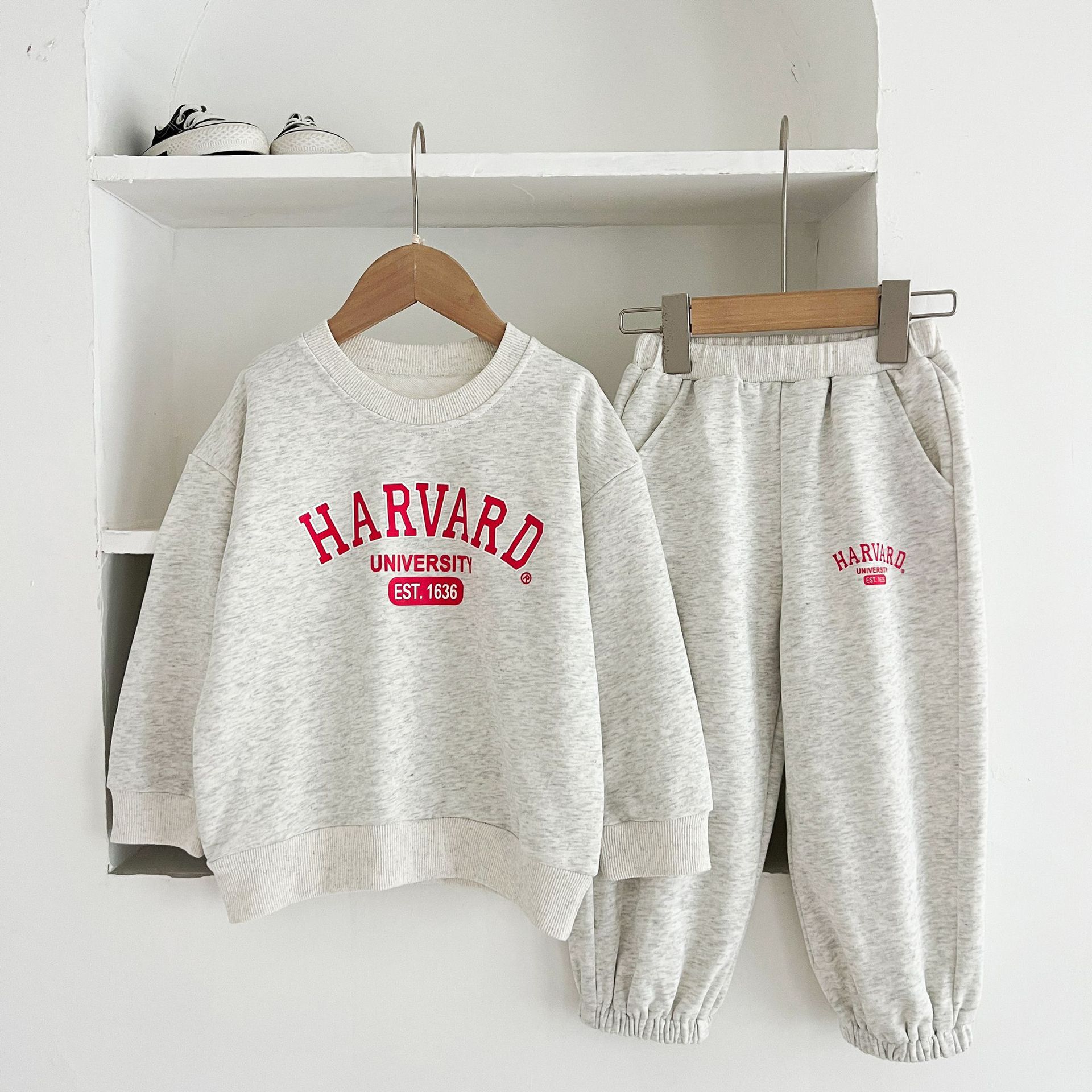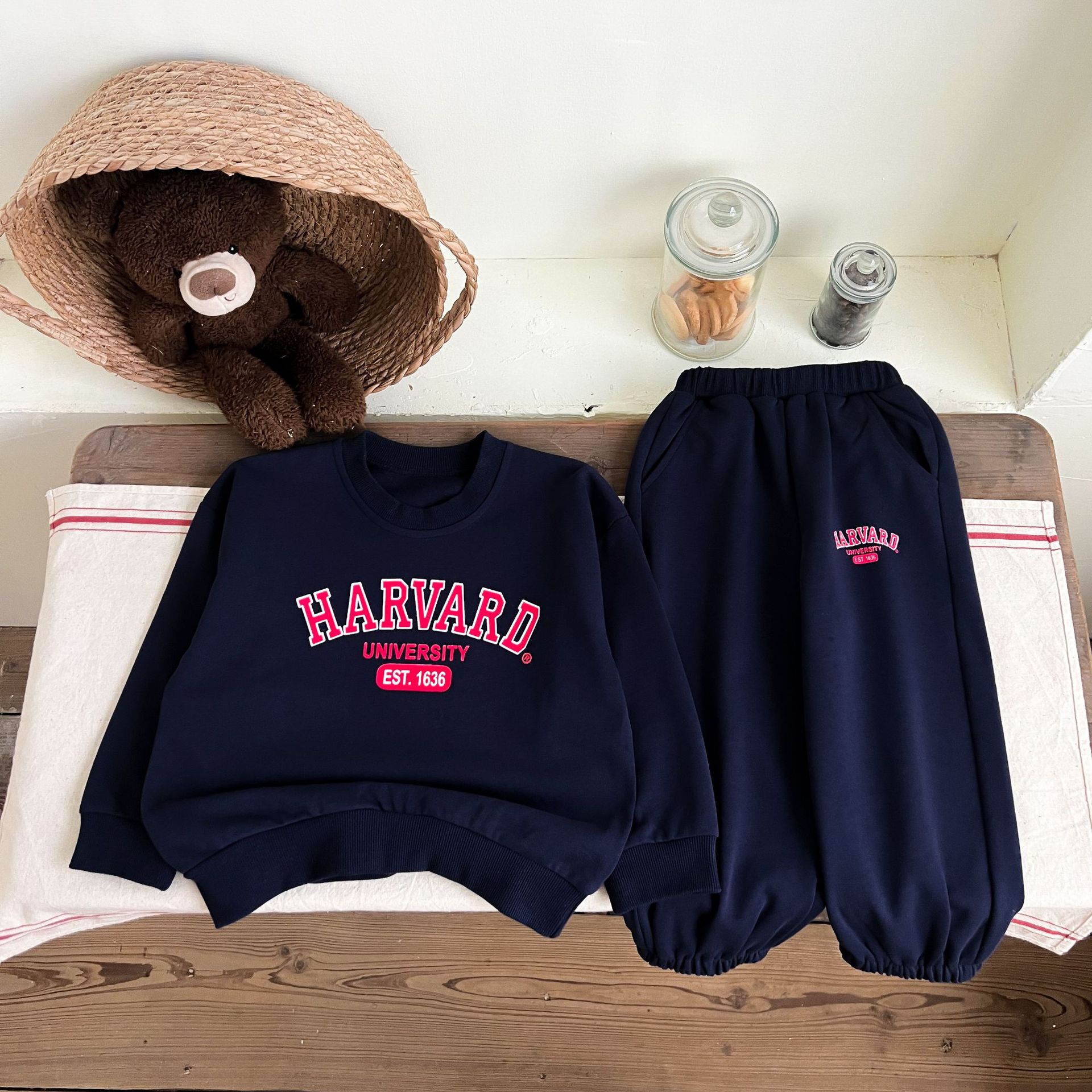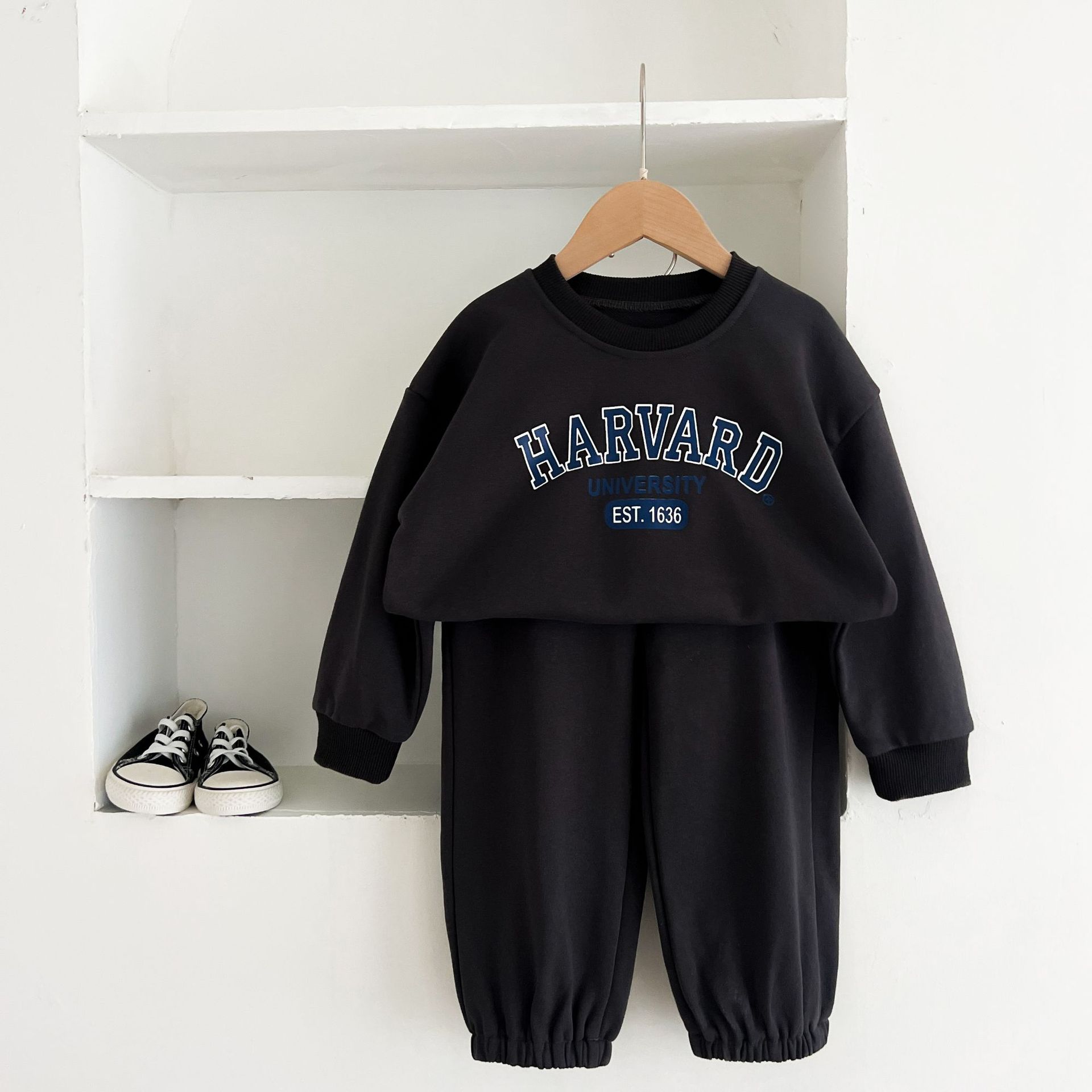 어린이 세트 봄 가을 신상품 남아용 레터 프린트 스포츠 세트 여아용 스웨트셔츠와 바지 겨울용 플리스 버전스토어 가기