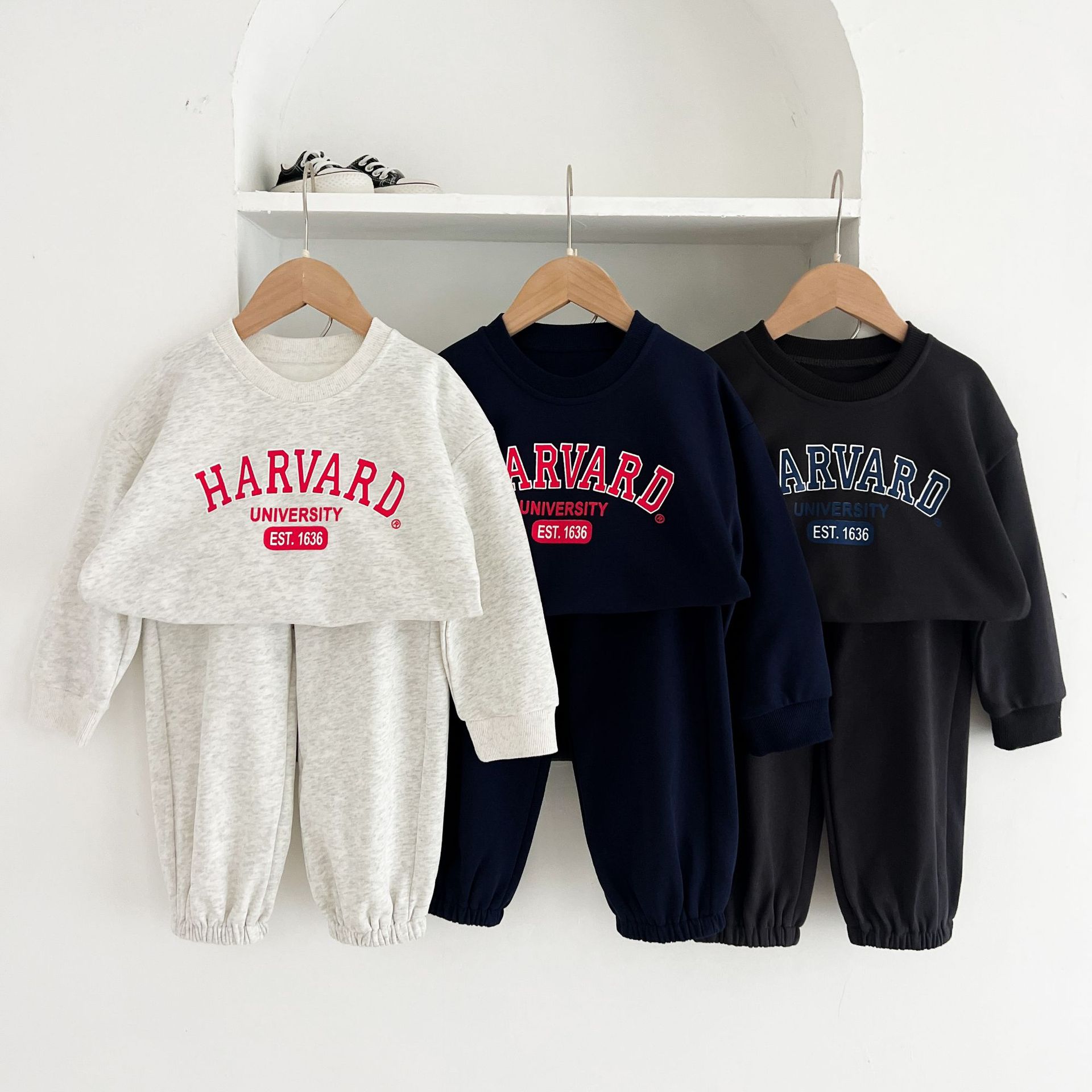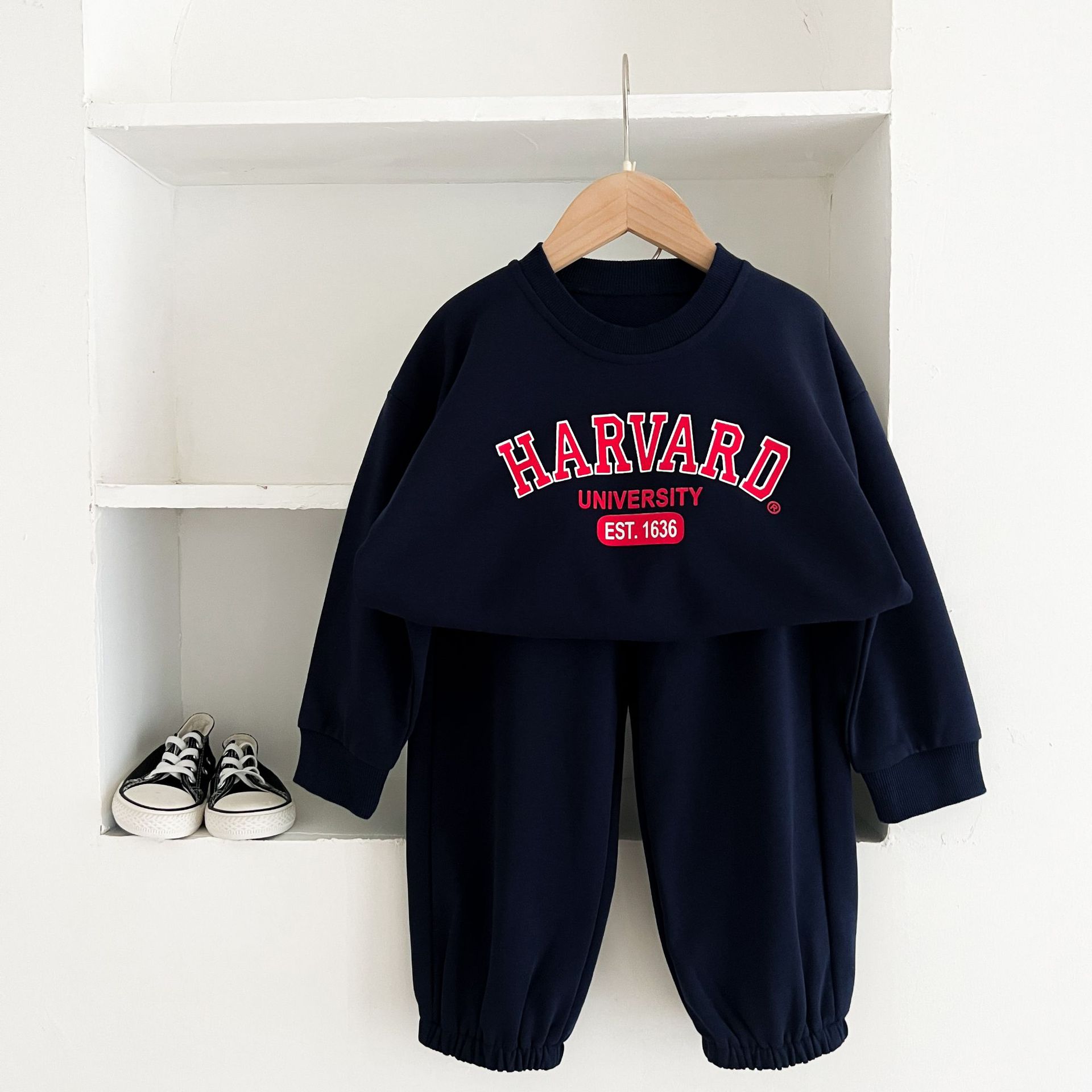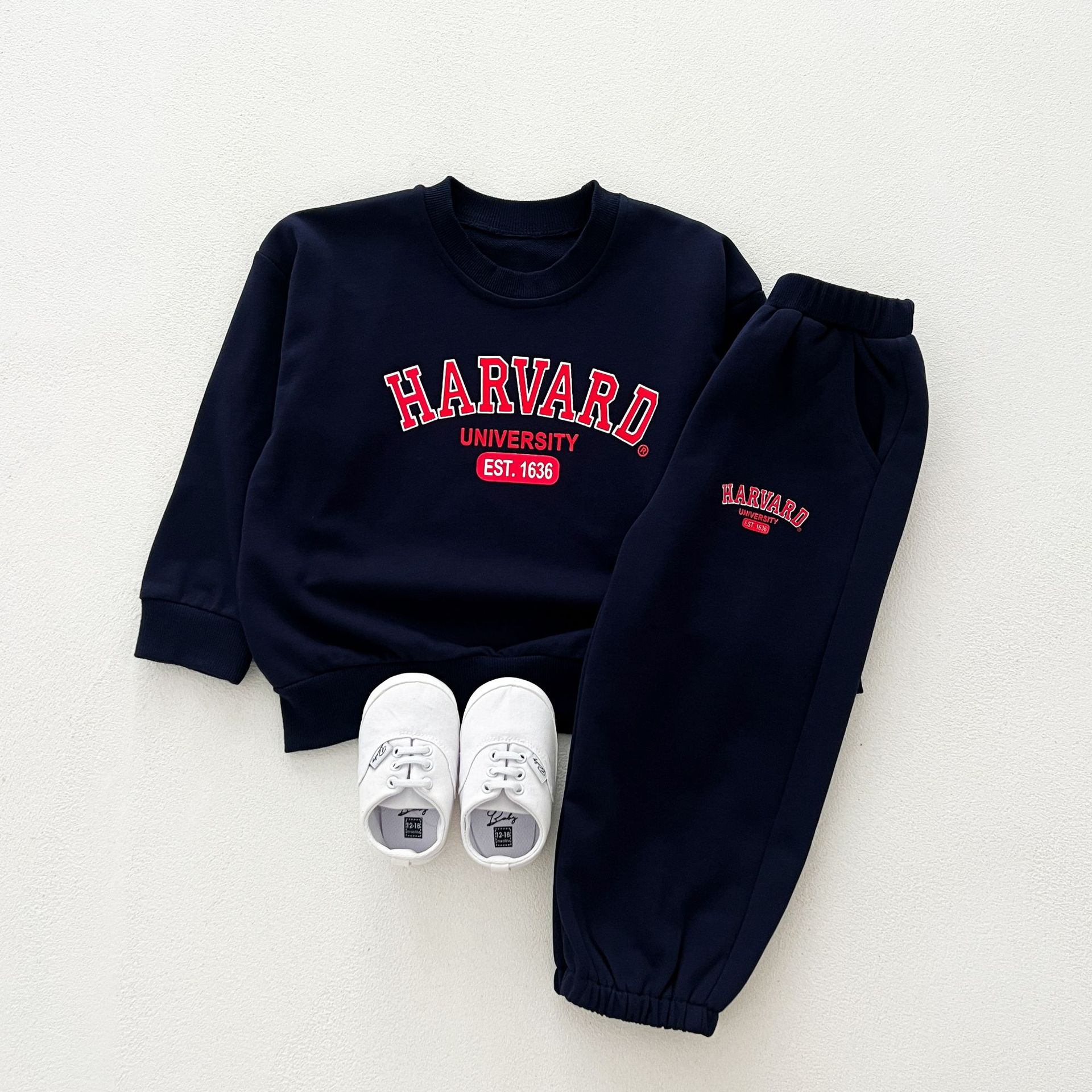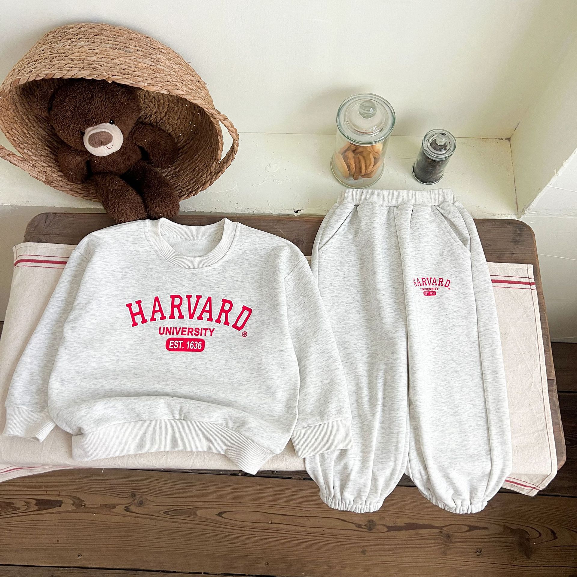 어린이 세트 봄 가을 신상품 남아용 레터 프린트 스포츠 세트 여아용 스웨트셔츠와 바지 겨울용 플리스 버전스토어 가기
