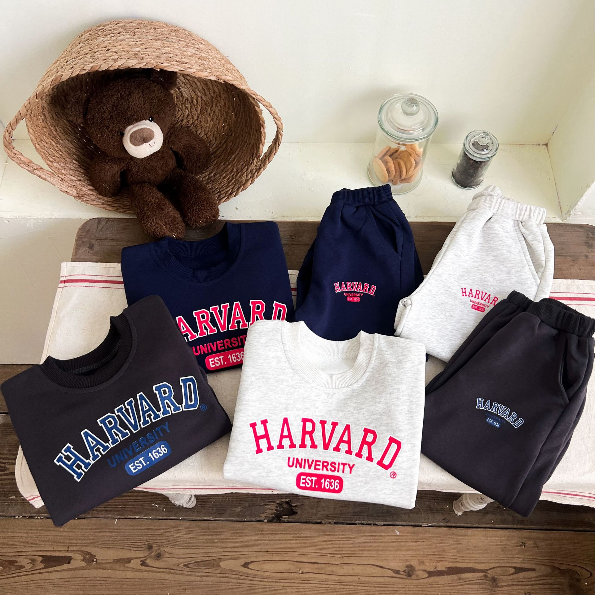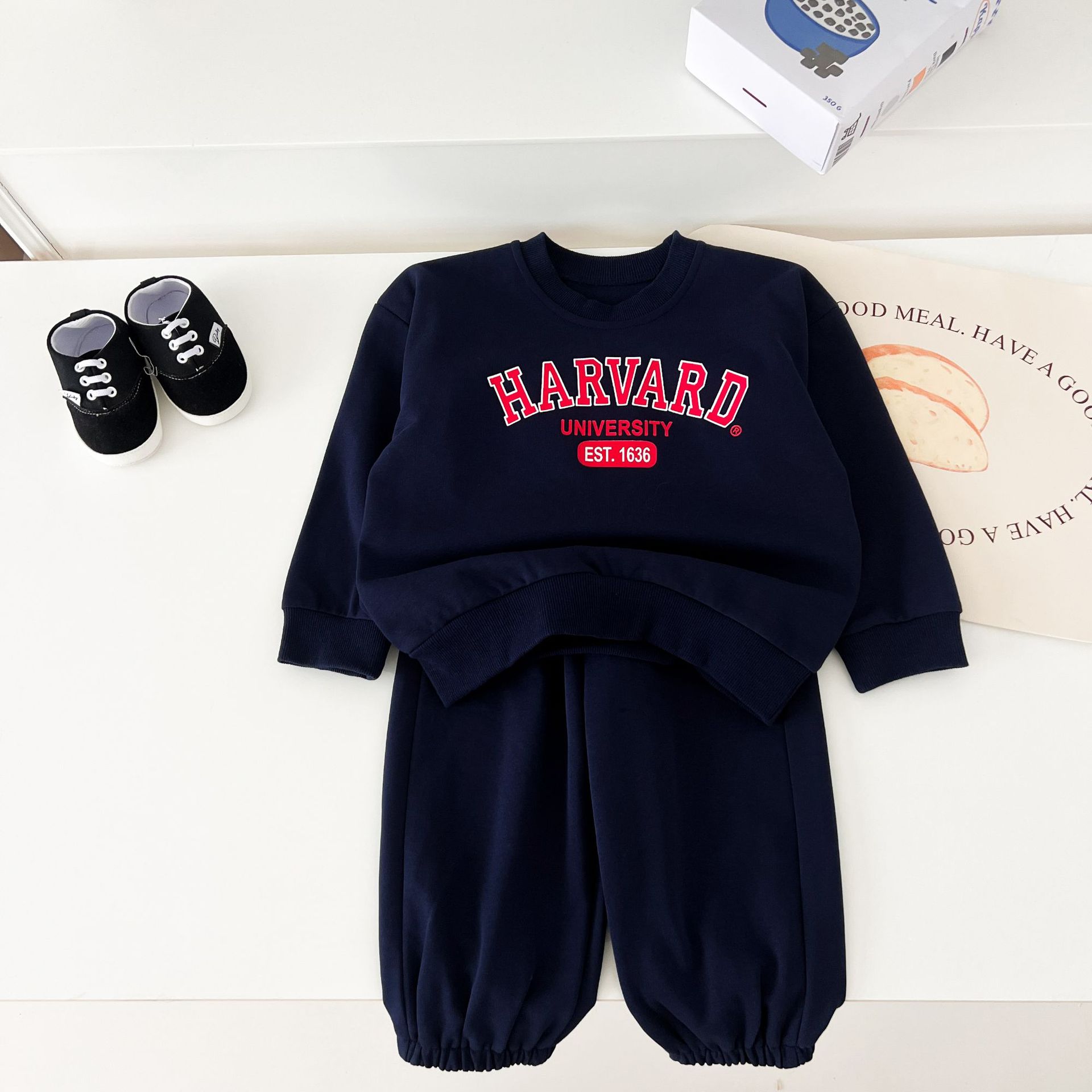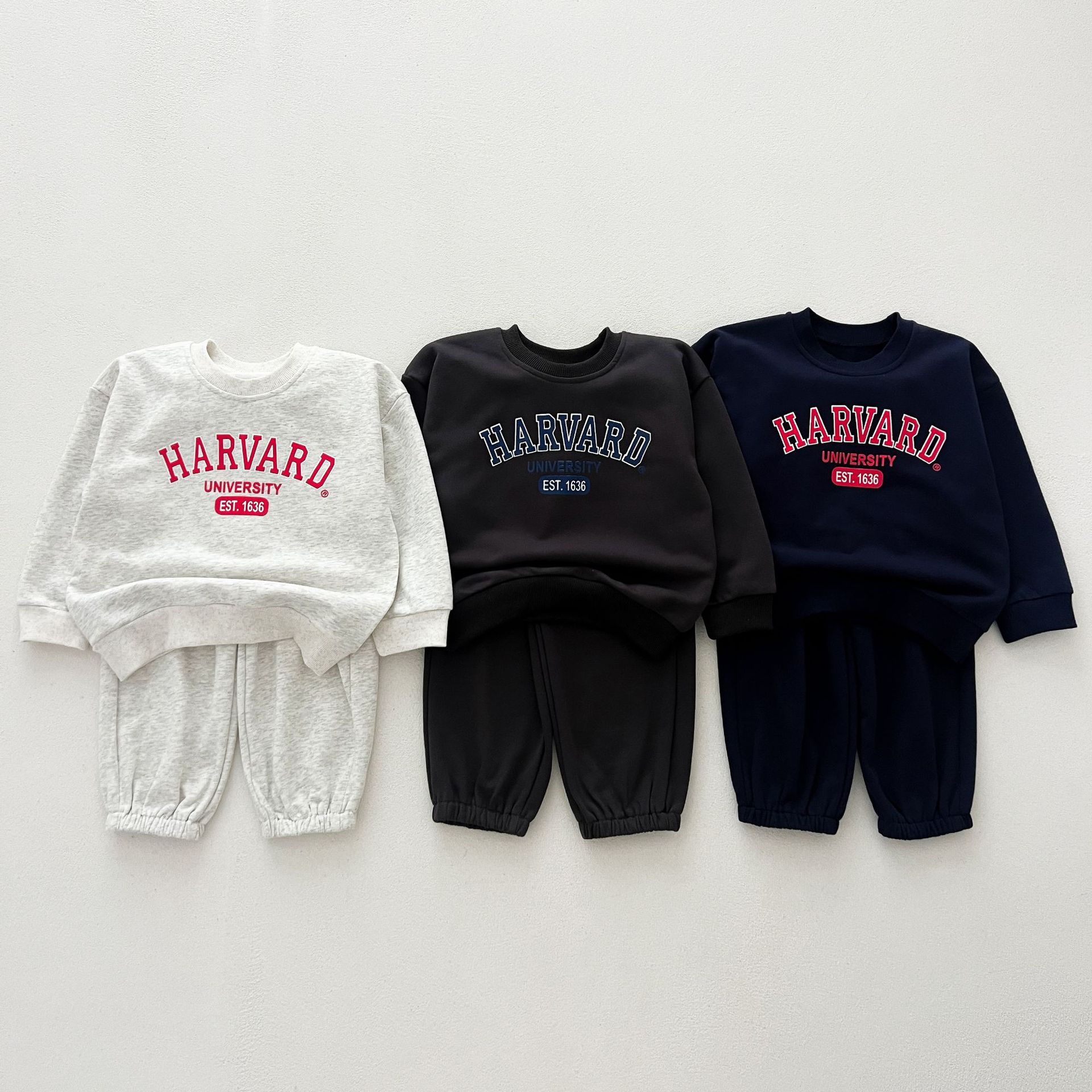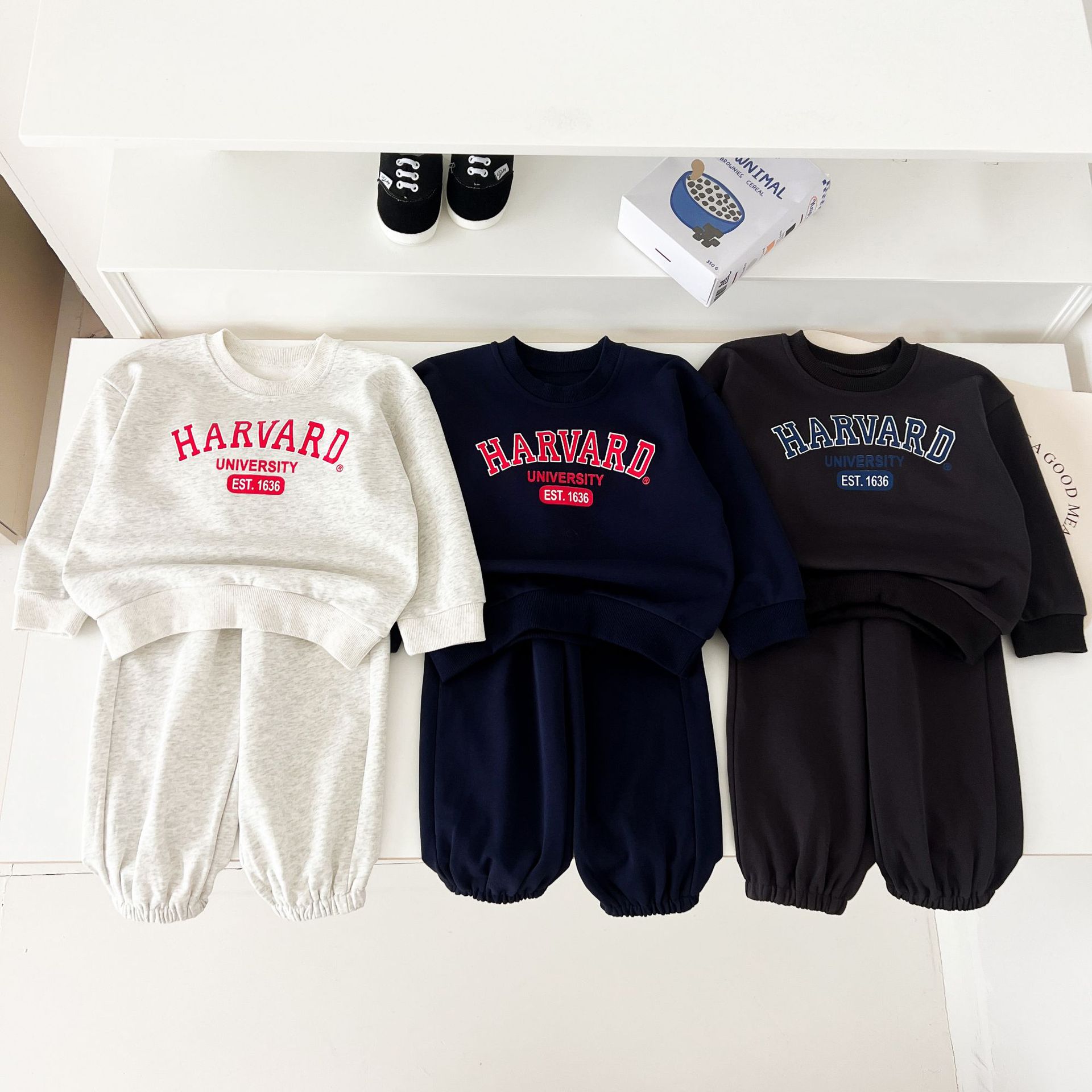 어린이 세트 봄 가을 신상품 남아용 레터 프린트 스포츠 세트 여아용 스웨트셔츠와 바지 겨울용 플리스 버전스토어 가기