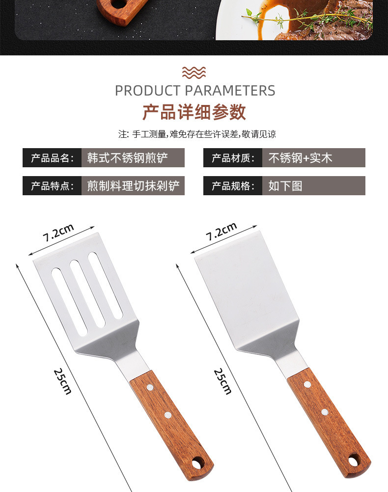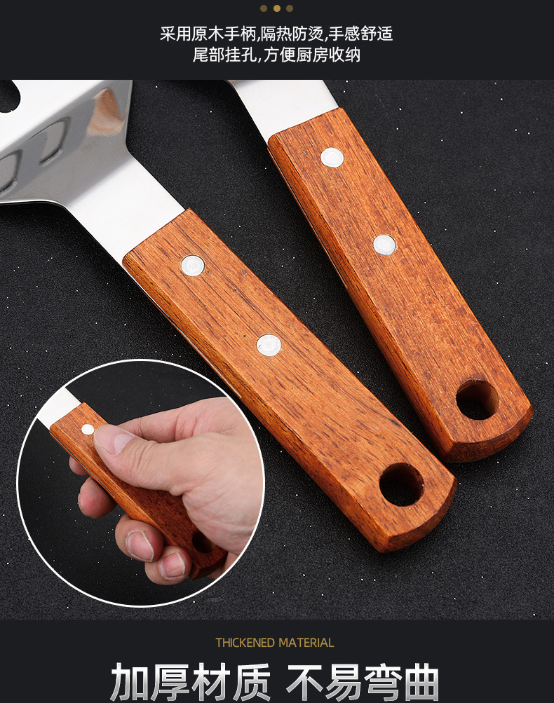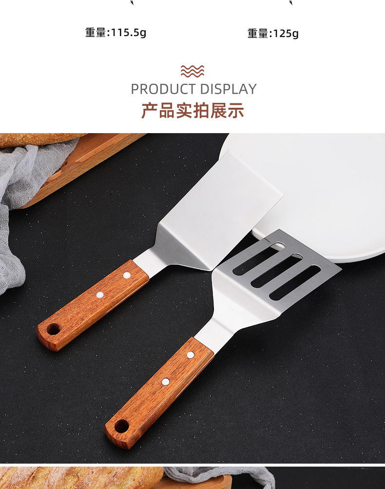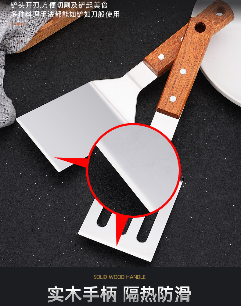 Teppanyaki 나무 손잡이 누설 삽 스테인리스 스틸 튀김 삽 가정용 주방 팬케이크 과일 도구 튀김 스테이크 삽