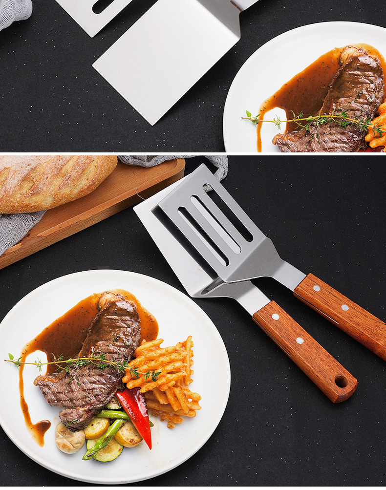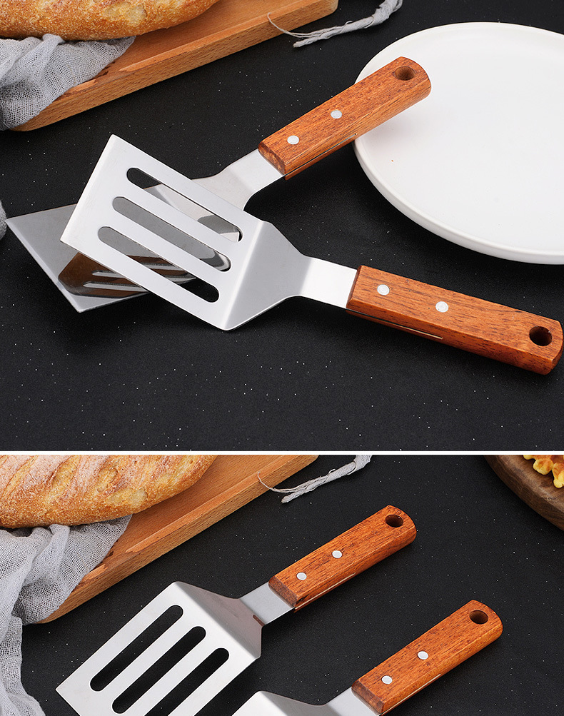 Teppanyaki 나무 손잡이 누설 삽 스테인리스 스틸 튀김 삽 가정용 주방 팬케이크 과일 도구 튀김 스테이크 삽스토어 가기