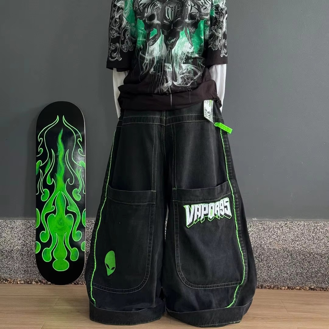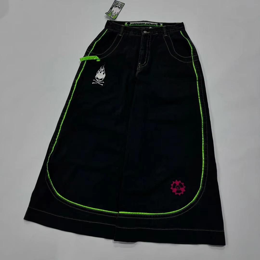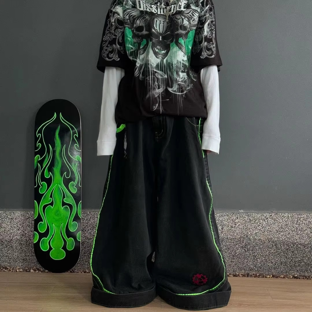 유럽과 미국의 국경 간 JNCO 거리 힙합 후치 세척 청바지 남성 자수 패션 느슨한 데님 바지스토어 가기