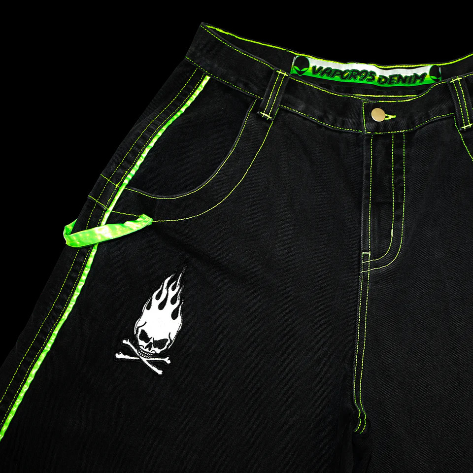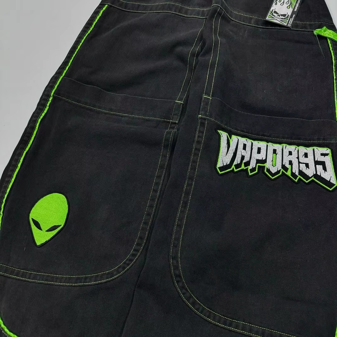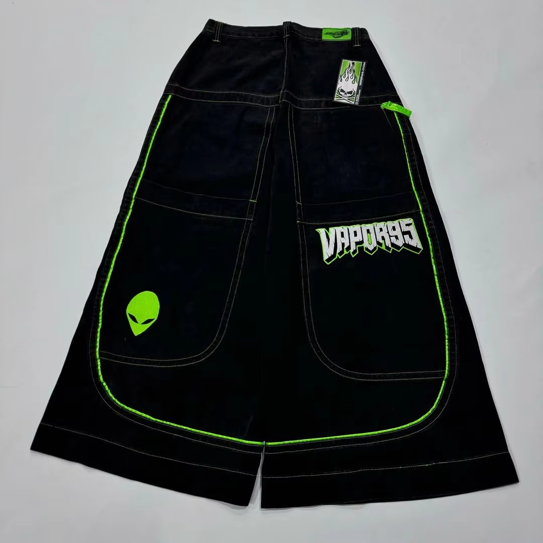 유럽과 미국의 국경 간 JNCO 거리 힙합 후치 세척 청바지 남성 자수 패션 느슨한 데님 바지스토어 가기