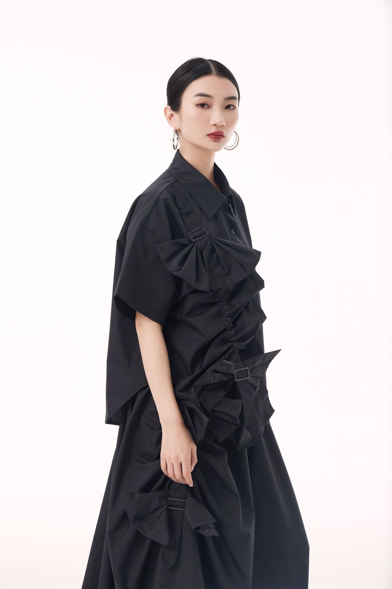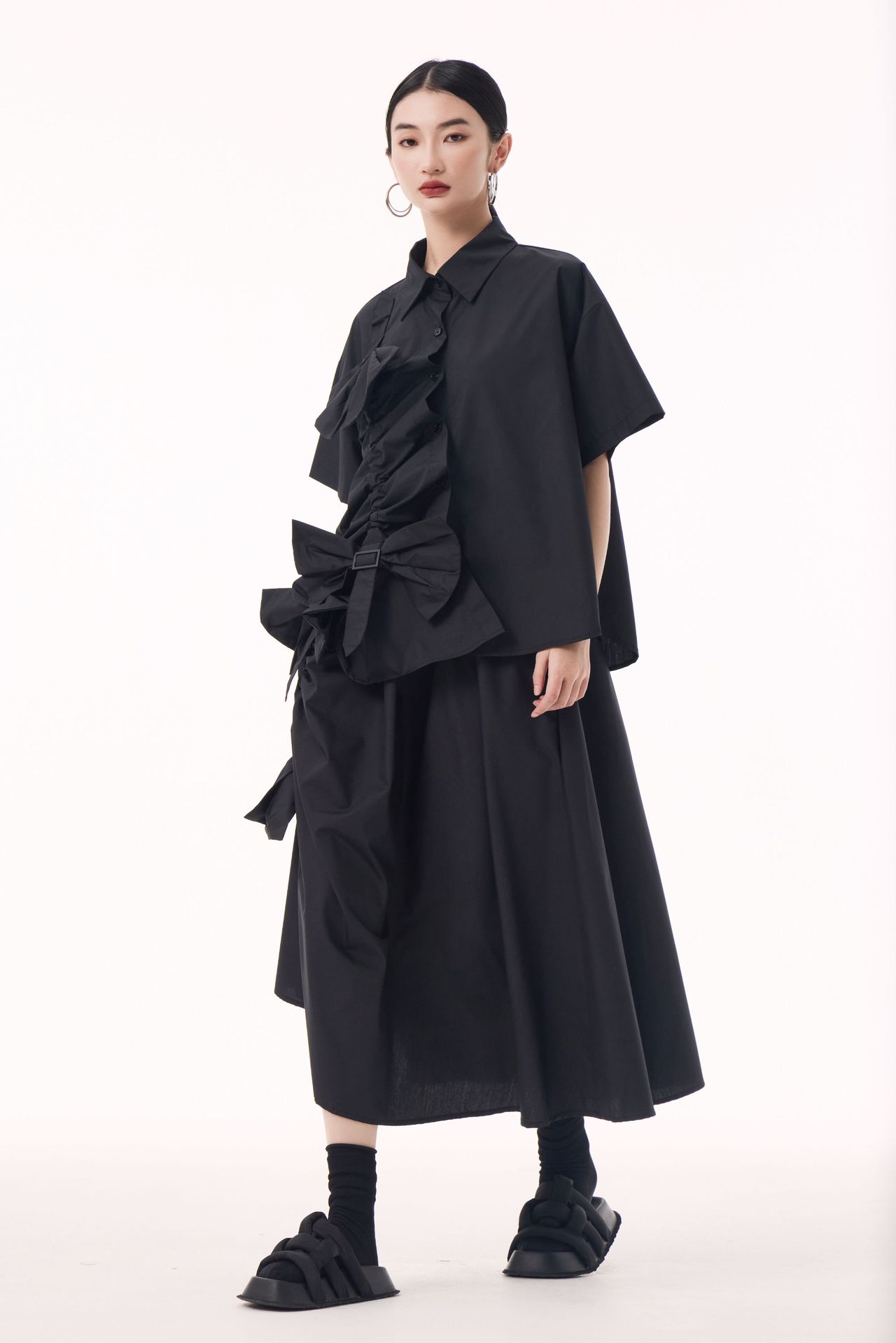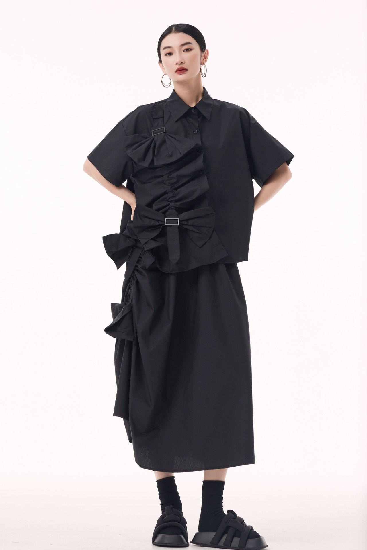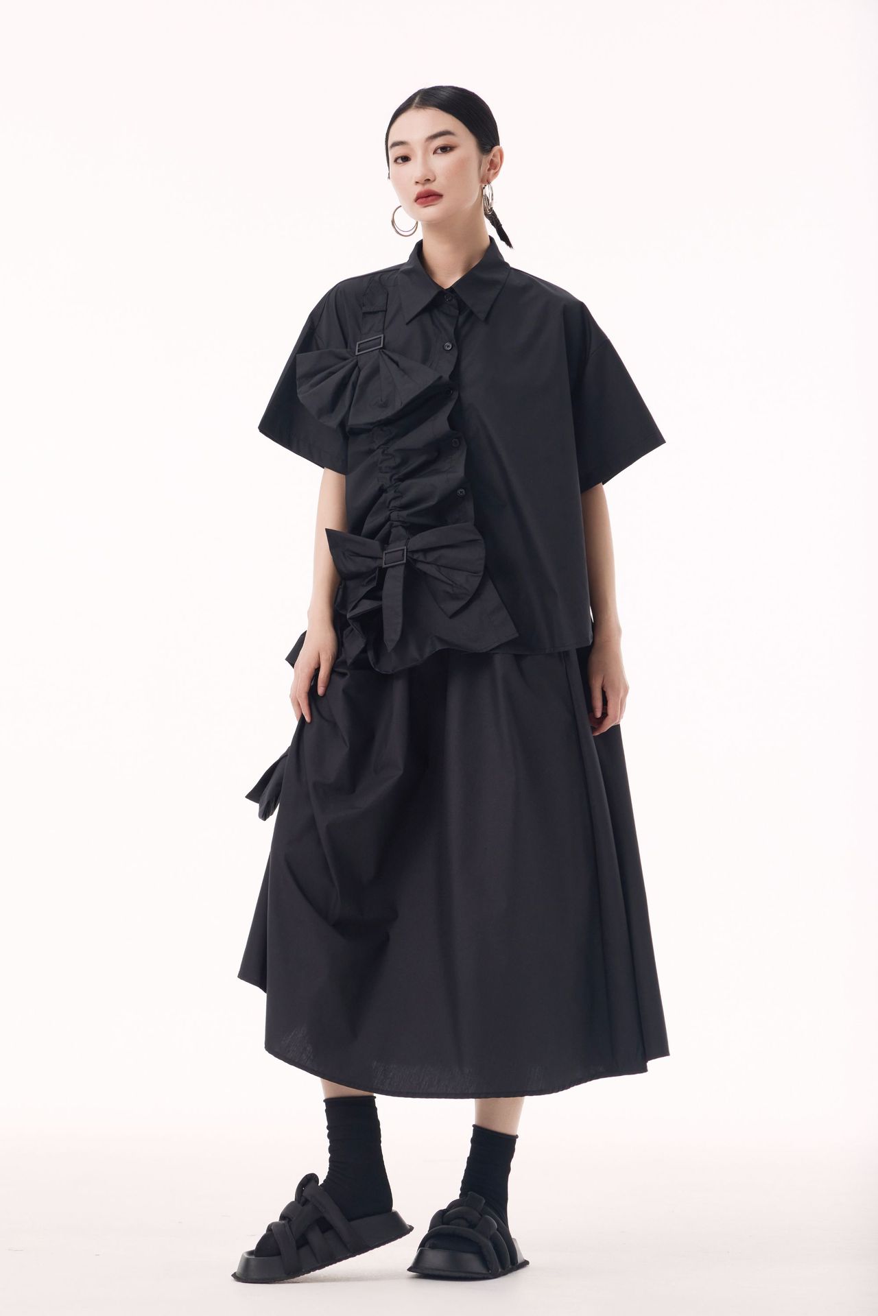 새로운 중국 스타일 큰 활 3 차원 장식 바느질 패션 투피스 세트 여름 여성을위한 새로운 틈새 맞춤형 원피스 세트