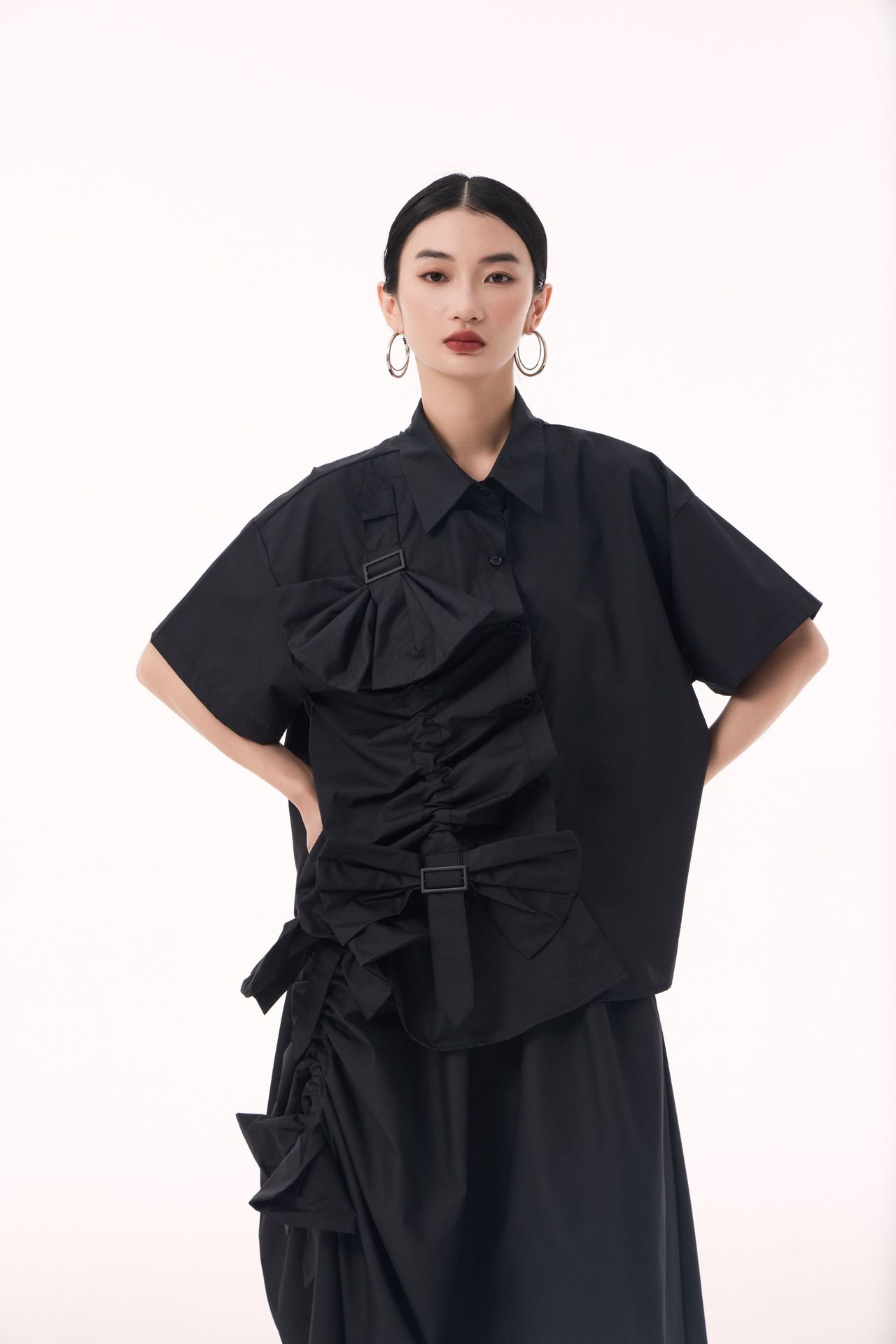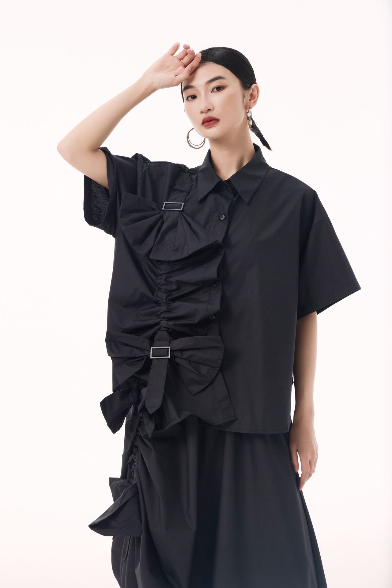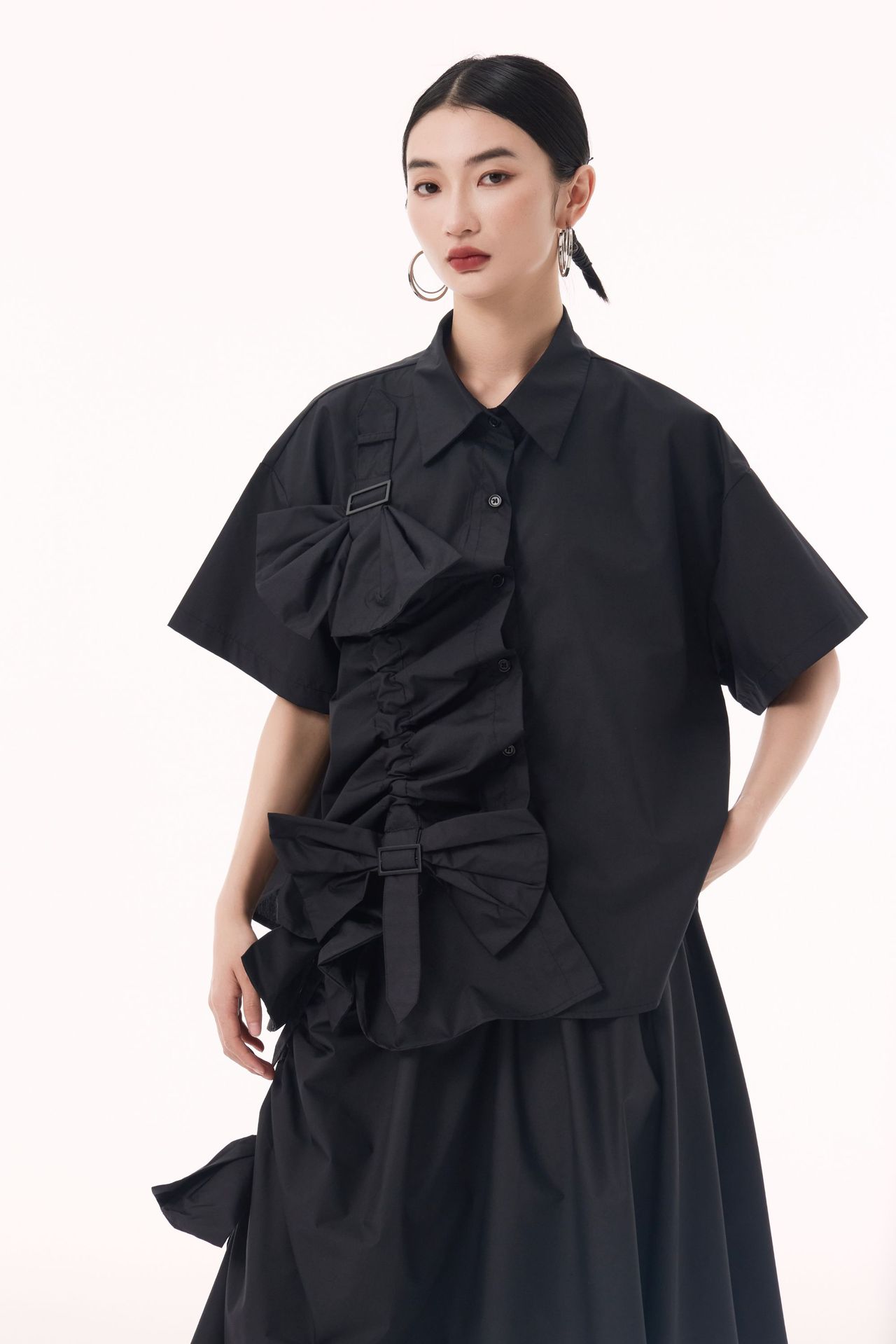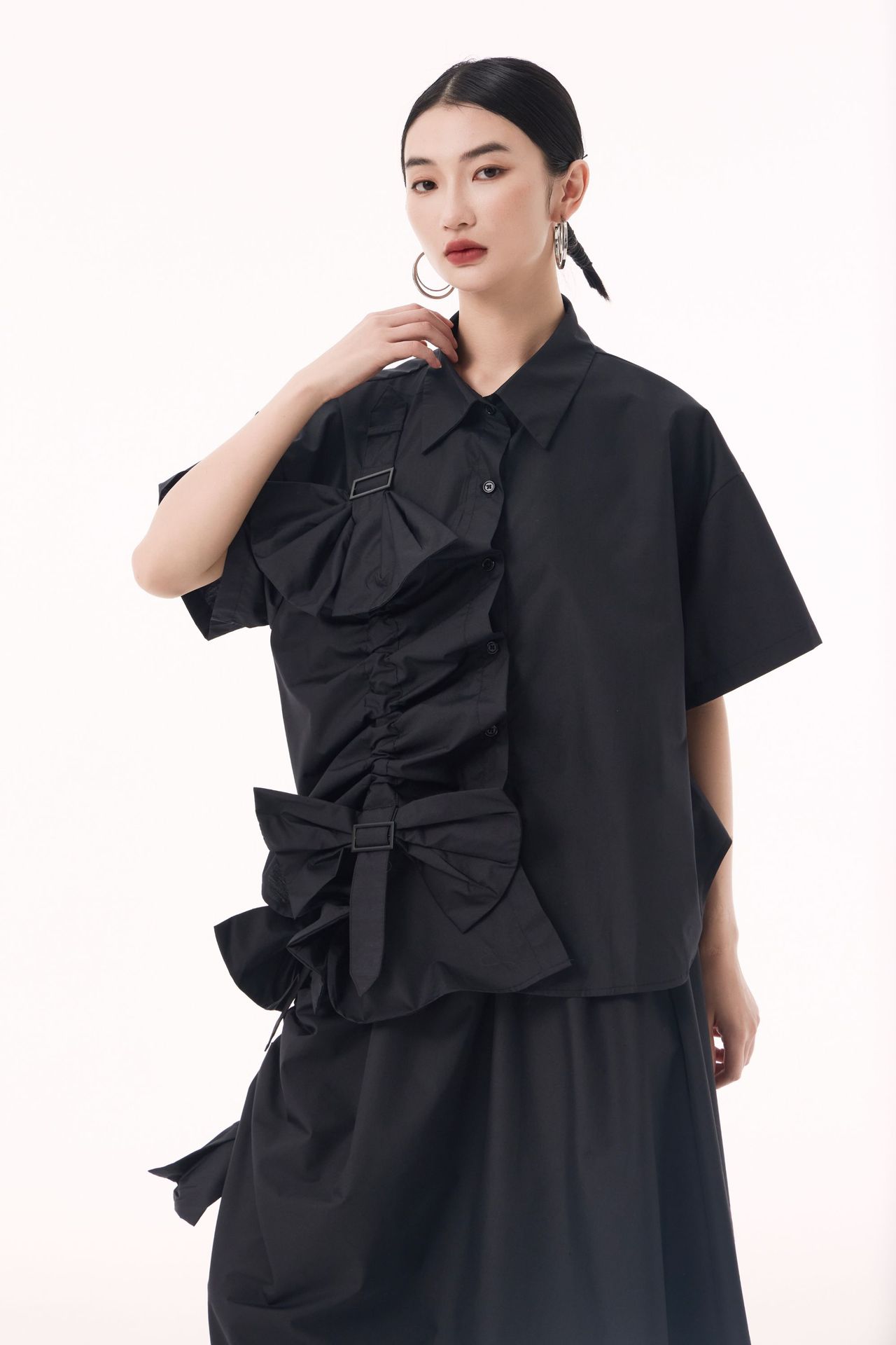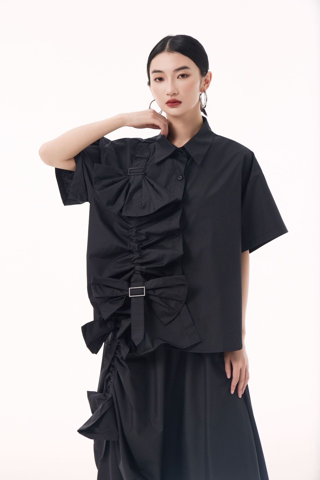 새로운 중국 스타일 큰 활 3 차원 장식 바느질 패션 투피스 세트 여름 여성을위한 새로운 틈새 맞춤형 원피스 세트