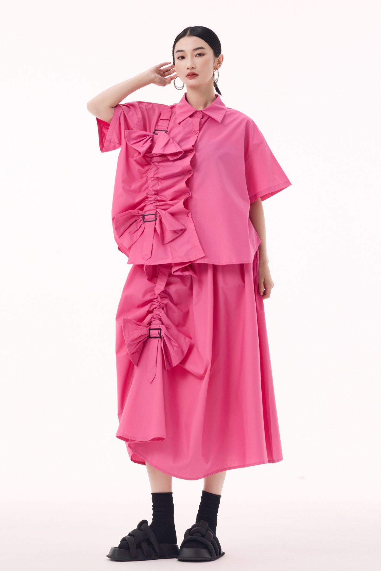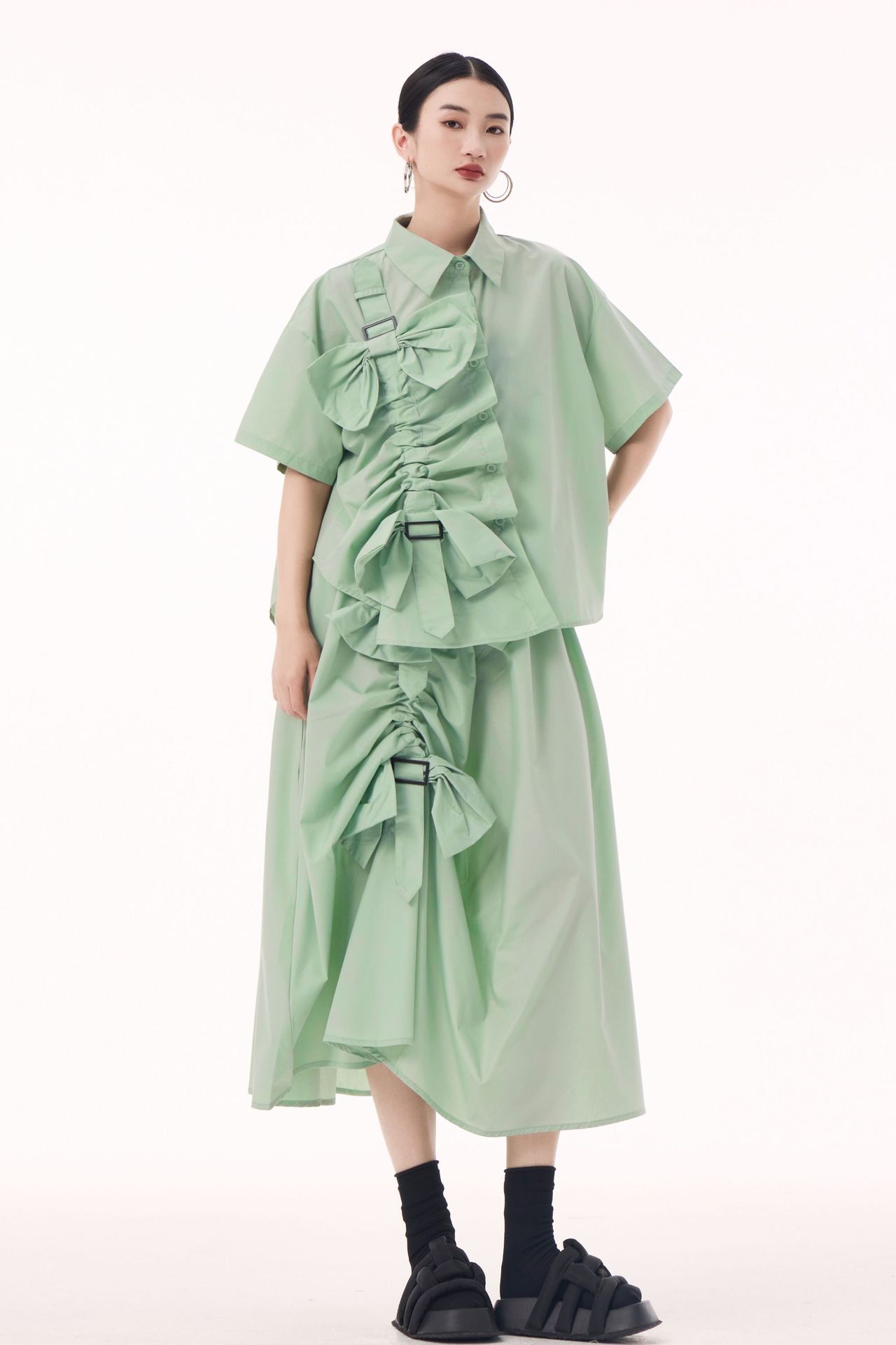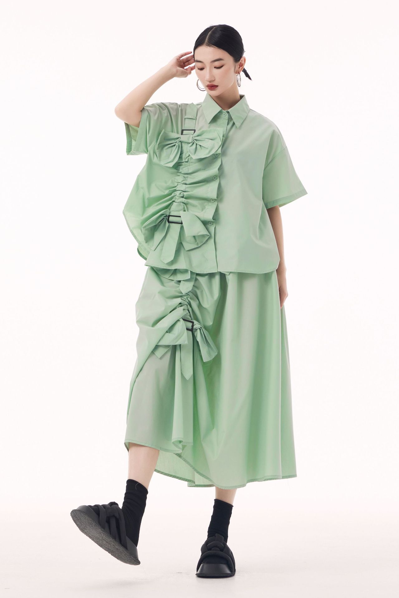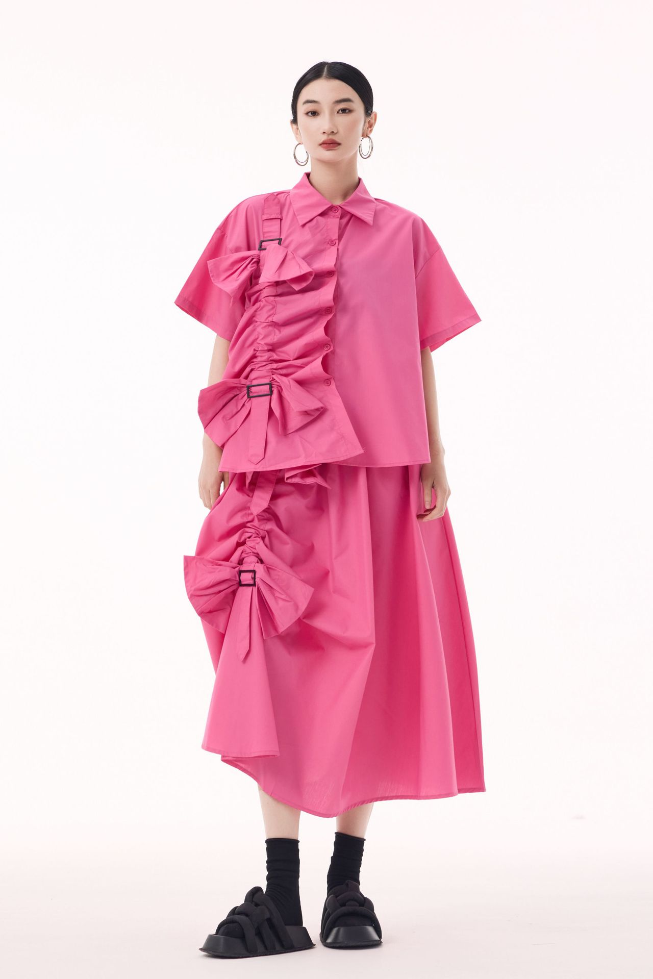새로운 중국 스타일 큰 활 3 차원 장식 바느질 패션 투피스 세트 여름 여성을위한 새로운 틈새 맞춤형 원피스 세트스토어 가기