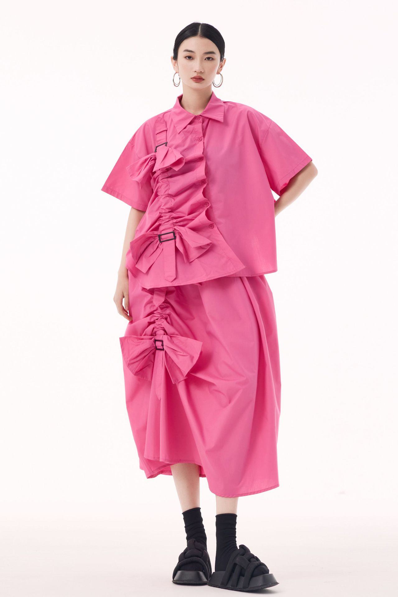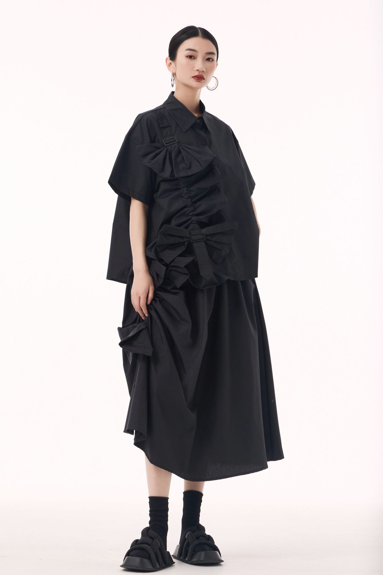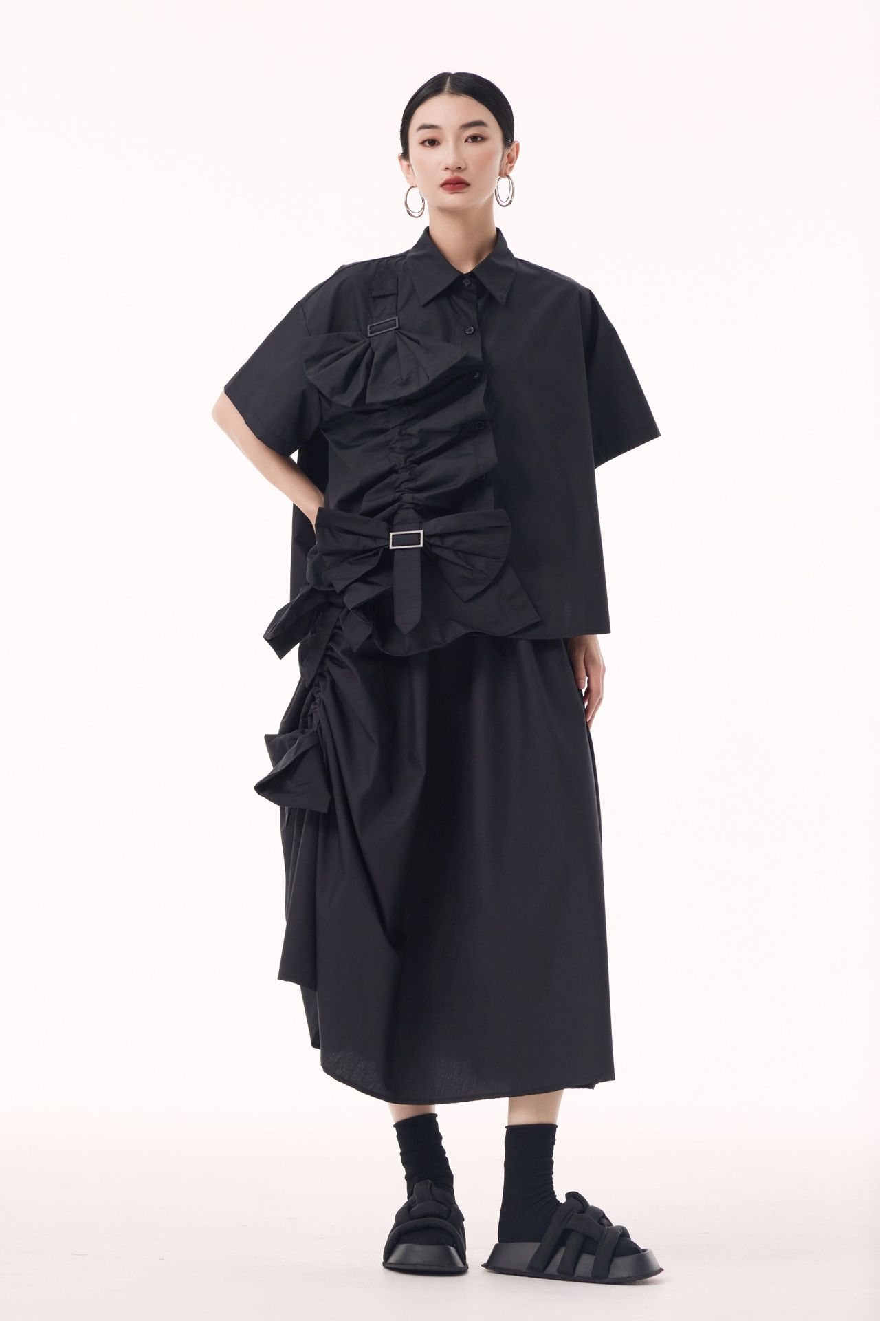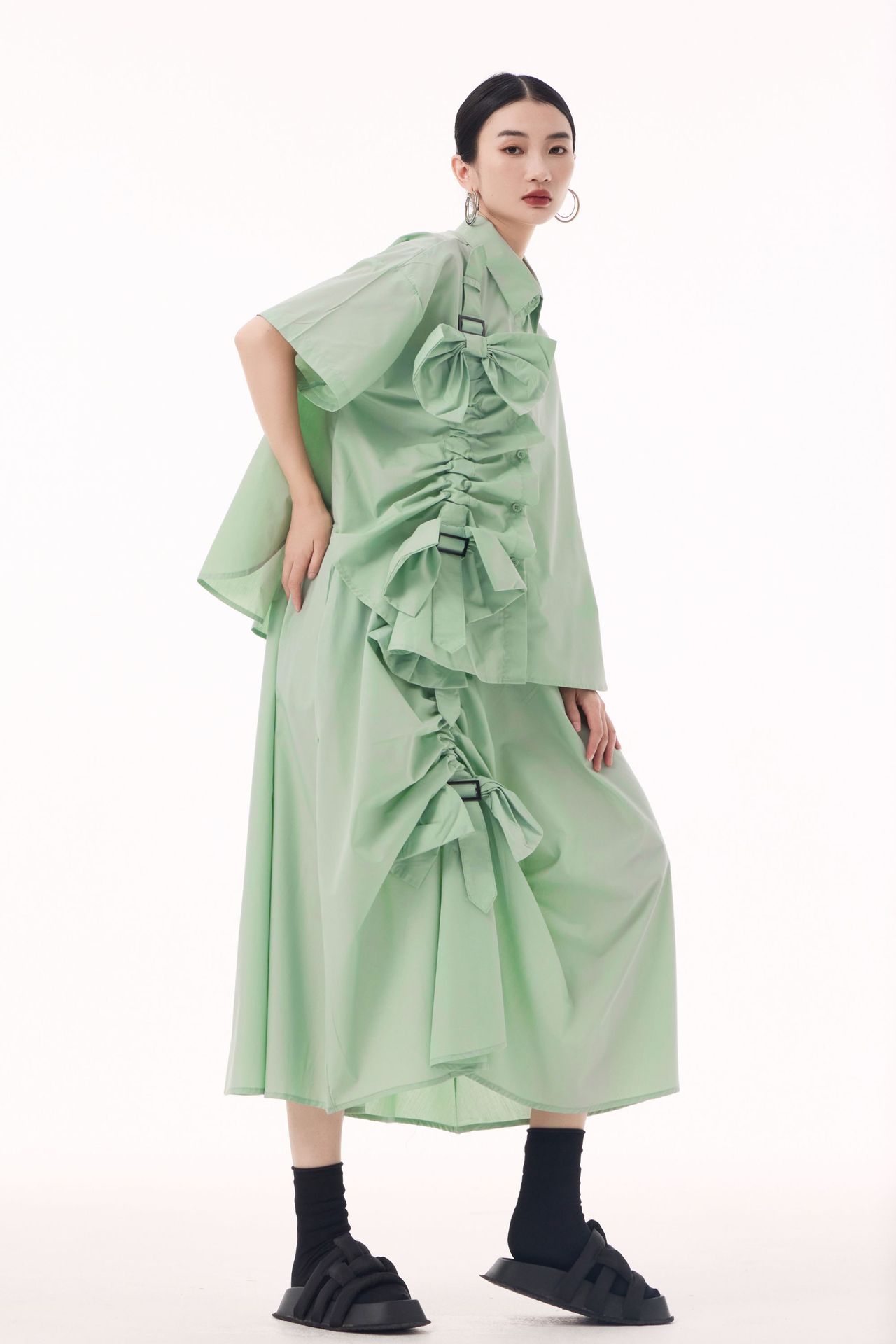 새로운 중국 스타일 큰 활 3 차원 장식 바느질 패션 투피스 세트 여름 여성을위한 새로운 틈새 맞춤형 원피스 세트스토어 가기