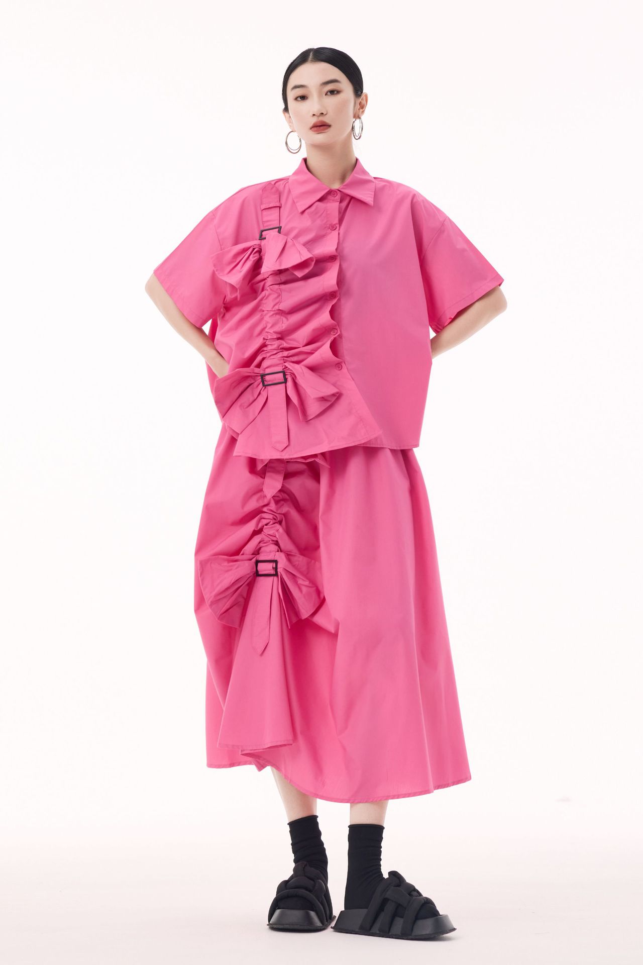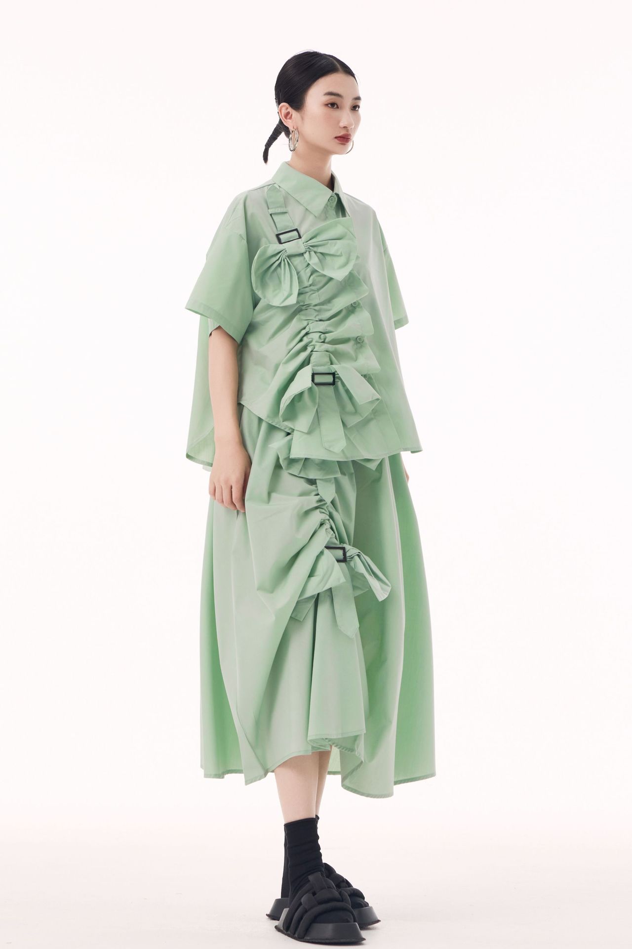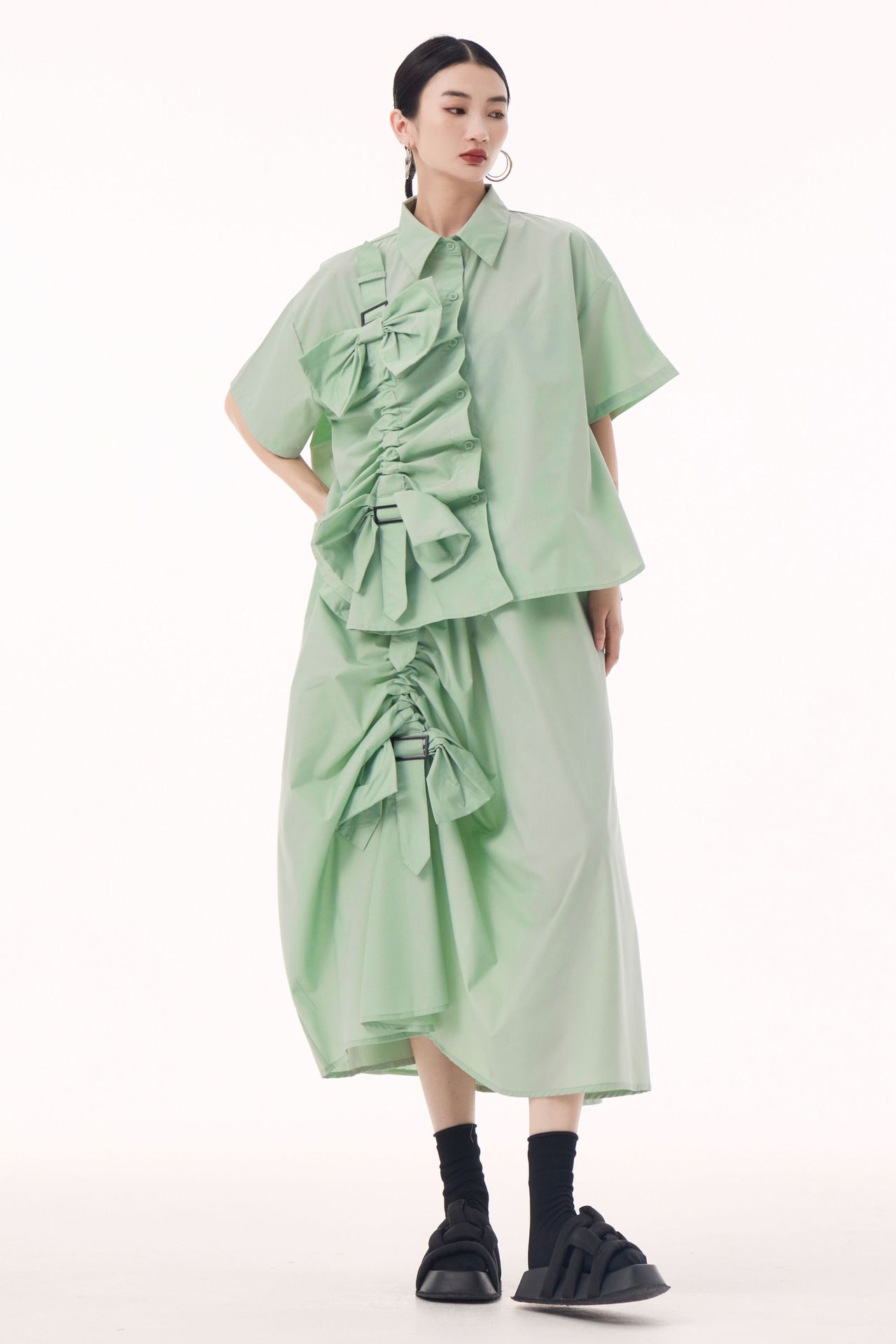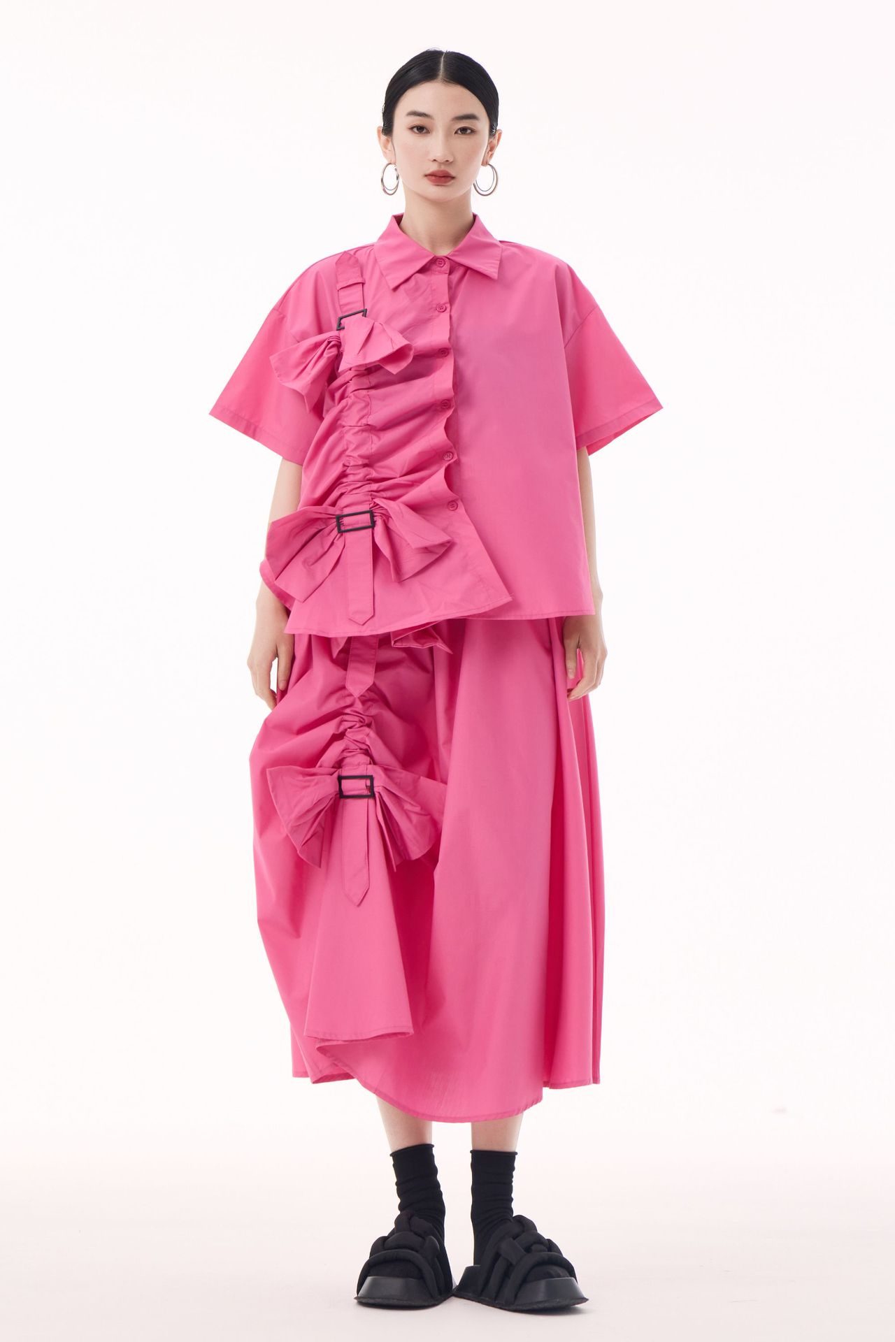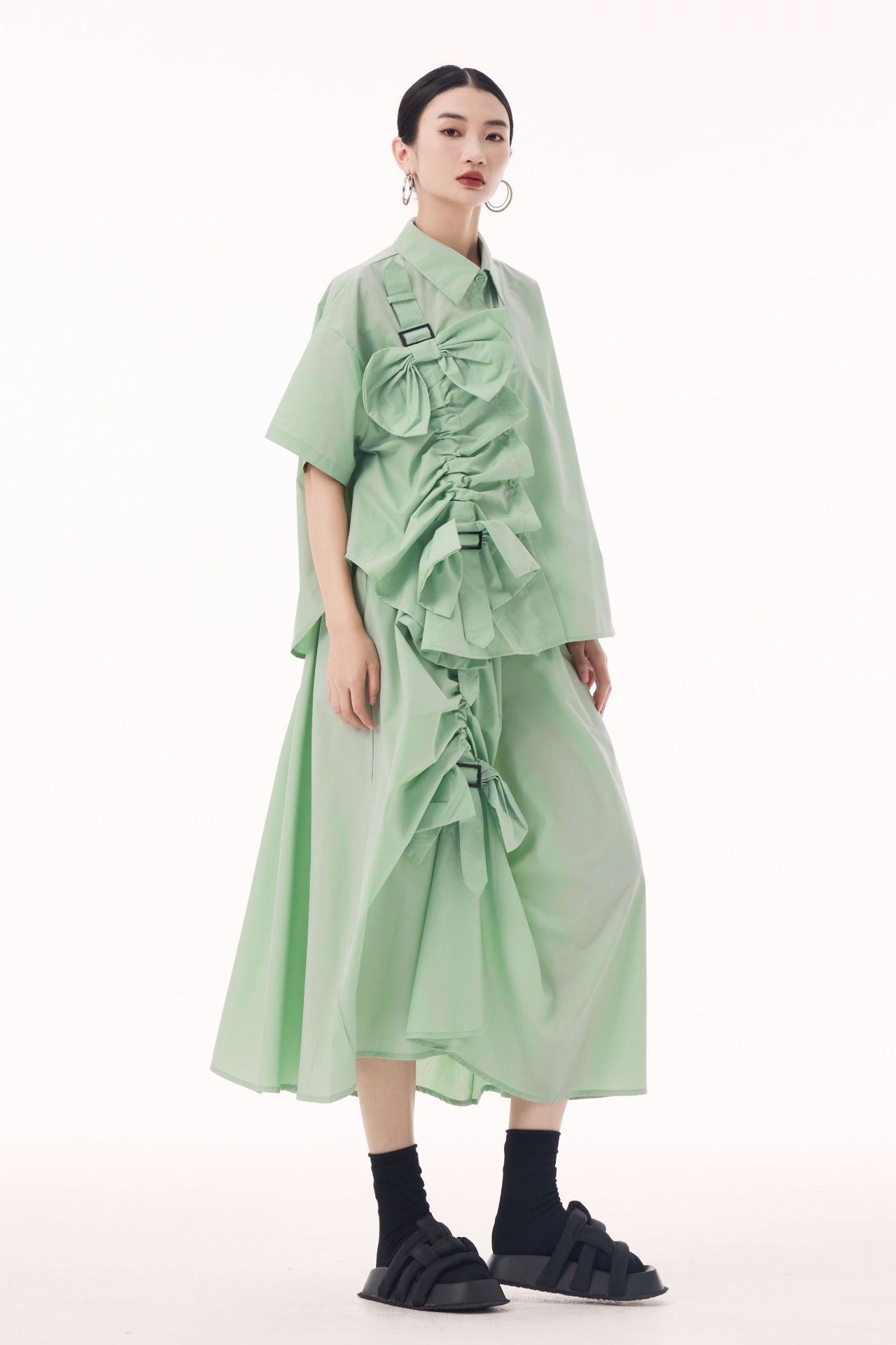 새로운 중국 스타일 큰 활 3 차원 장식 바느질 패션 투피스 세트 여름 여성을위한 새로운 틈새 맞춤형 원피스 세트스토어 가기