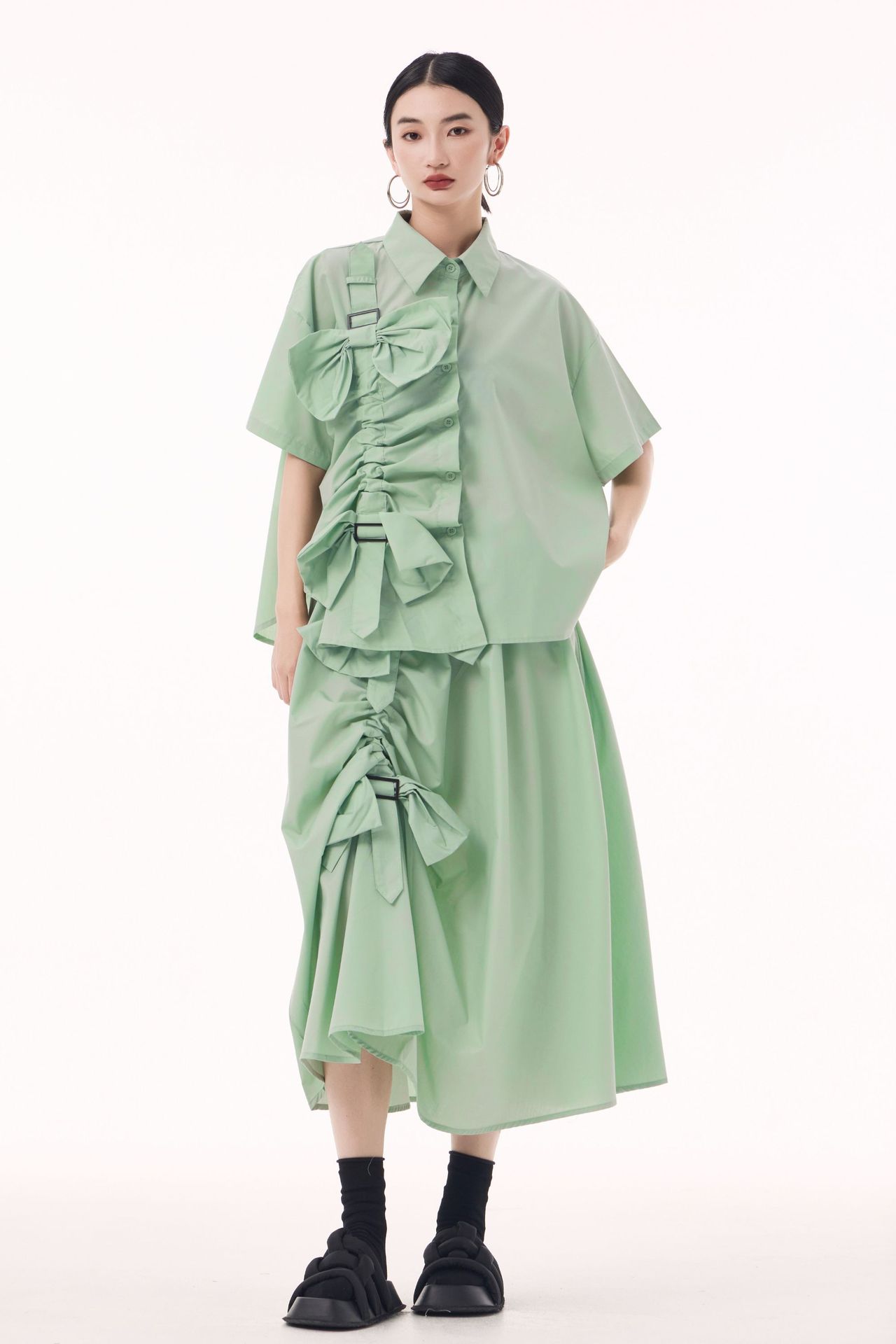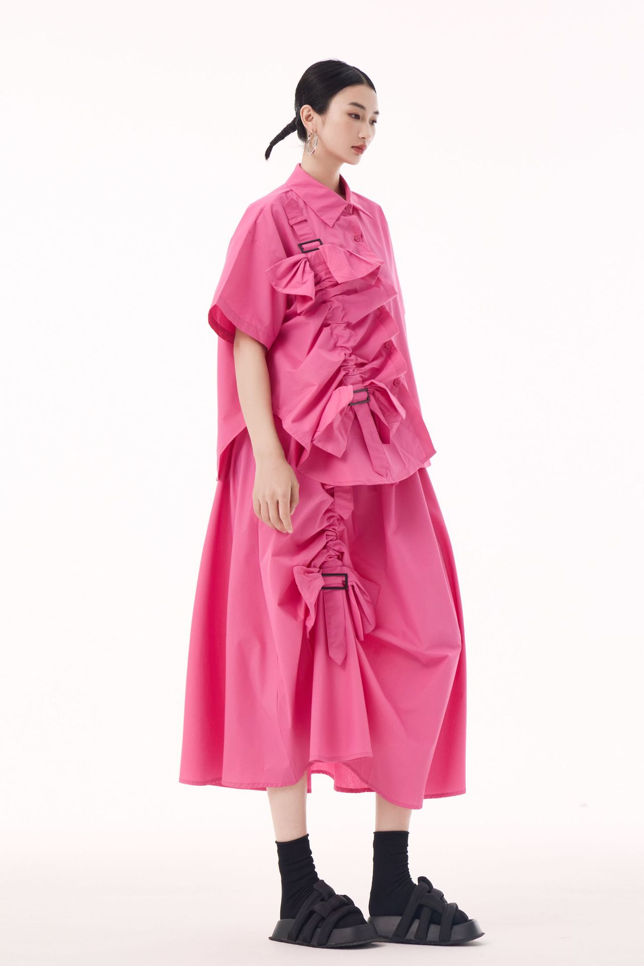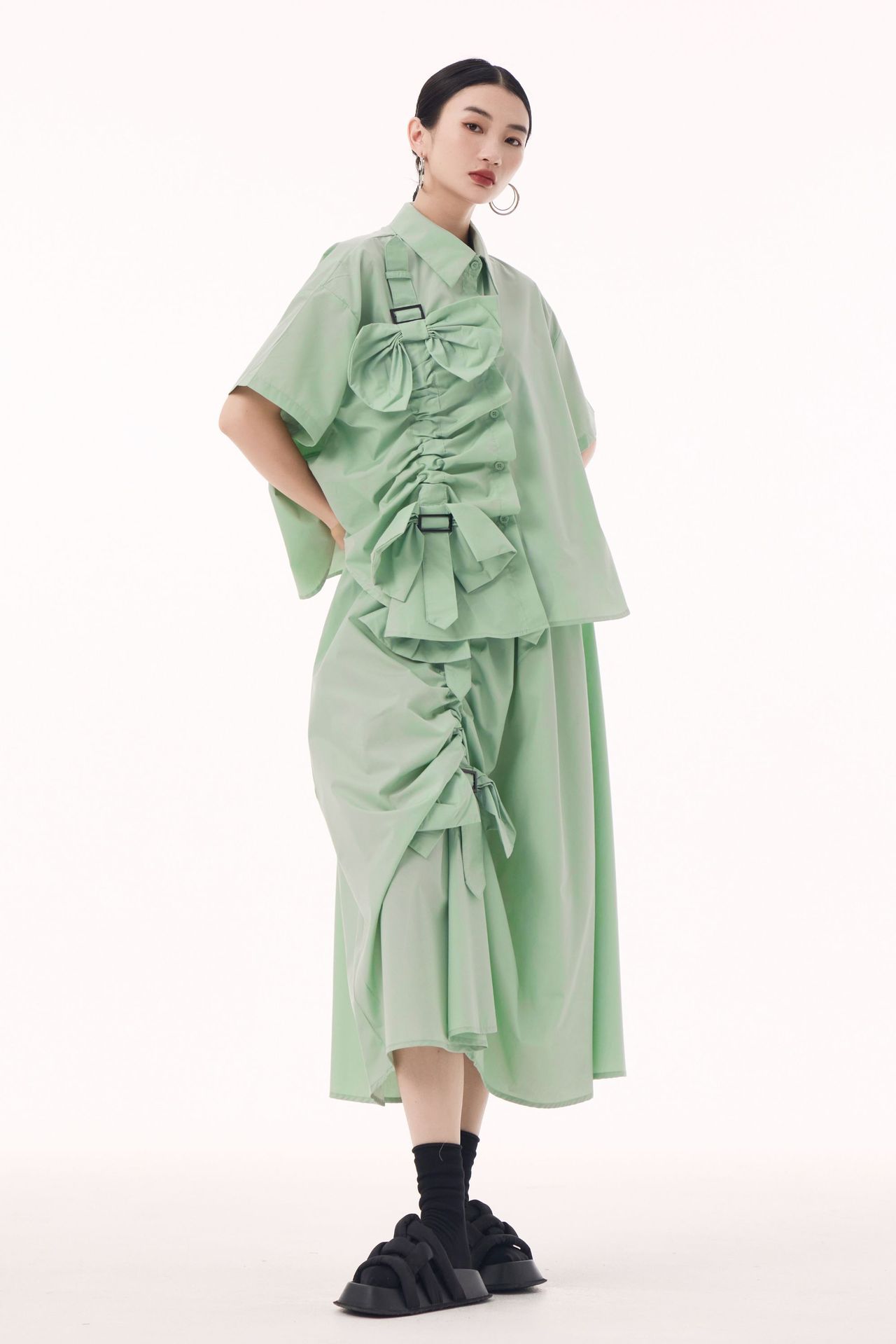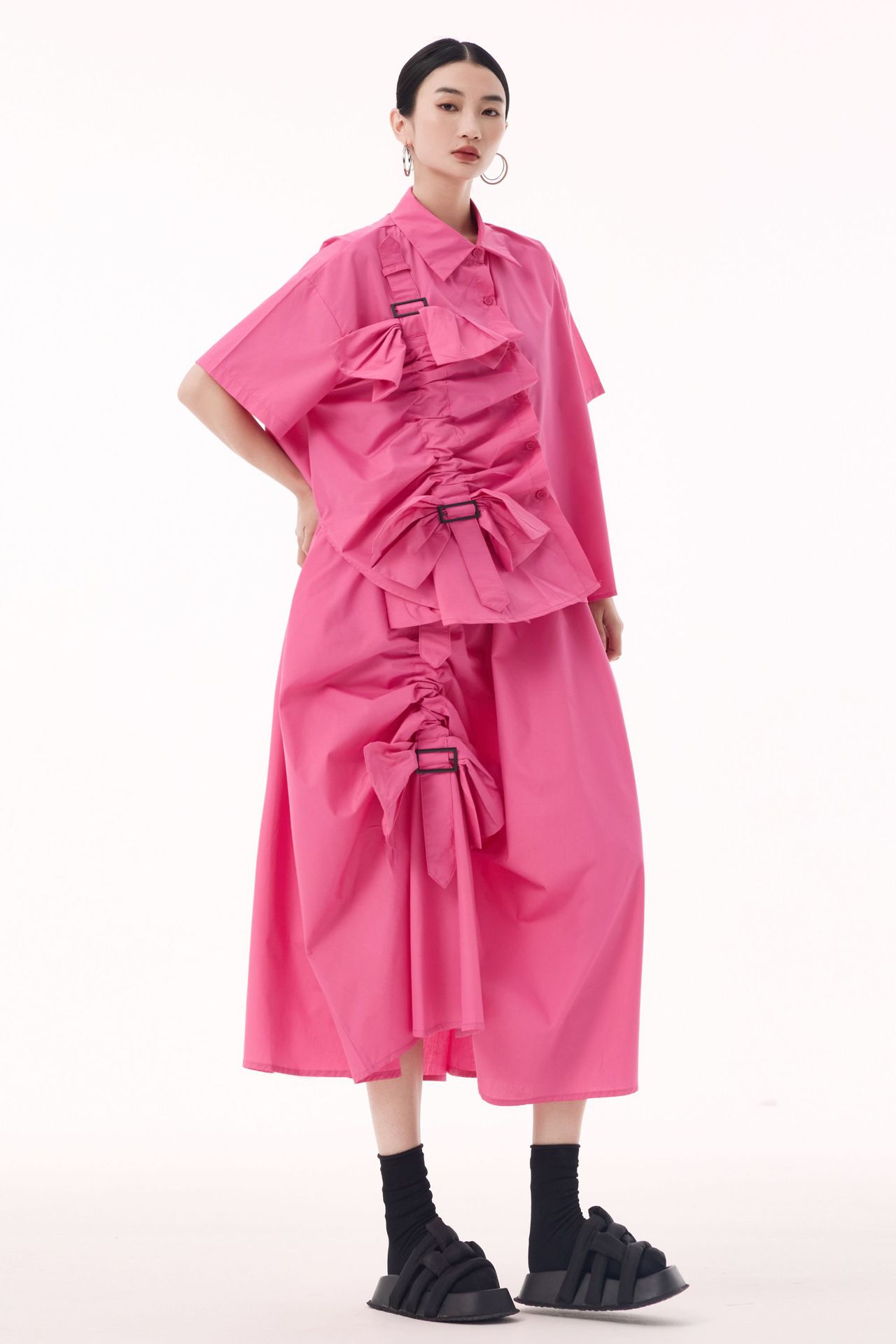 새로운 중국 스타일 큰 활 3 차원 장식 바느질 패션 투피스 세트 여름 여성을위한 새로운 틈새 맞춤형 원피스 세트스토어 가기