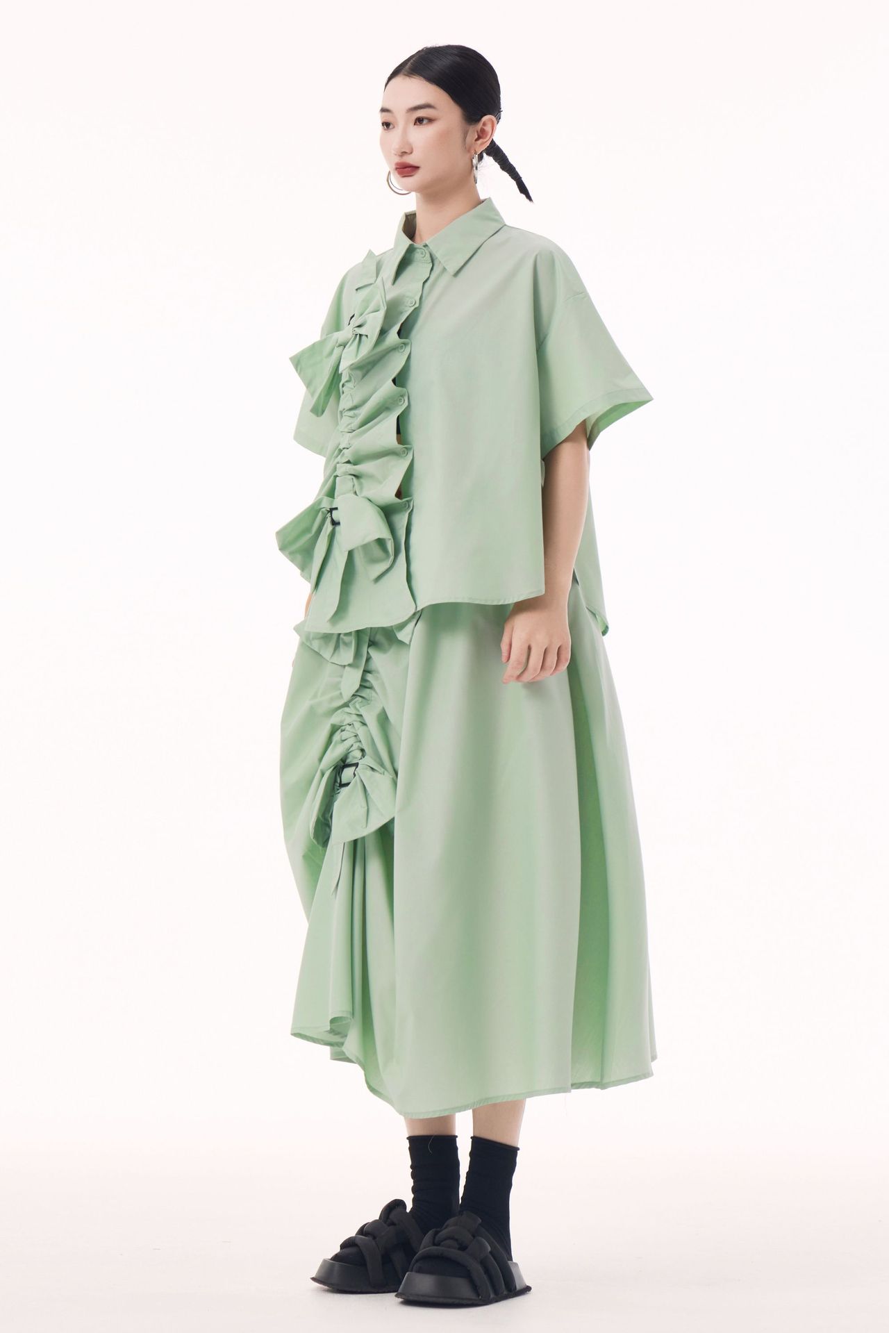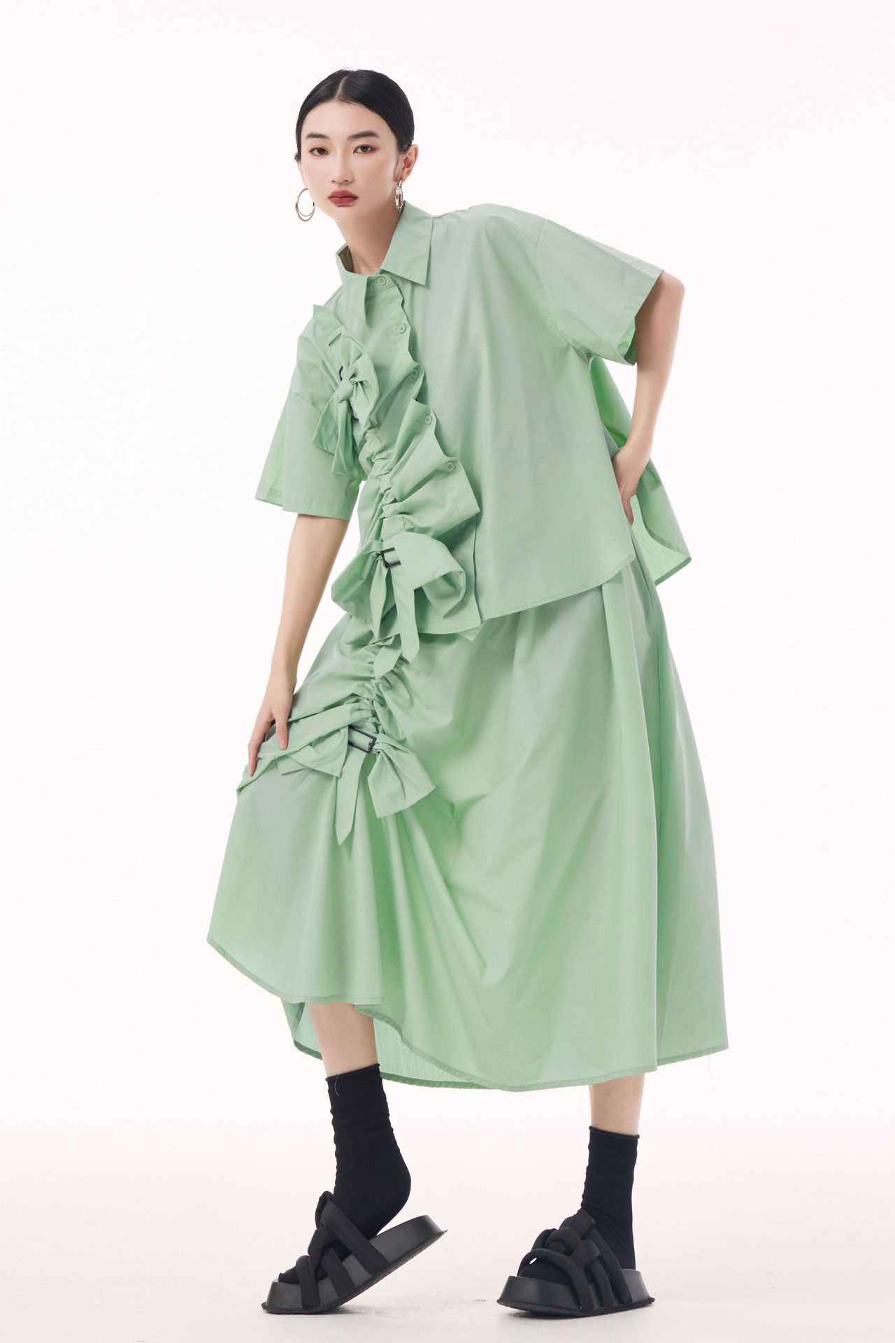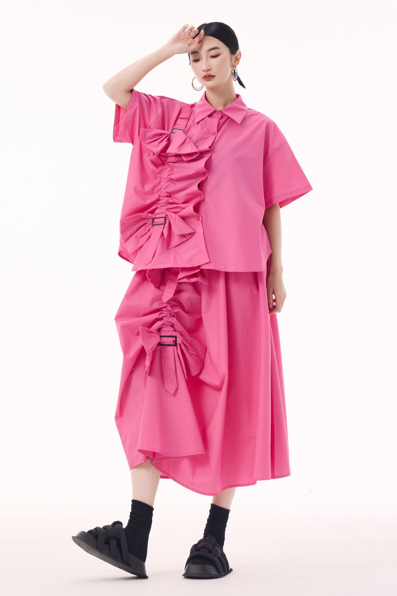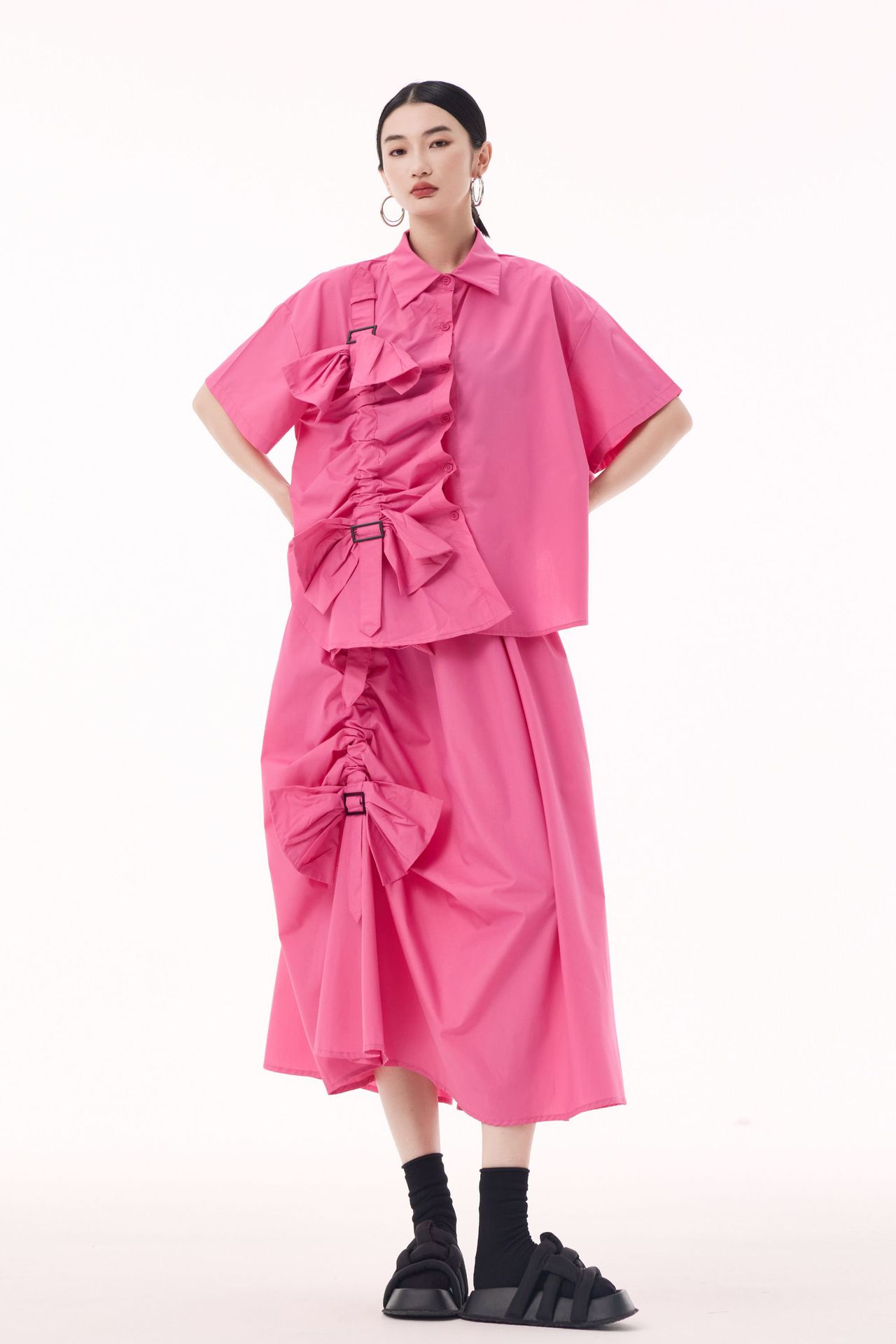 새로운 중국 스타일 큰 활 3 차원 장식 바느질 패션 투피스 세트 여름 여성을위한 새로운 틈새 맞춤형 원피스 세트스토어 가기