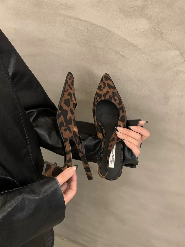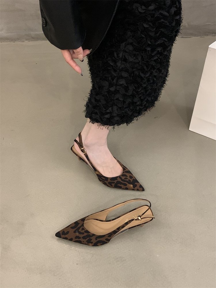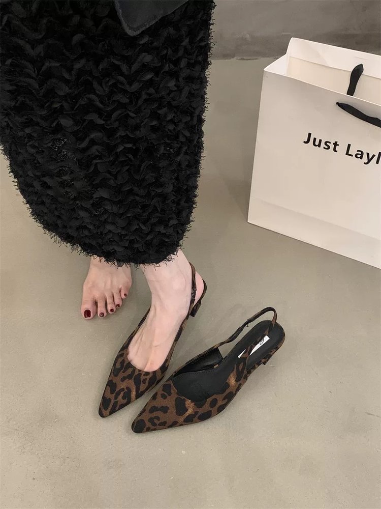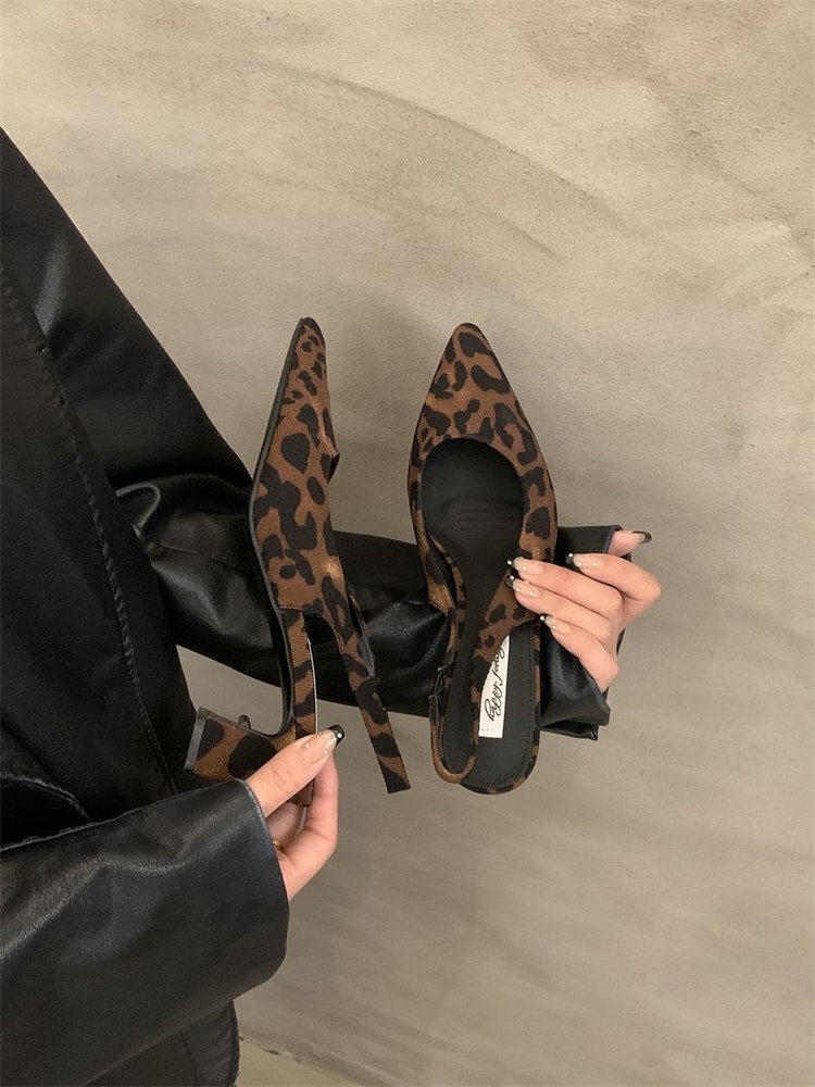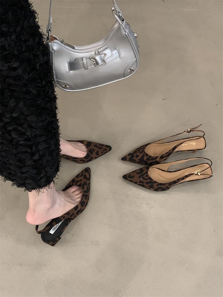 고급 틈새 레오파드 무늬 싱글 레이어 신발 여성 2025 년 봄과 여름 새로운 복고풍 우아한 얇은 뒤꿈치 뾰족한 발가락 샌들스토어 가기