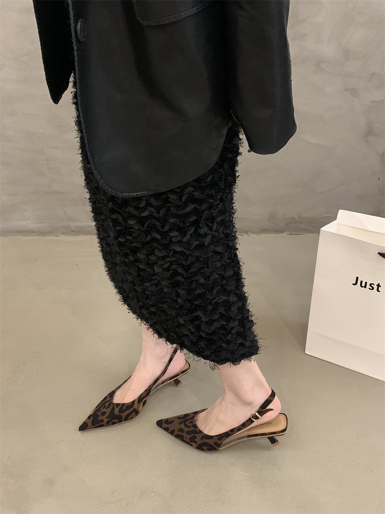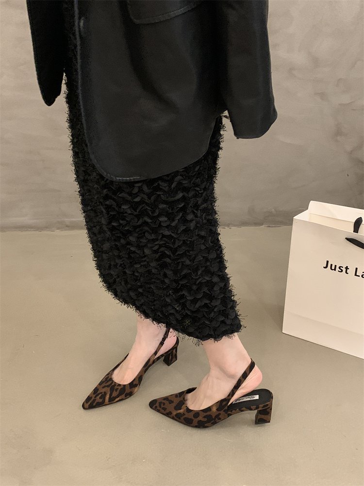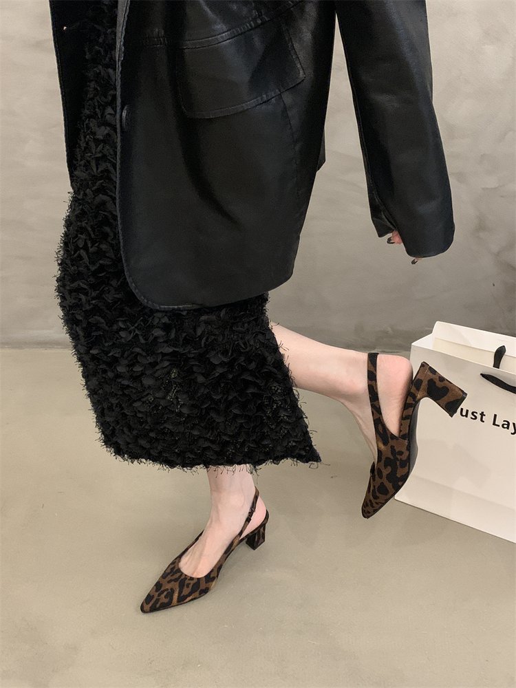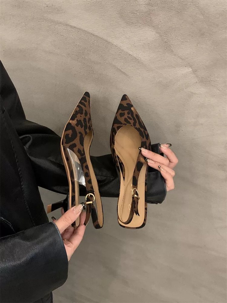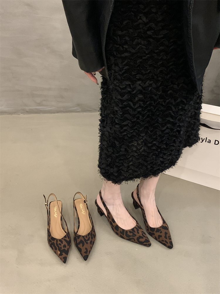 고급 틈새 레오파드 무늬 싱글 레이어 신발 여성 2025 년 봄과 여름 새로운 복고풍 우아한 얇은 뒤꿈치 뾰족한 발가락 샌들스토어 가기