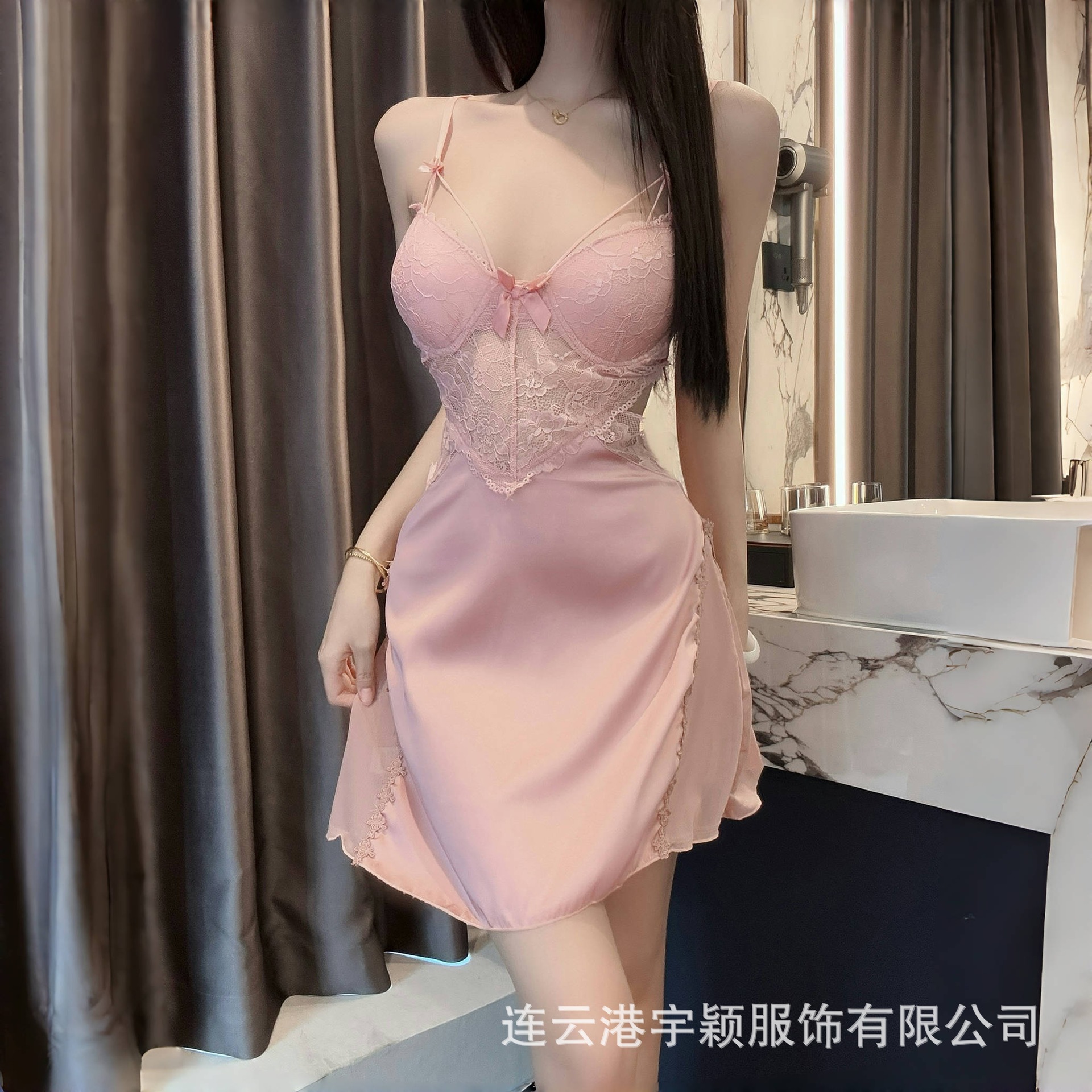 유잉 섹시 레이스 시스루 유혹적인 스틸링 푸쉬업 가슴 패드 대형 사이즈 슬립 드레스 여성 잠옷 세트 883