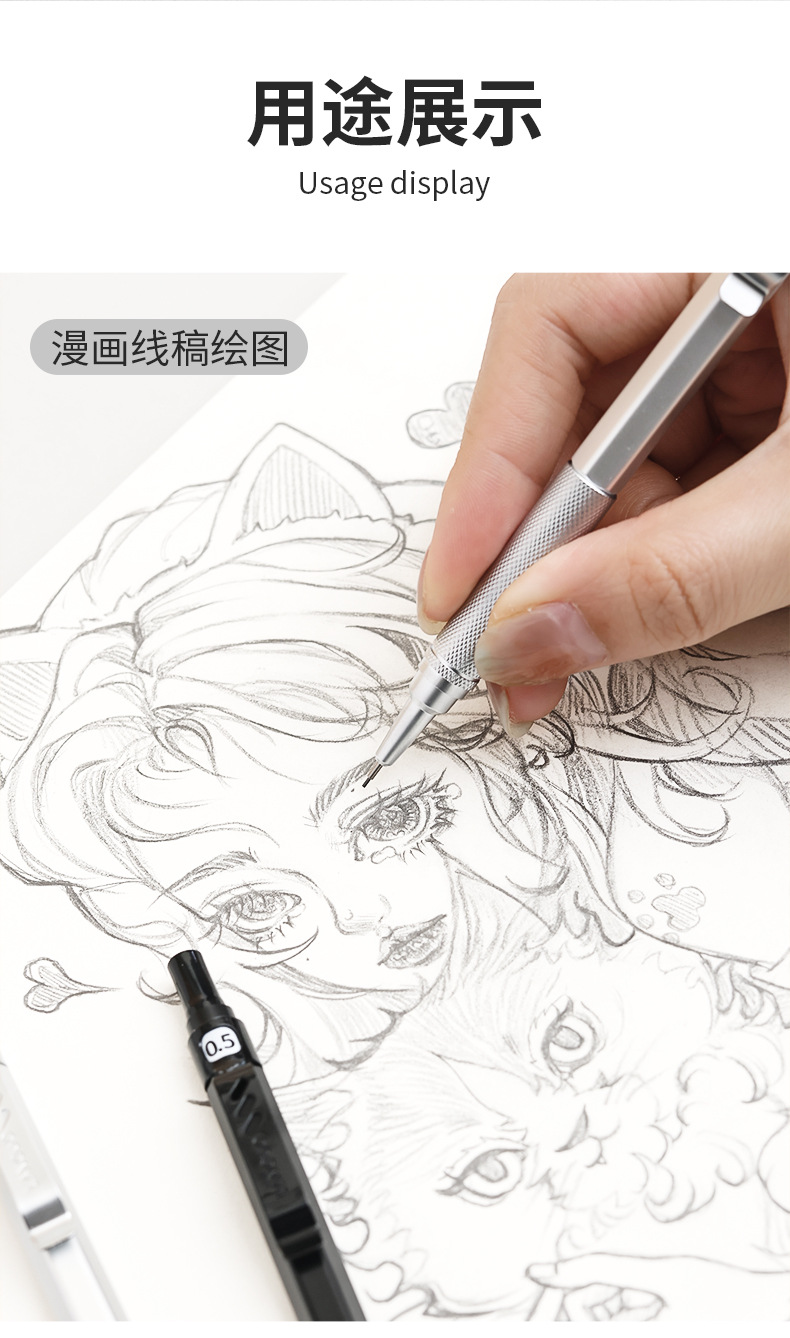 블루 과일 자동 연필 0.3/0.5mm 금속 전문 드로잉 2b 프레스 이동식 연필 스트로크 그림스토어 가기