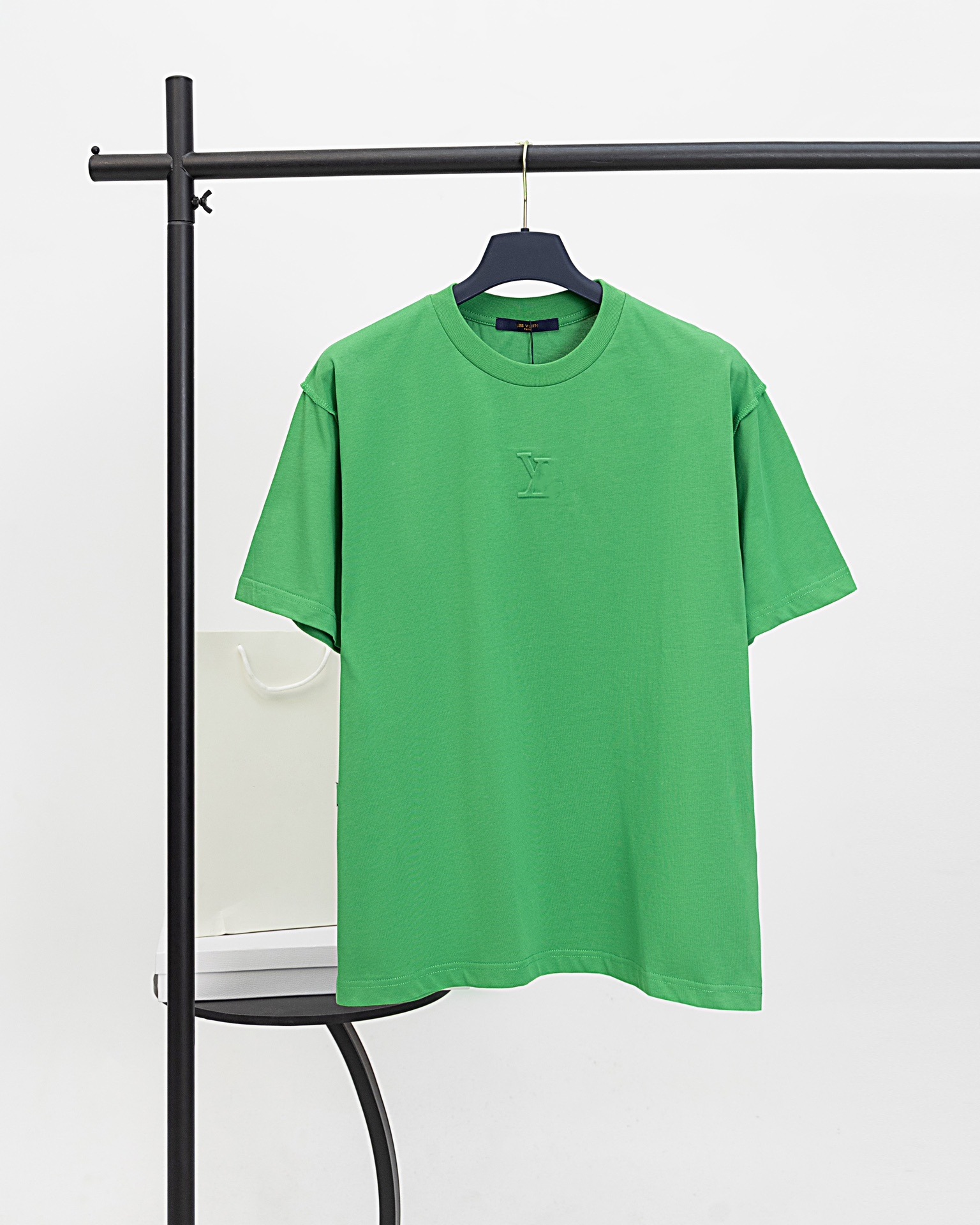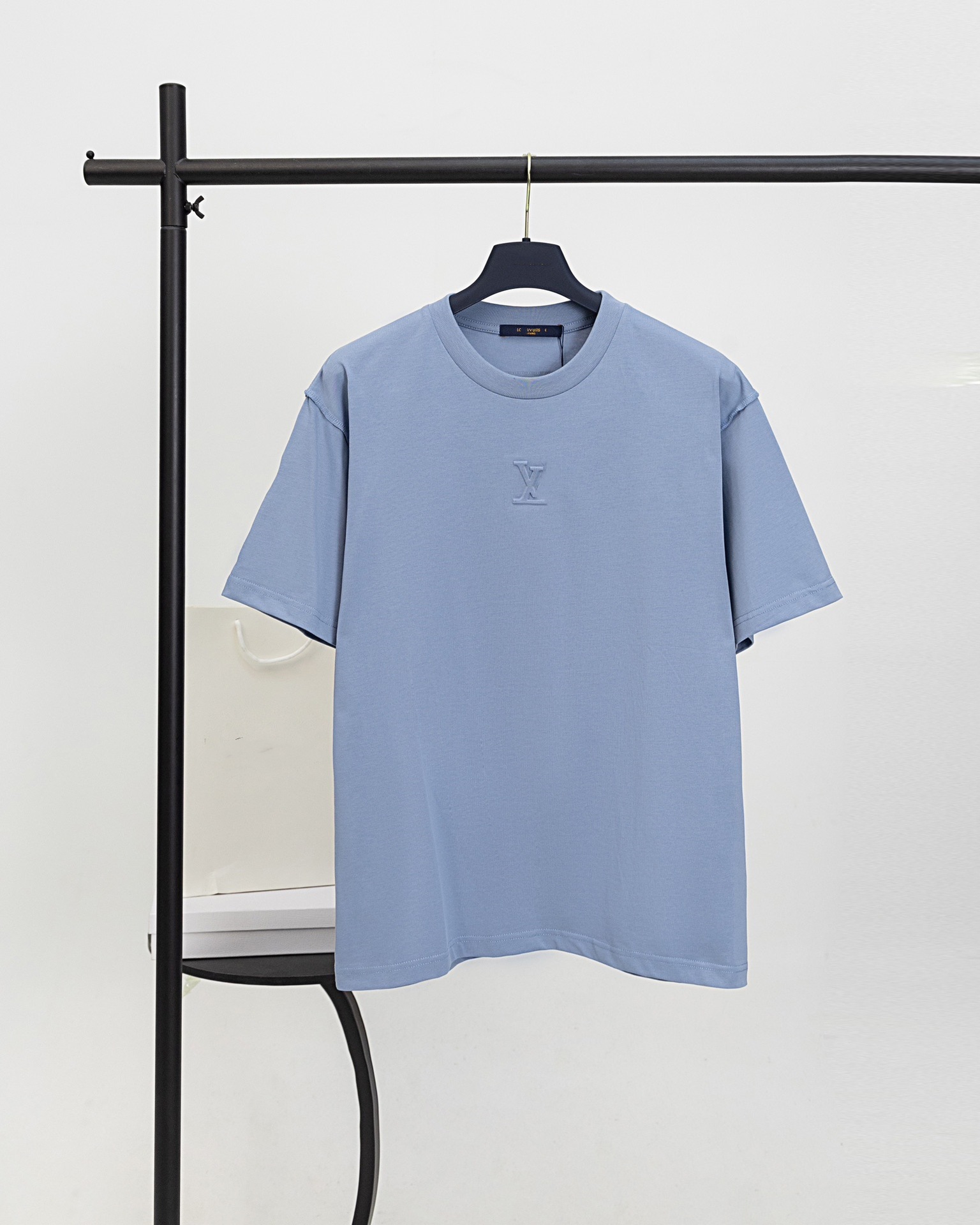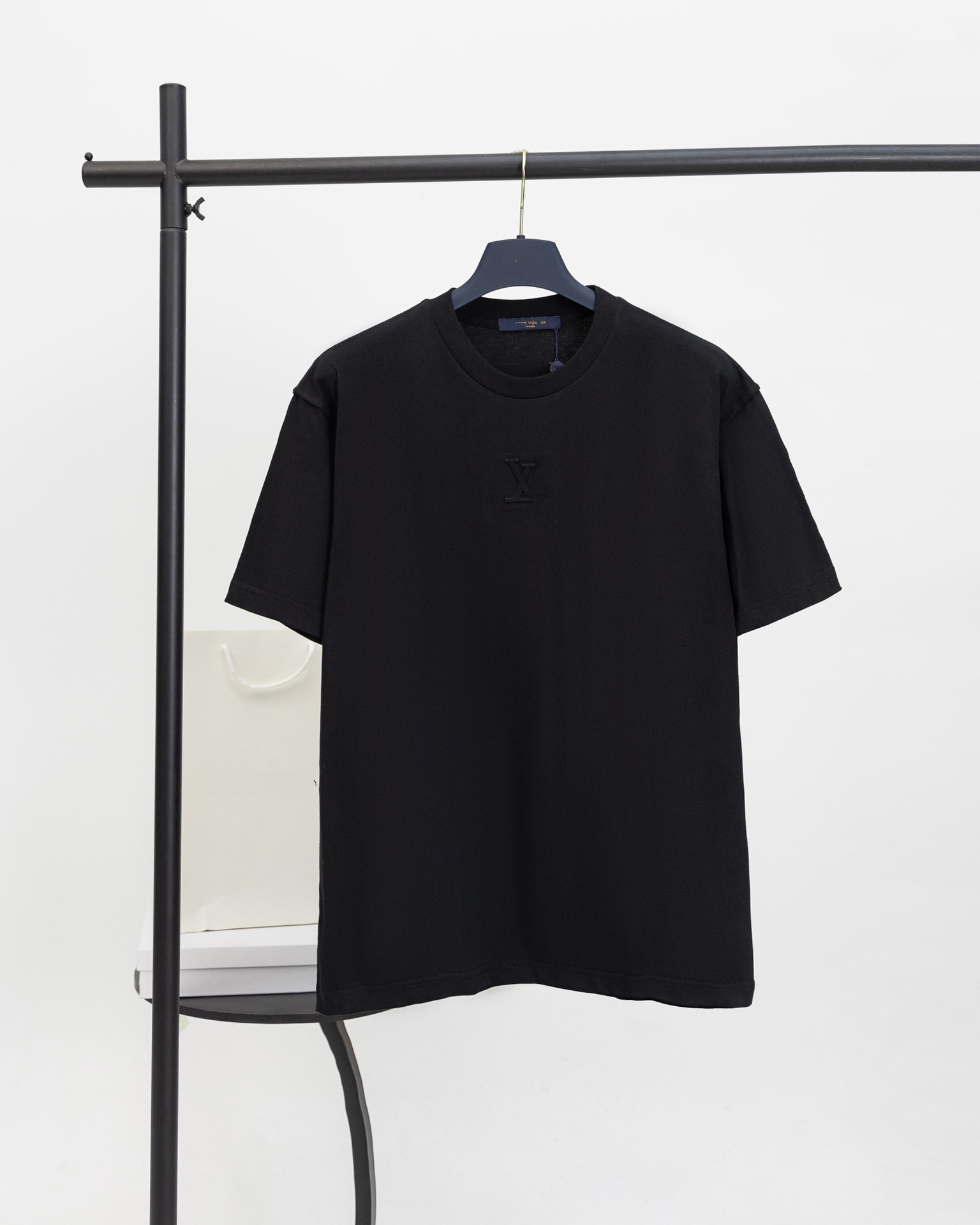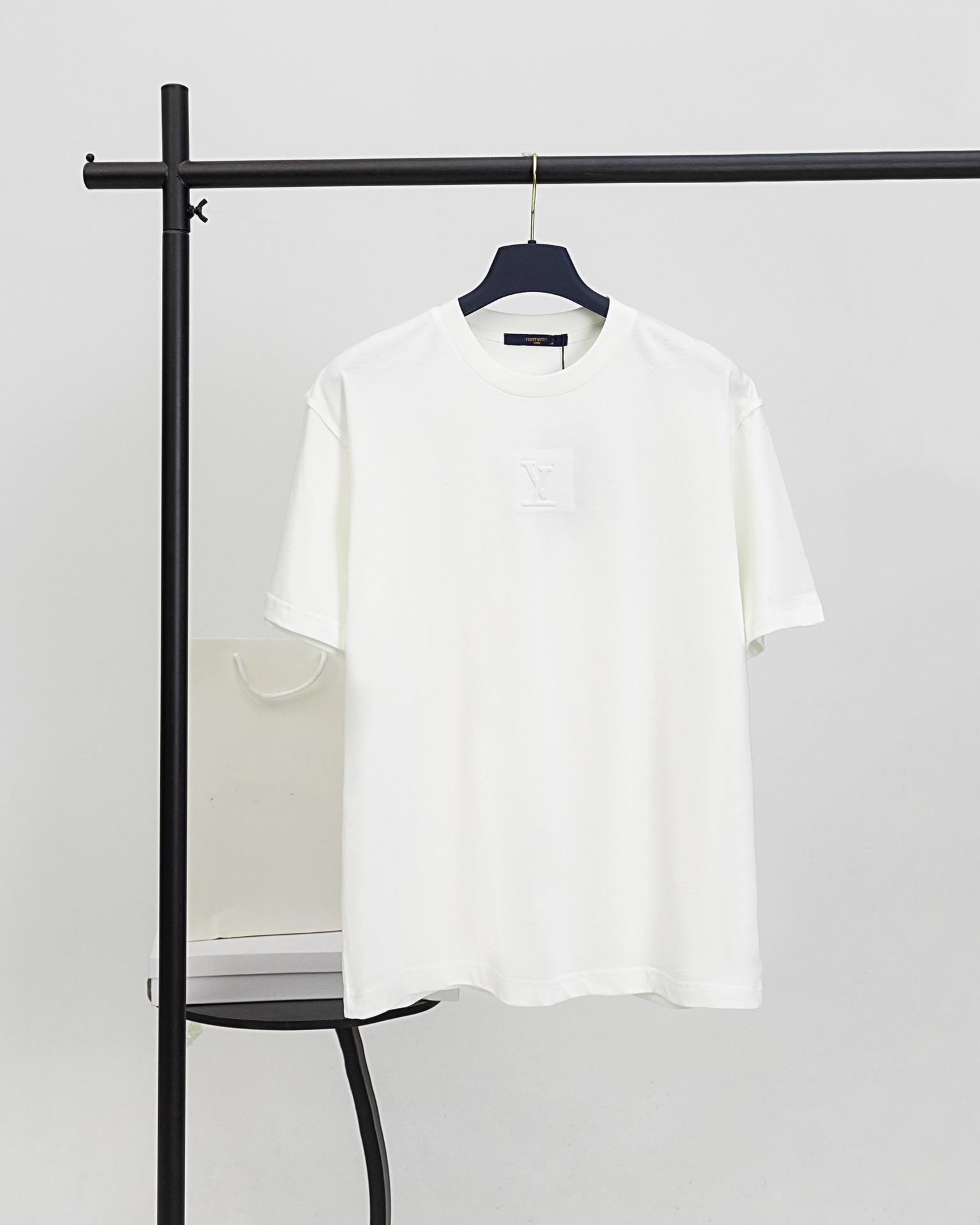높은 버전. L 가족 2025 봄과 여름 새로운 입체 문자 양각 패션 캐주얼 남성 및 여성 당나귀 가족 반팔 티셔츠스토어 가기