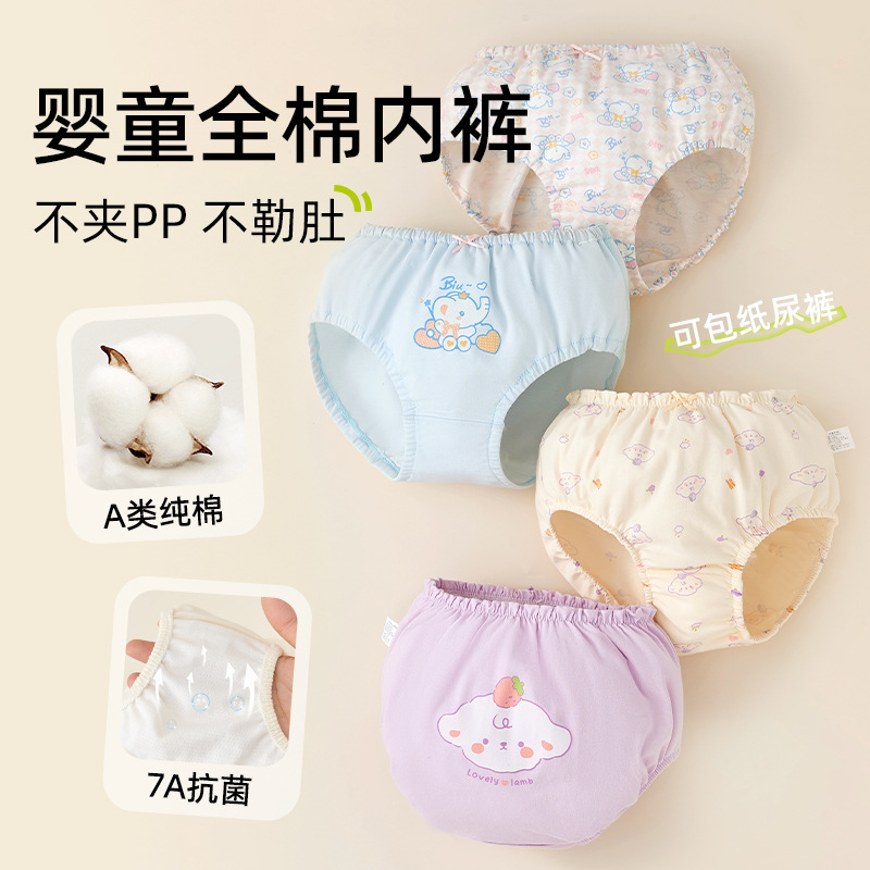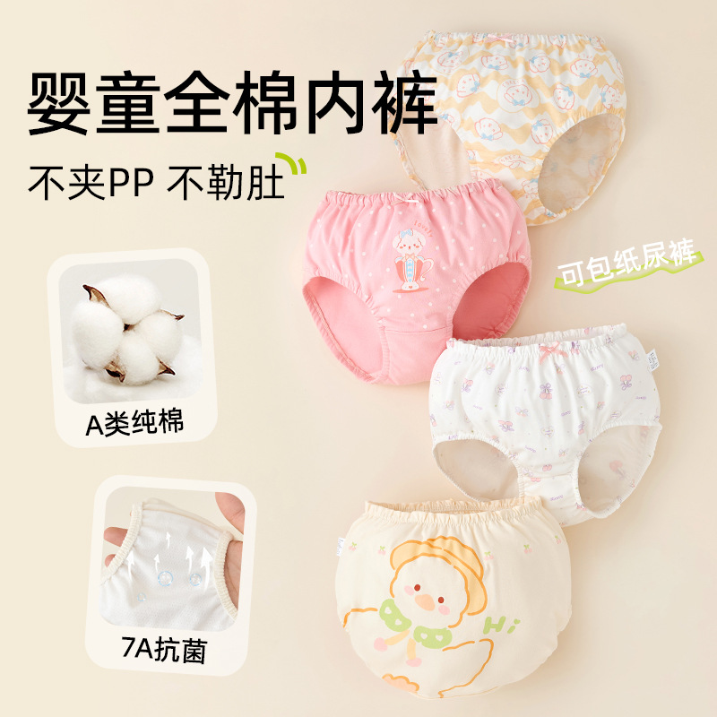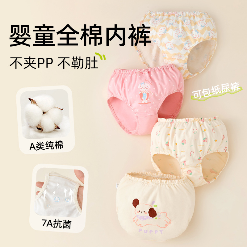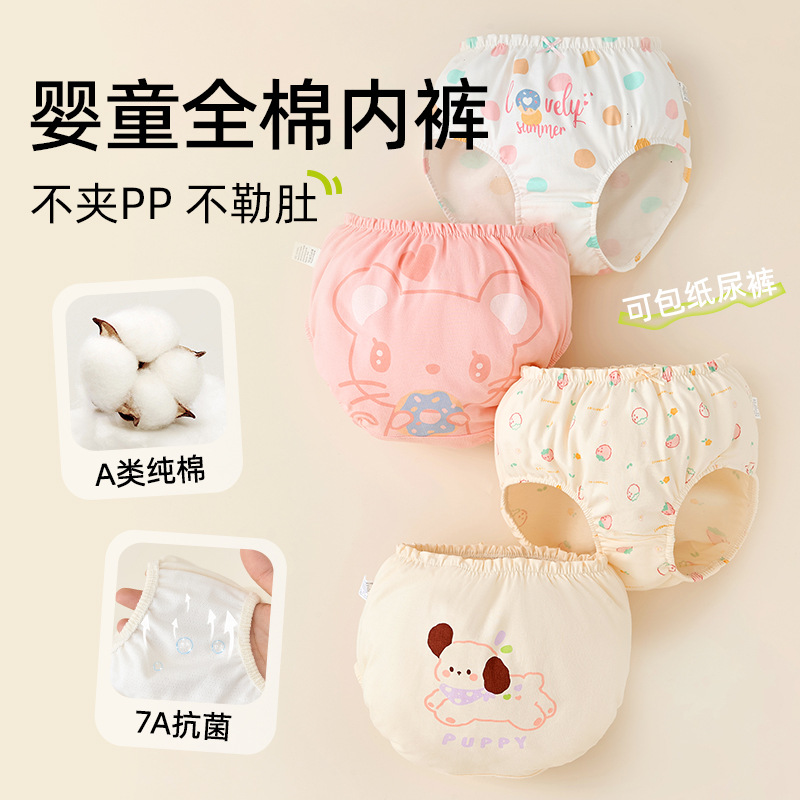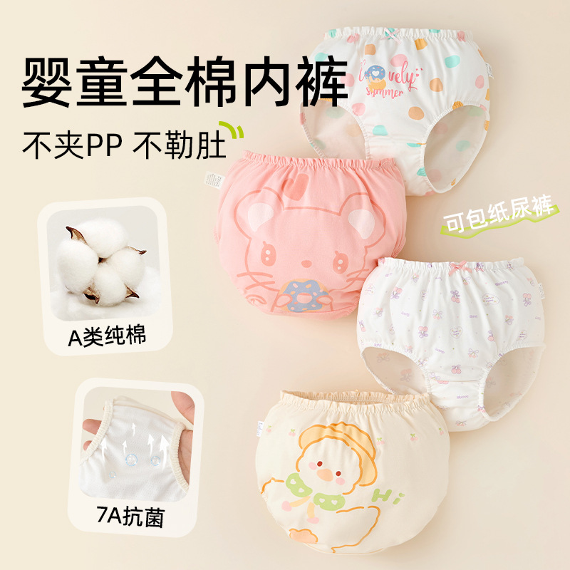 아기 속옷 여아용 순면 A급 면 아동용 팬티 유아용 반바지 영유아용 삼각팬티 엉덩이를 꼬집지 않게 디자인됨스토어 가기