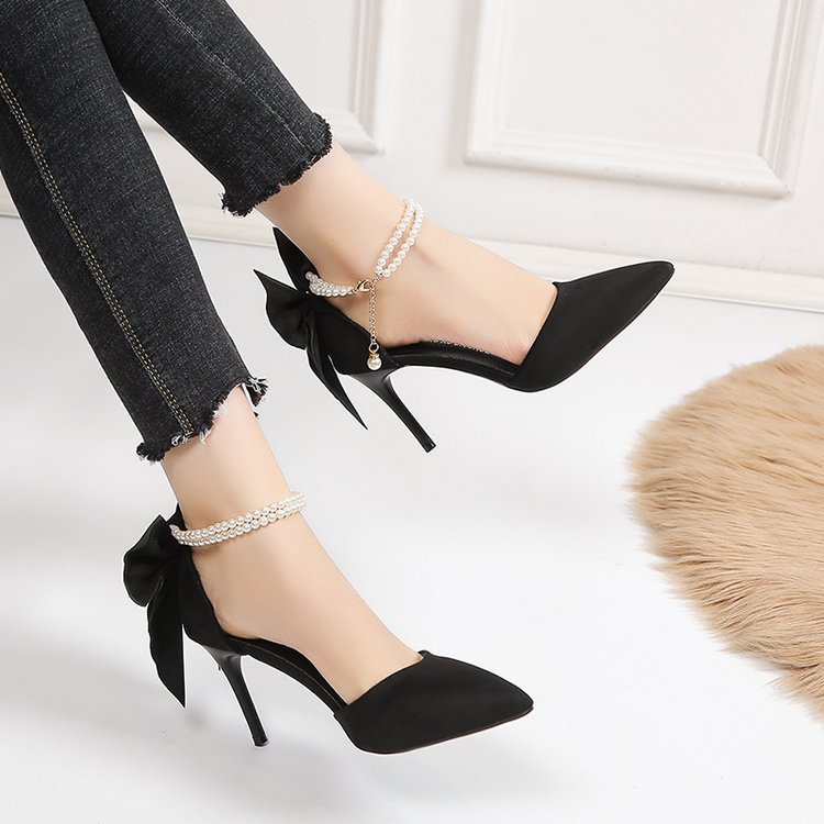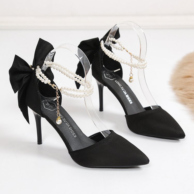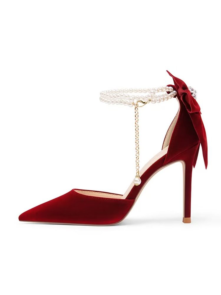 빨간 Xiuhe 웨딩 슈즈 스틸레토 힐 포인팅 하이힐 여성 싱글 슈즈 뉴 보우 펄 피곤하지 않은 발 신부 신발스토어 가기