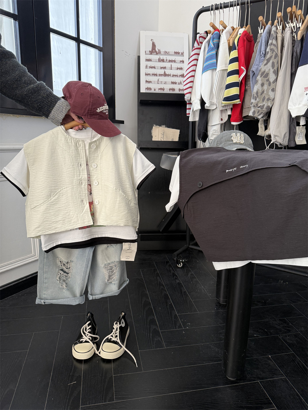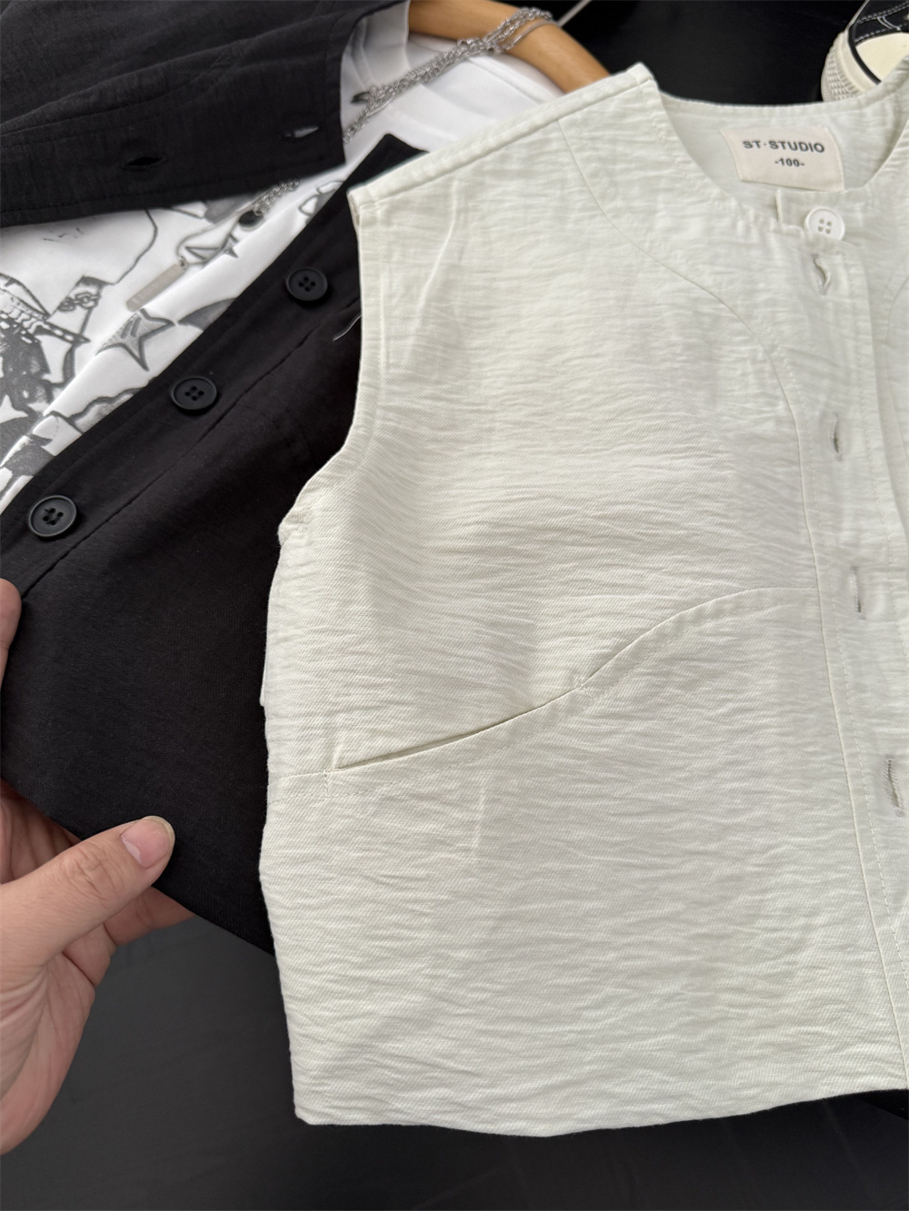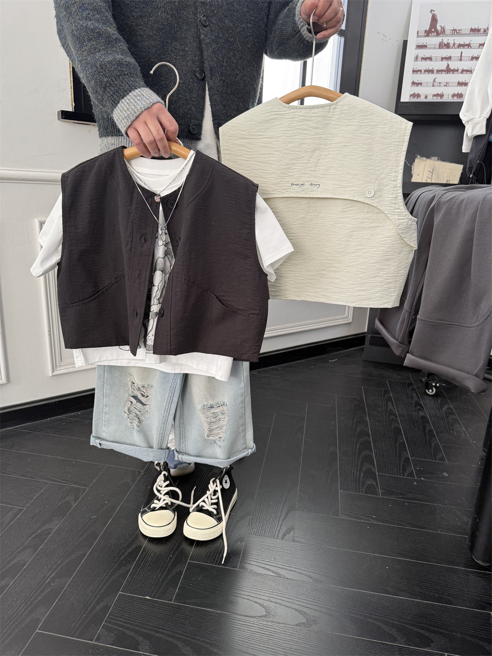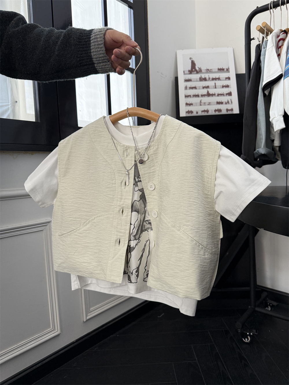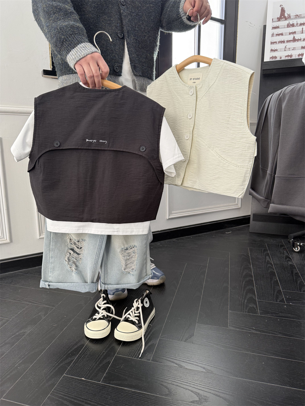 儿童春夏薄款马甲,面料带纹理感