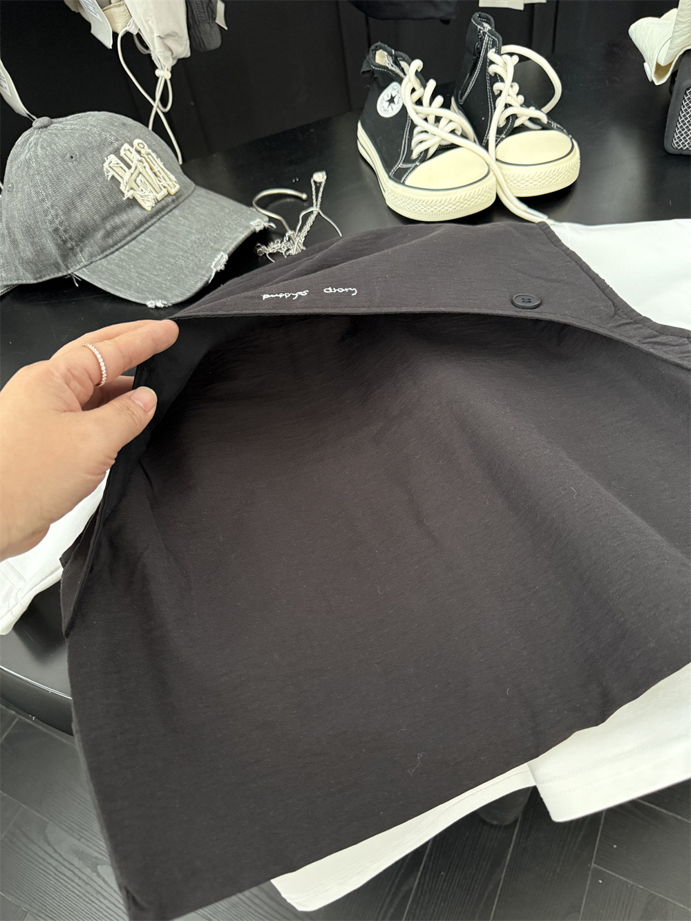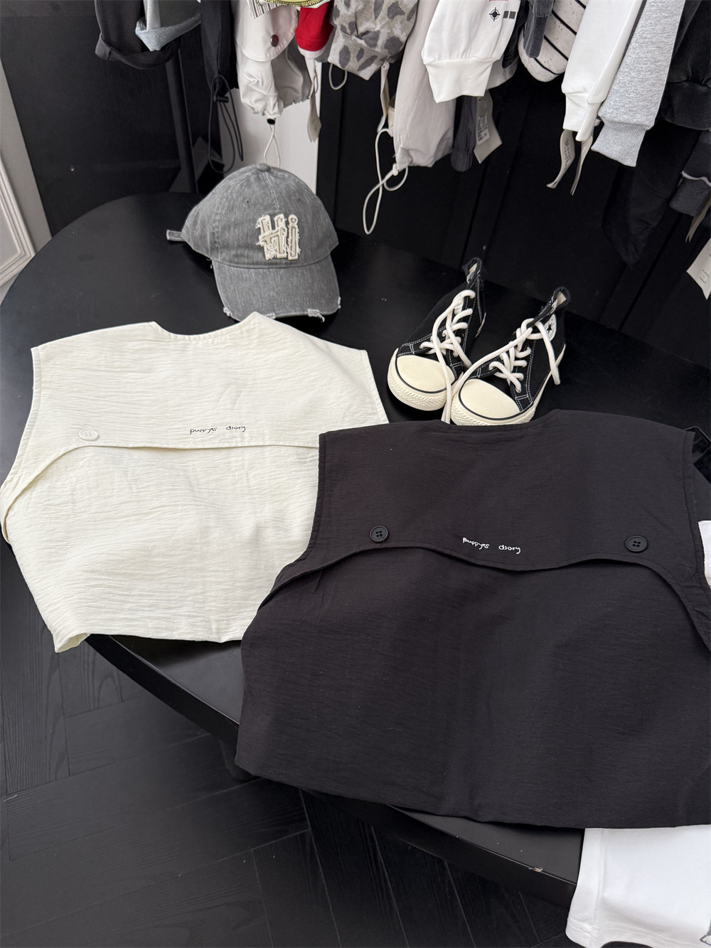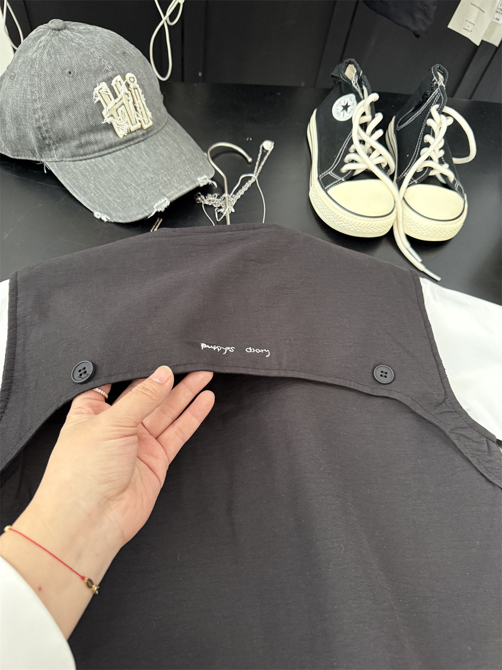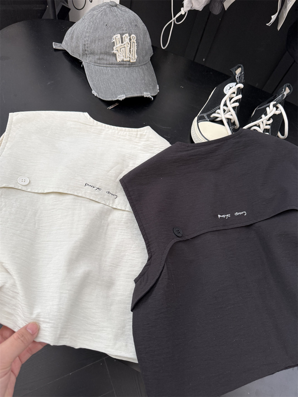 两个颜色都很百搭,后背有个刺绣小字母
