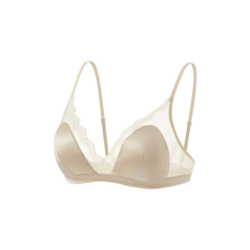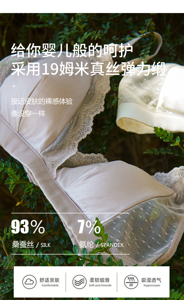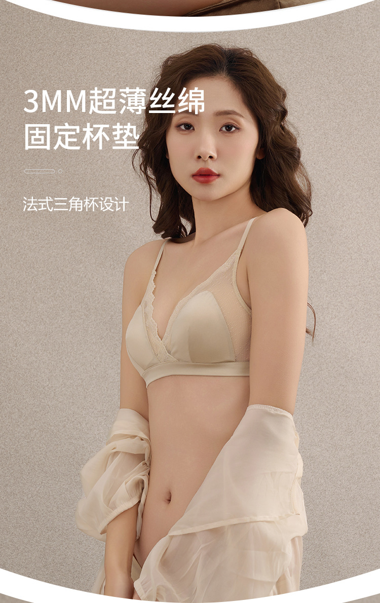 구오 리안 실크 얇은 속옷 스틸 링 뽕나무 실크 프렌치 새틴 트라이앵글 컵 여자 브라