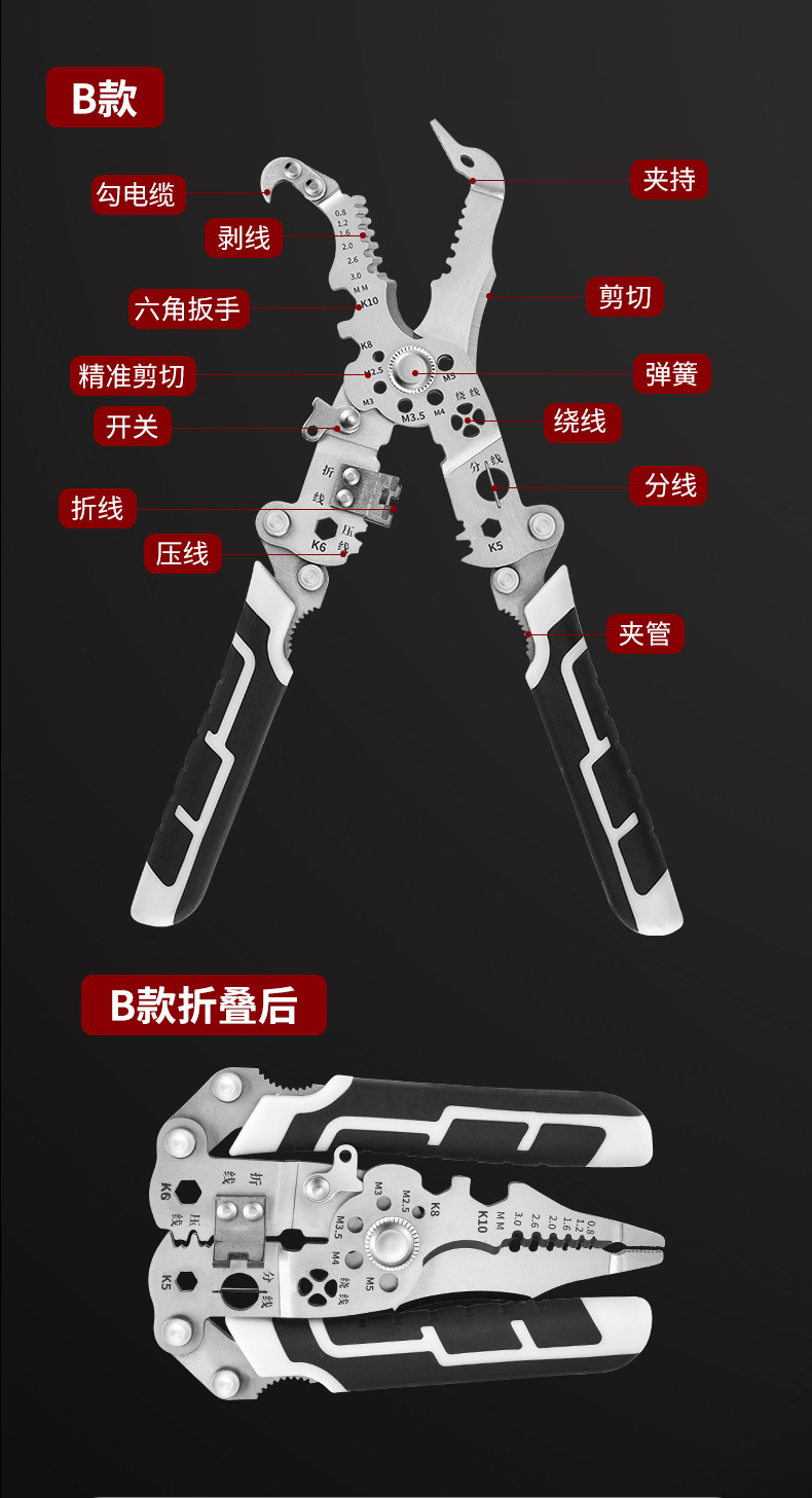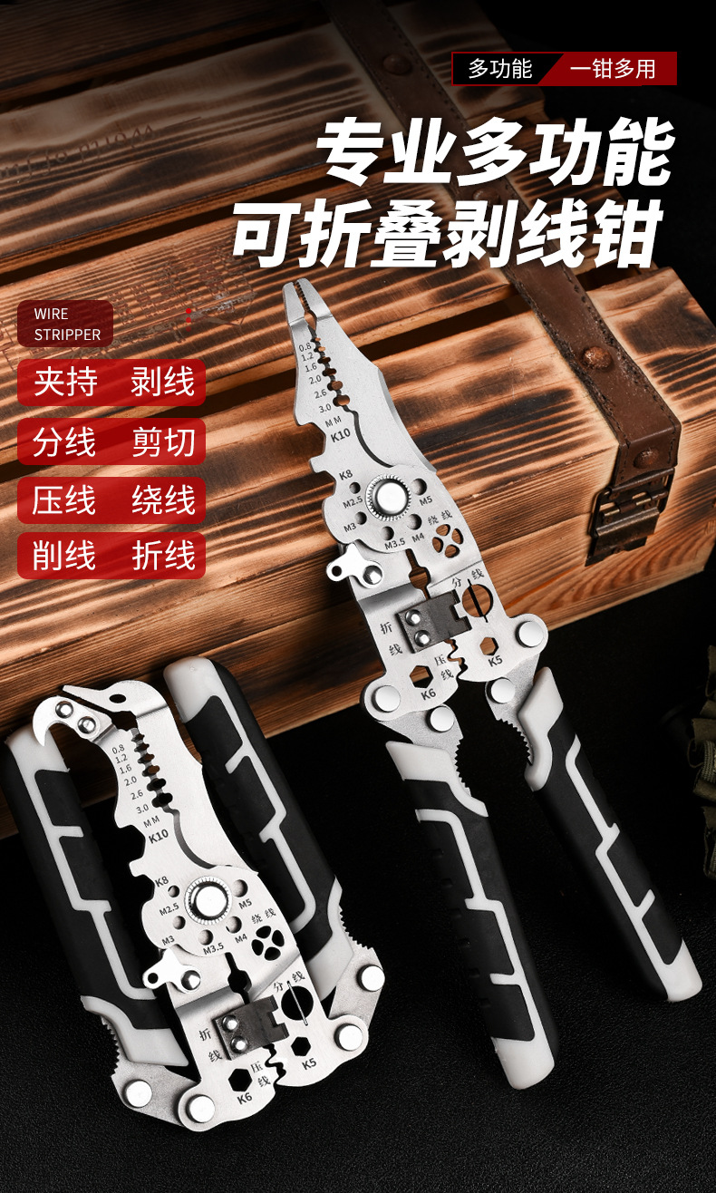 전기 기술자의 특수 와이어 스트리핑 와이어 권선 절단 도구 플라이어 휴대용 스토리지를 위한 다기능 접이식 와이어 스트리핑 펜치스토어 가기
