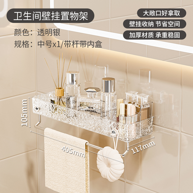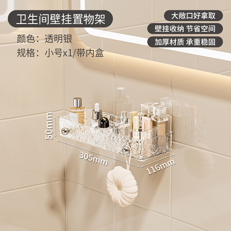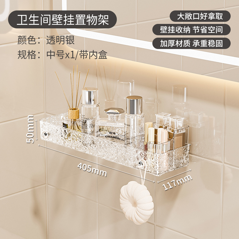 욕실 수납 선반 무타공 아크릴 화장실 용품 세면대 벽걸이 수납 선반 배수 기능