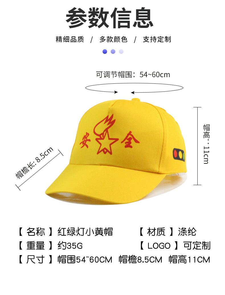 초중고 학생 교통 안전 작은 노란색 모자 스포츠 야구 모자 자원 봉사 활동 신호등 작은 노란색 모자 홍보
