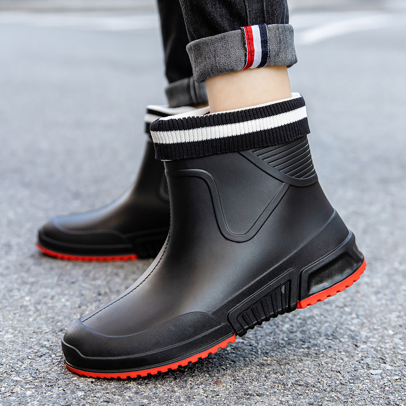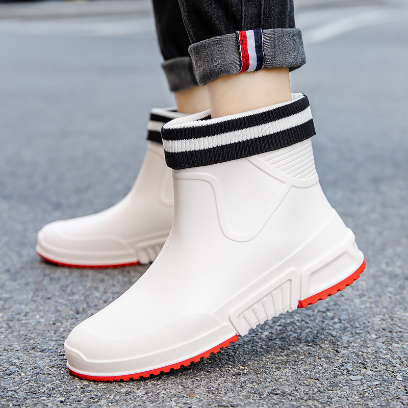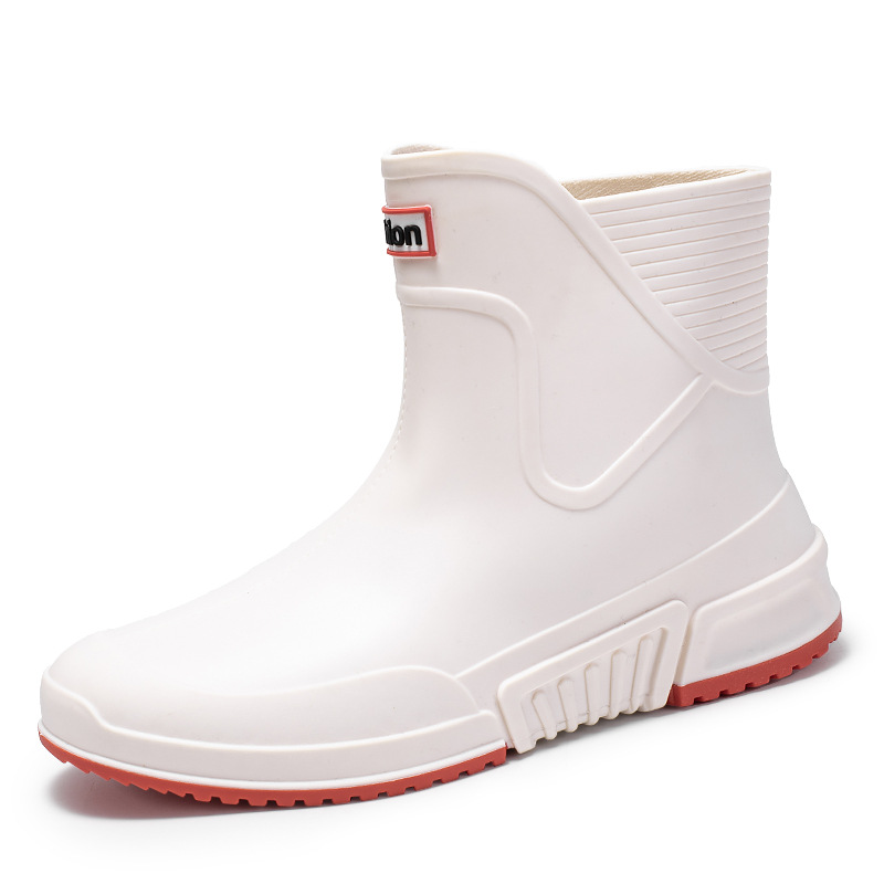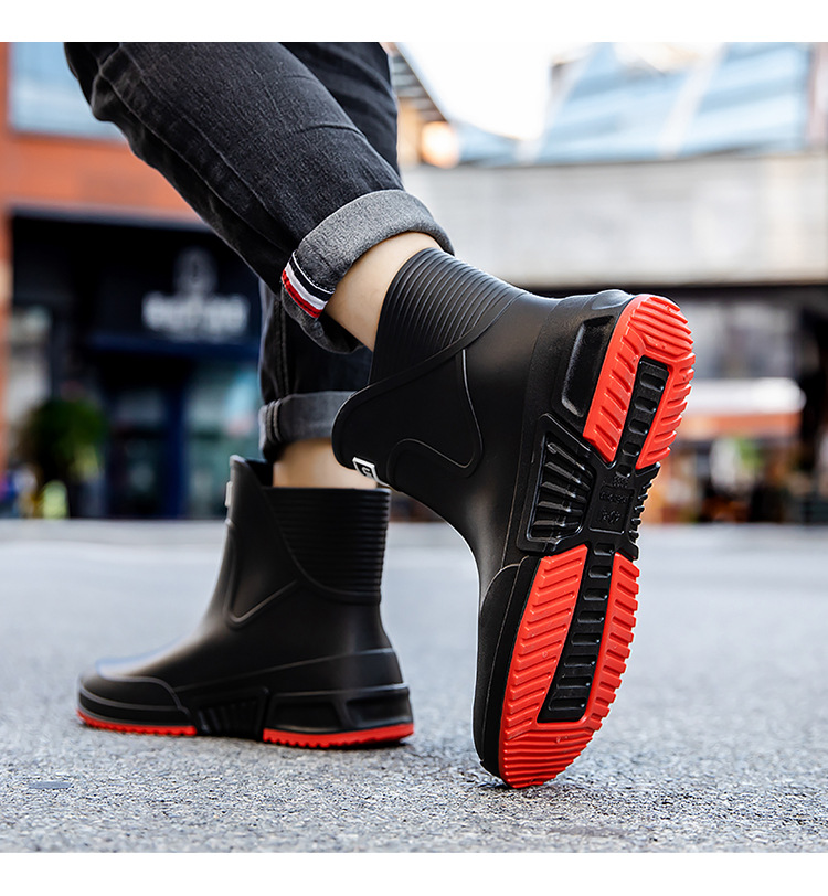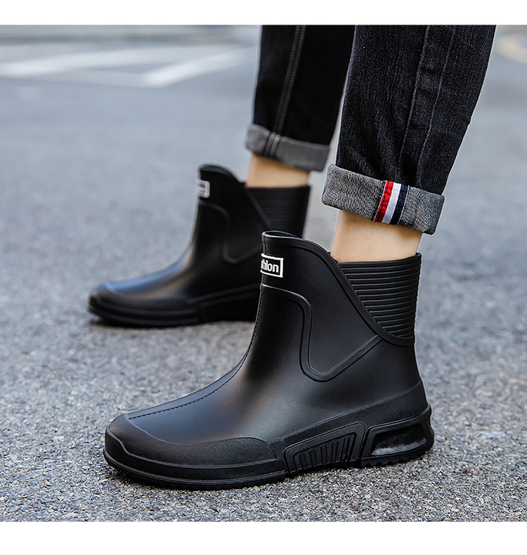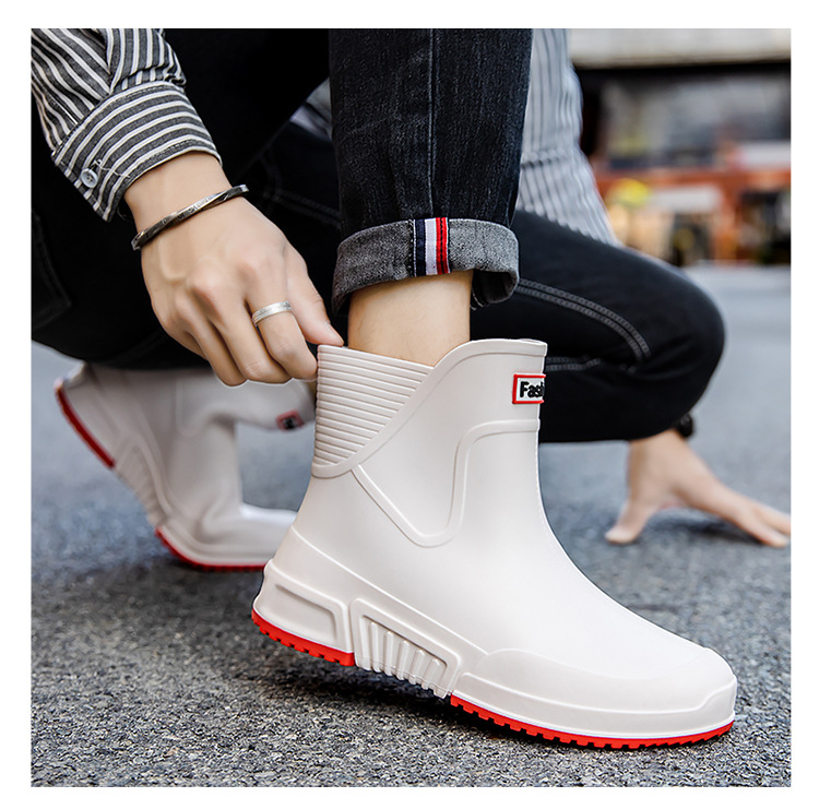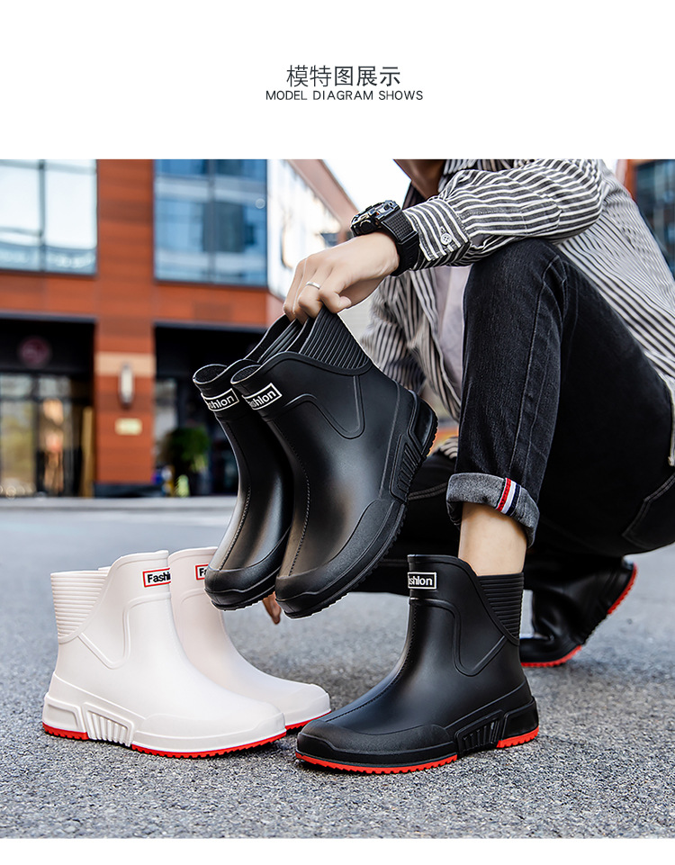 패션 장화 남성용 트렌디 한 쇼트 튜브 워터 슈즈 아우터 워크 슈즈 한국식 미드 튜브 방수 미끄럼 방지 레인 부츠 여성스토어 가기