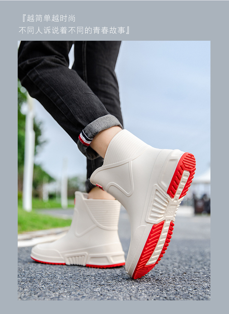패션 장화 남성용 트렌디 한 쇼트 튜브 워터 슈즈 아우터 워크 슈즈 한국식 미드 튜브 방수 미끄럼 방지 레인 부츠 여성