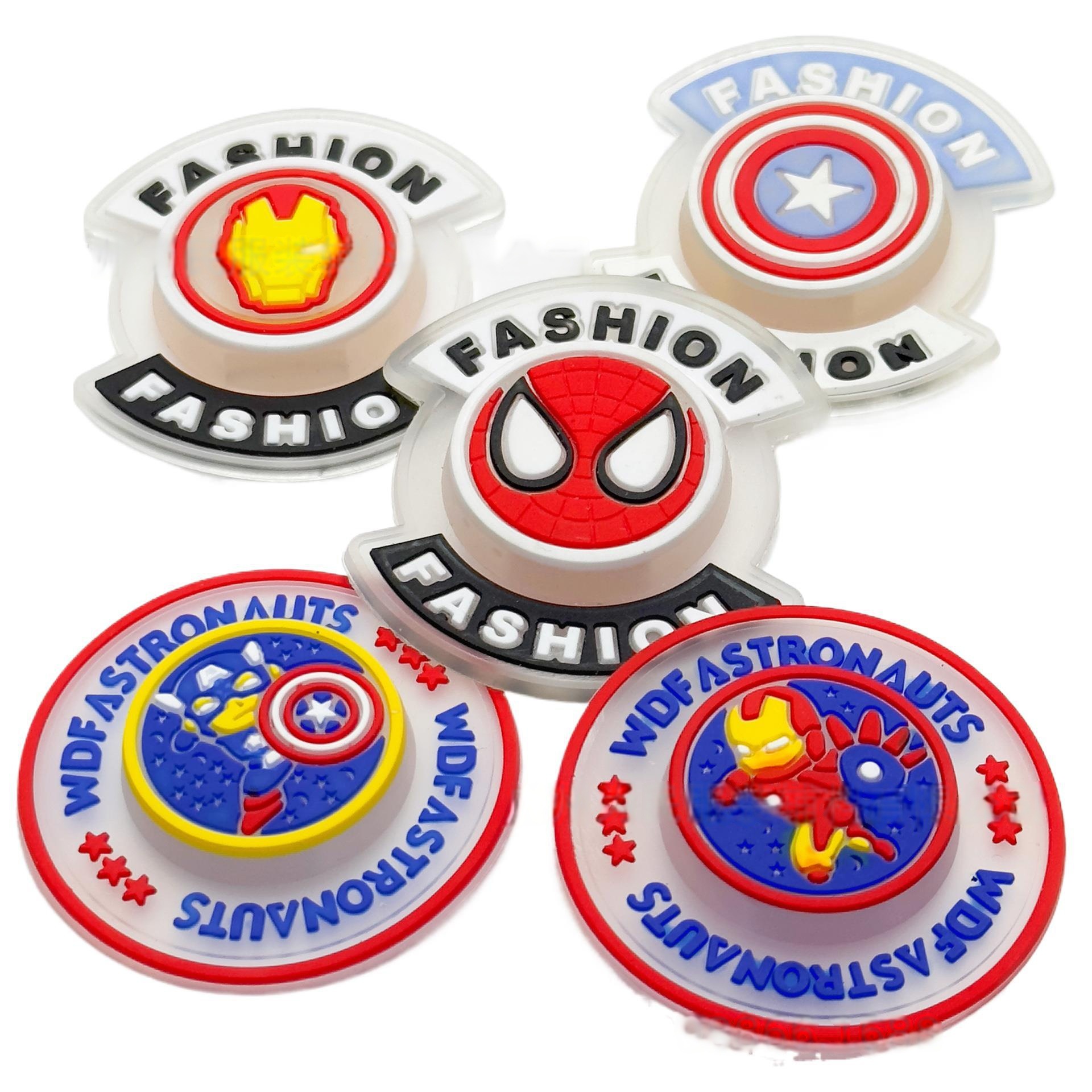 소스 공장 의류 섬유 액세서리 아이언 맨 PVC 고무 스탬프 점프 라이트 쉘 참신 라운드 간판스토어 가기