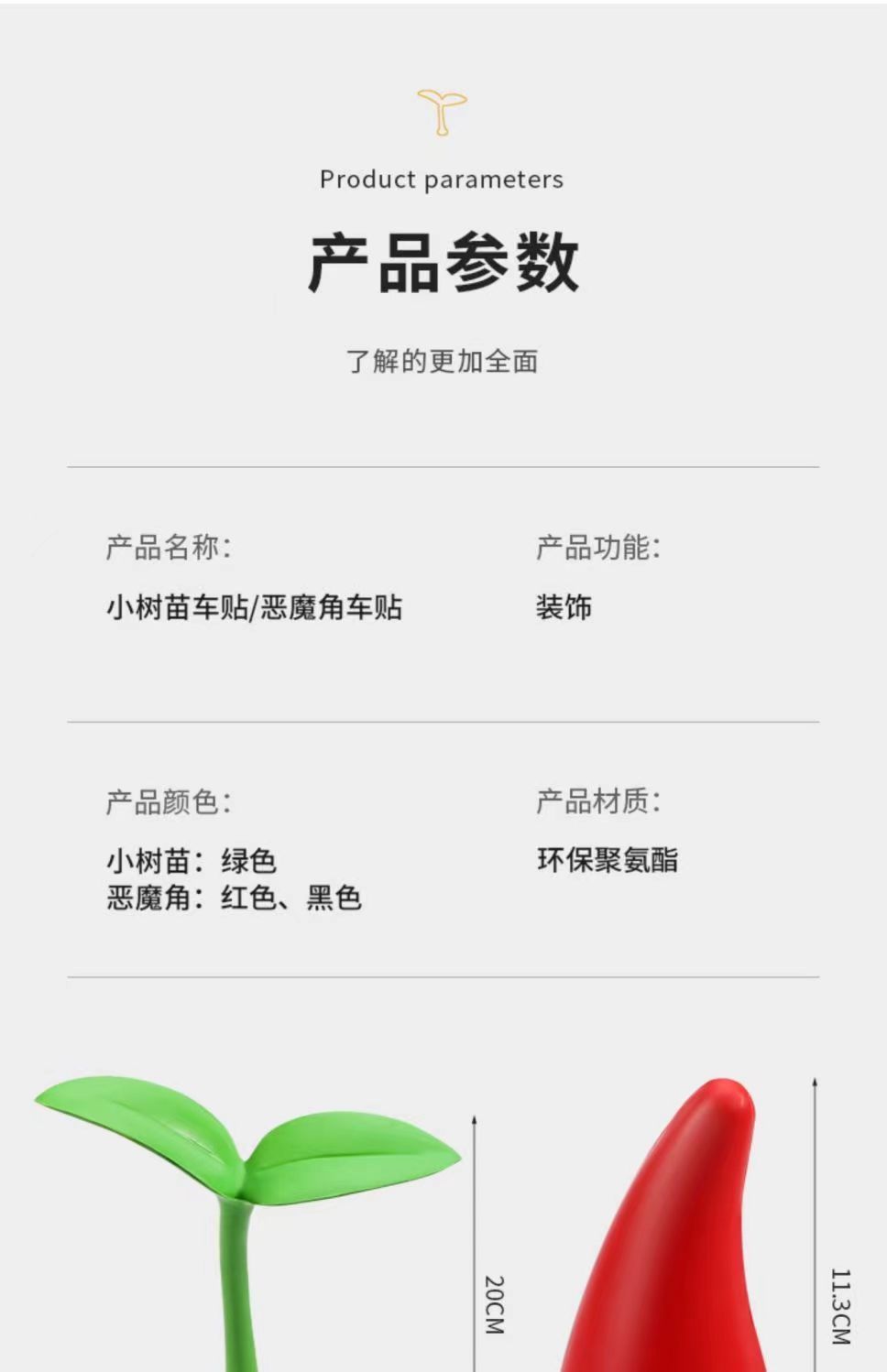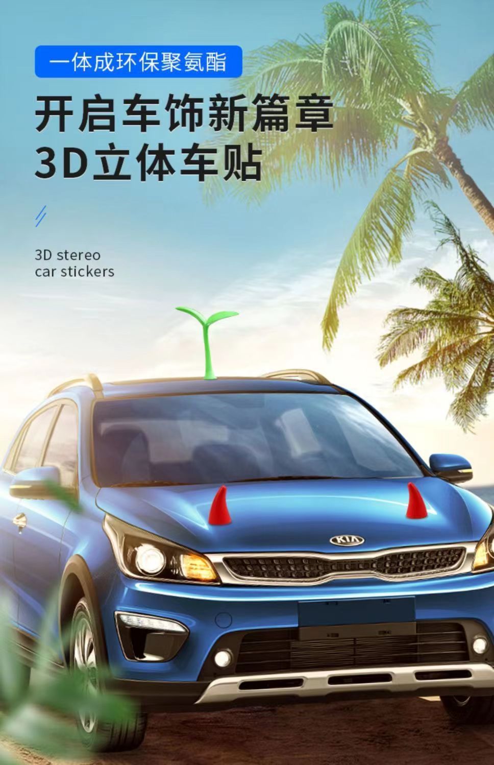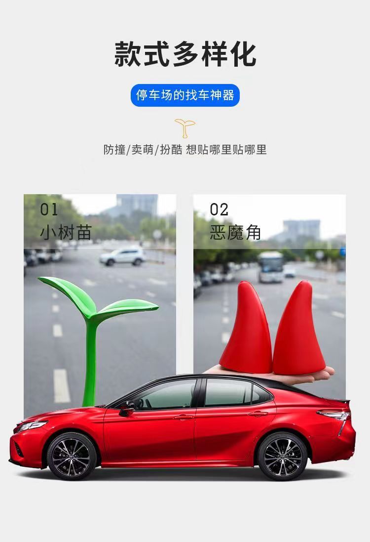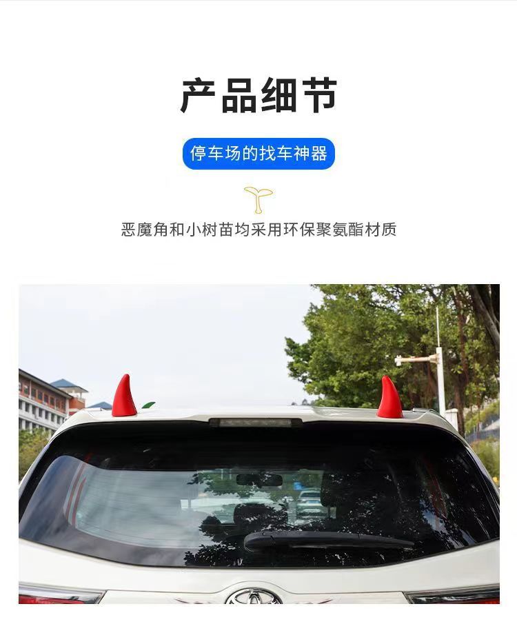 자동차 장식, 자동차 외부 장식, 귀여운 만화 자동차 지붕 수정 뿔, 악마 뿔 장식 스티커, 자동차 지붕 작은 묘목스토어 가기