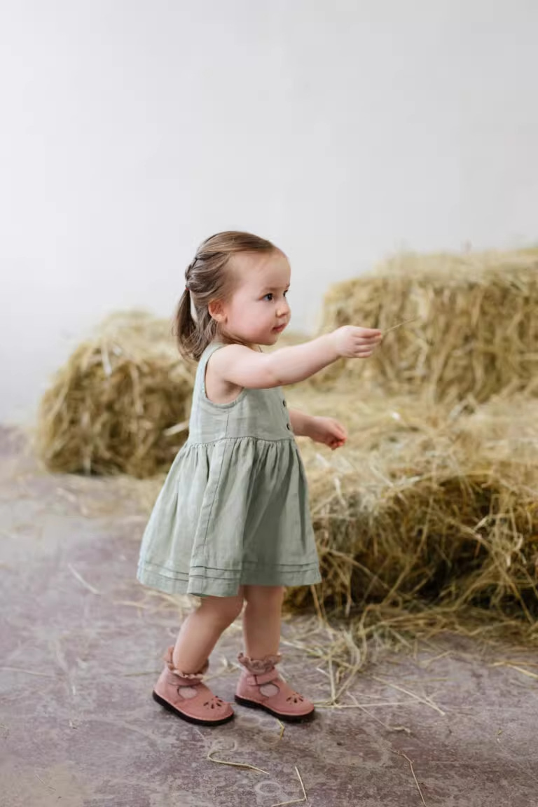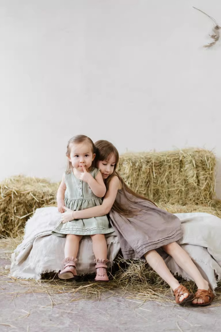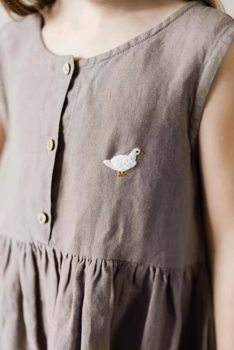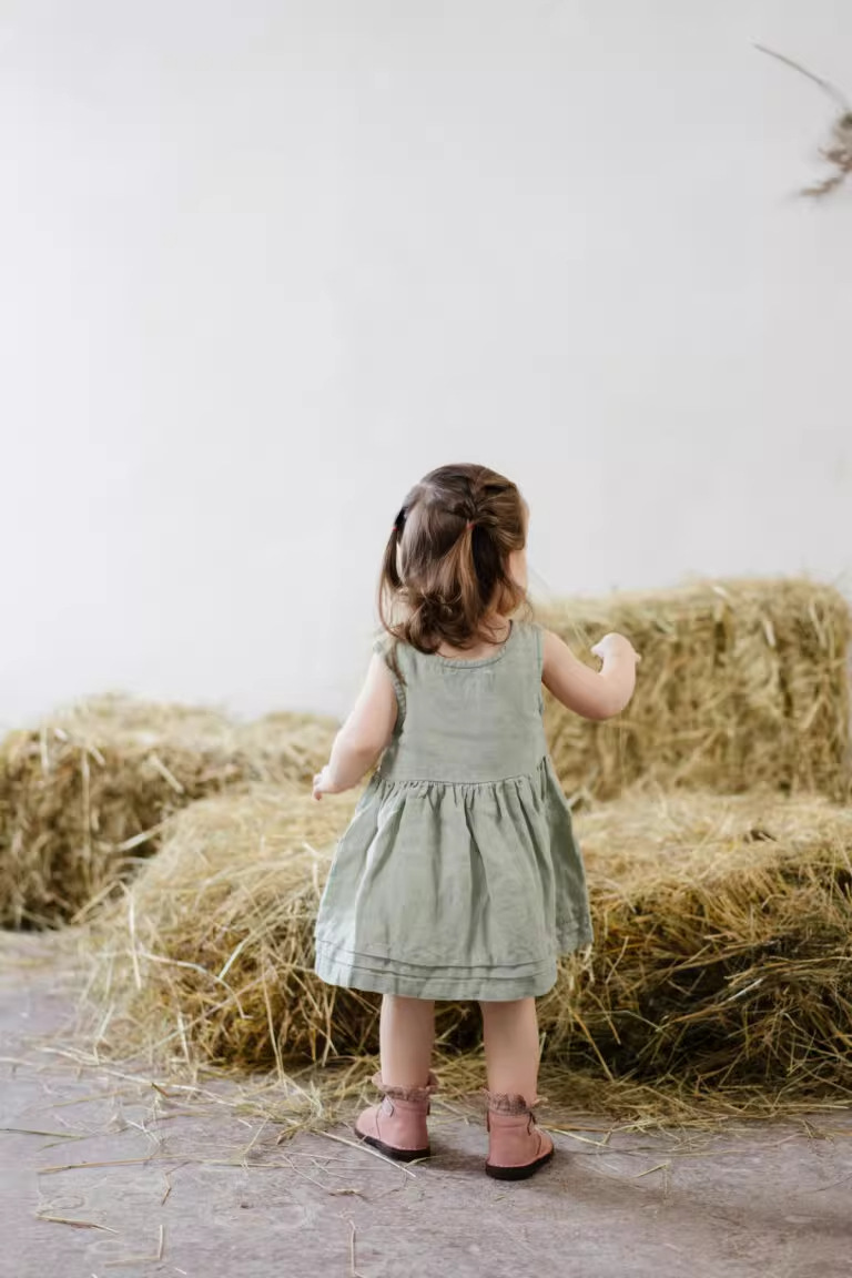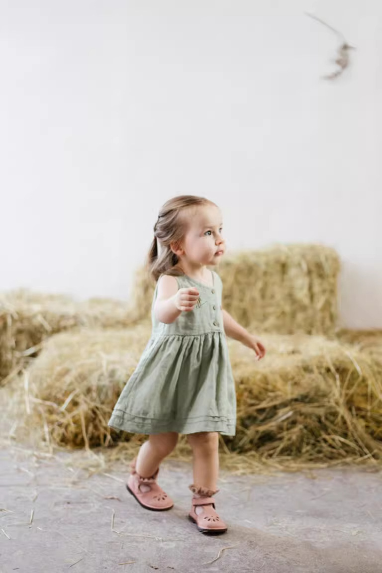 여아 여름 면 및 린넨 드레스, 아기 소녀의 예술적이고 심플한 허리 주름 디자인, 작은 앨리스 자수 스커트