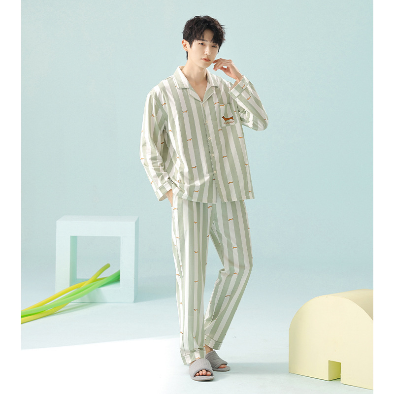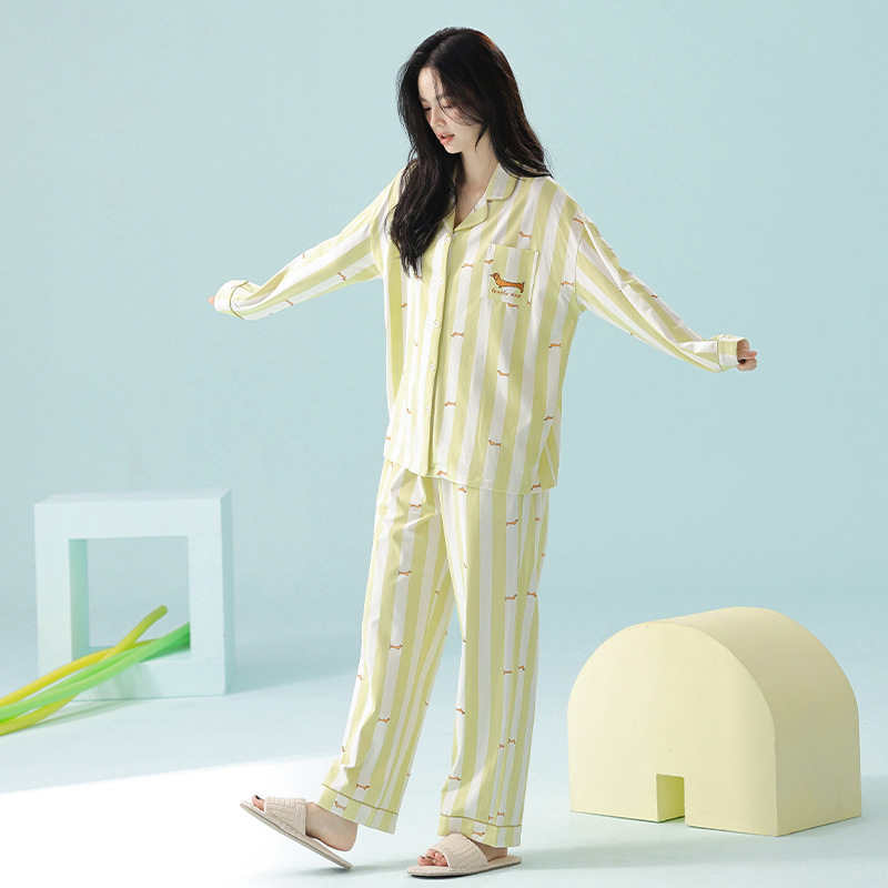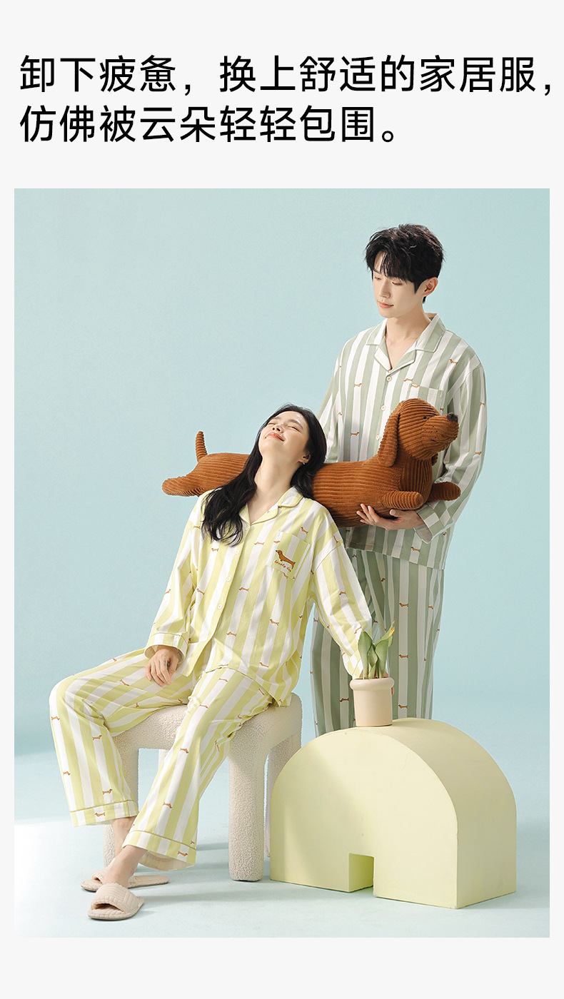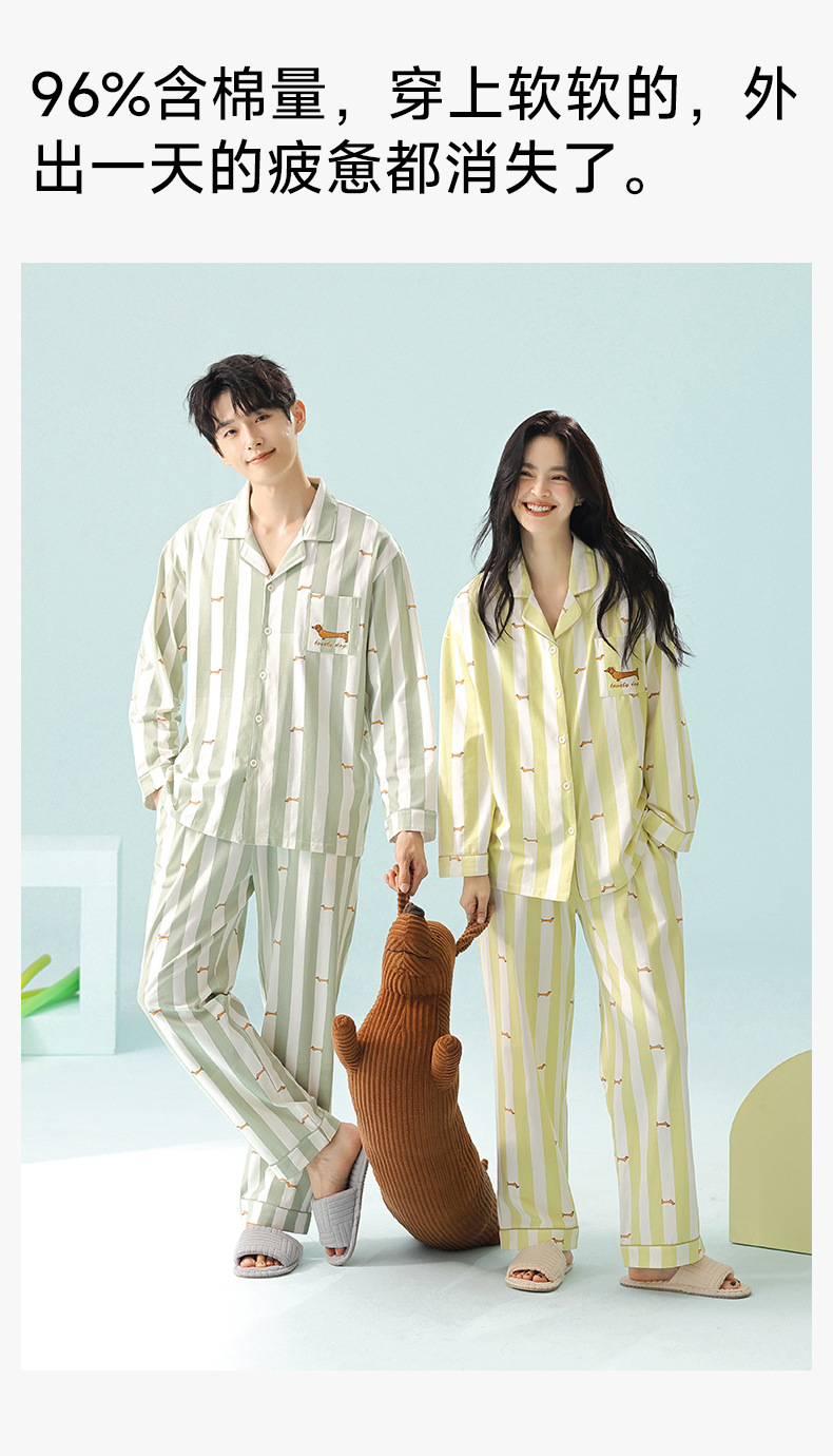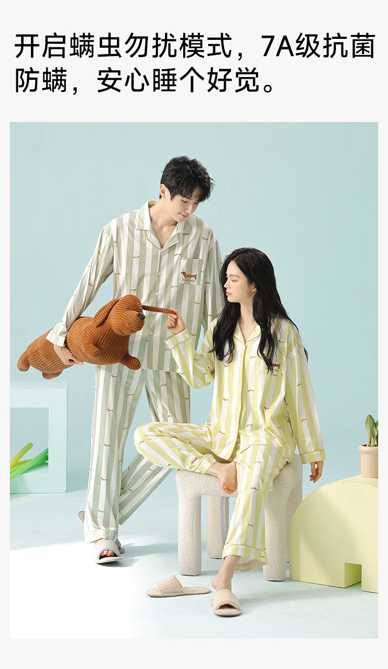 【항균 신장면】봄 여름 신상 커플 잠옷 순면 긴팔 여성용 라지 코튼 남성용 홈웨어스토어 가기