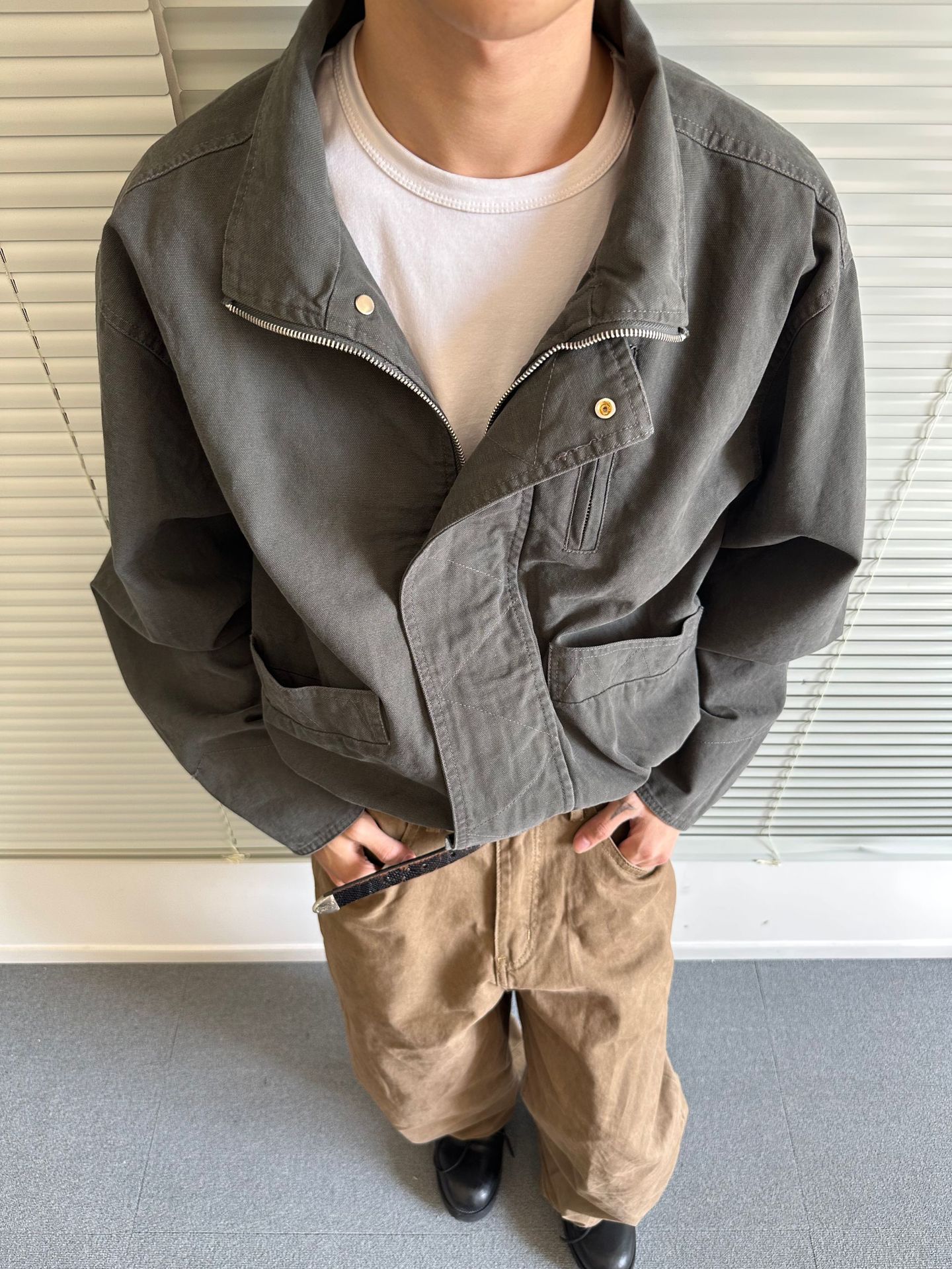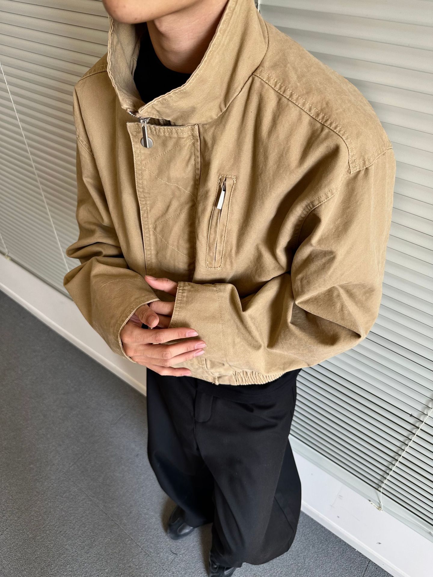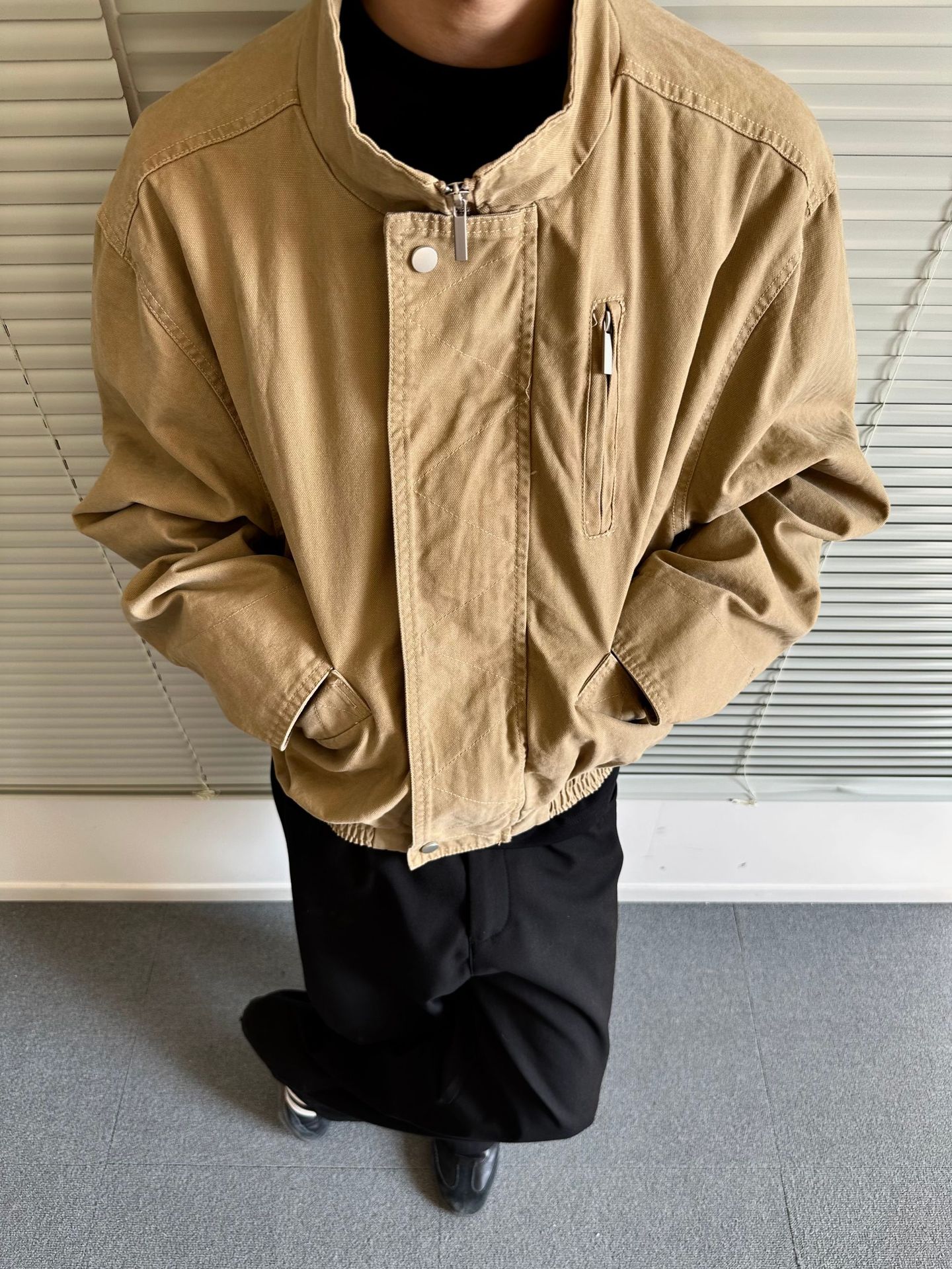 MADEEXTREME 봄 미국 복고풍 남성복 수직 칼라 폭격기 재킷 짧은 와이드 박스 작업복 세탁 재킷스토어 가기