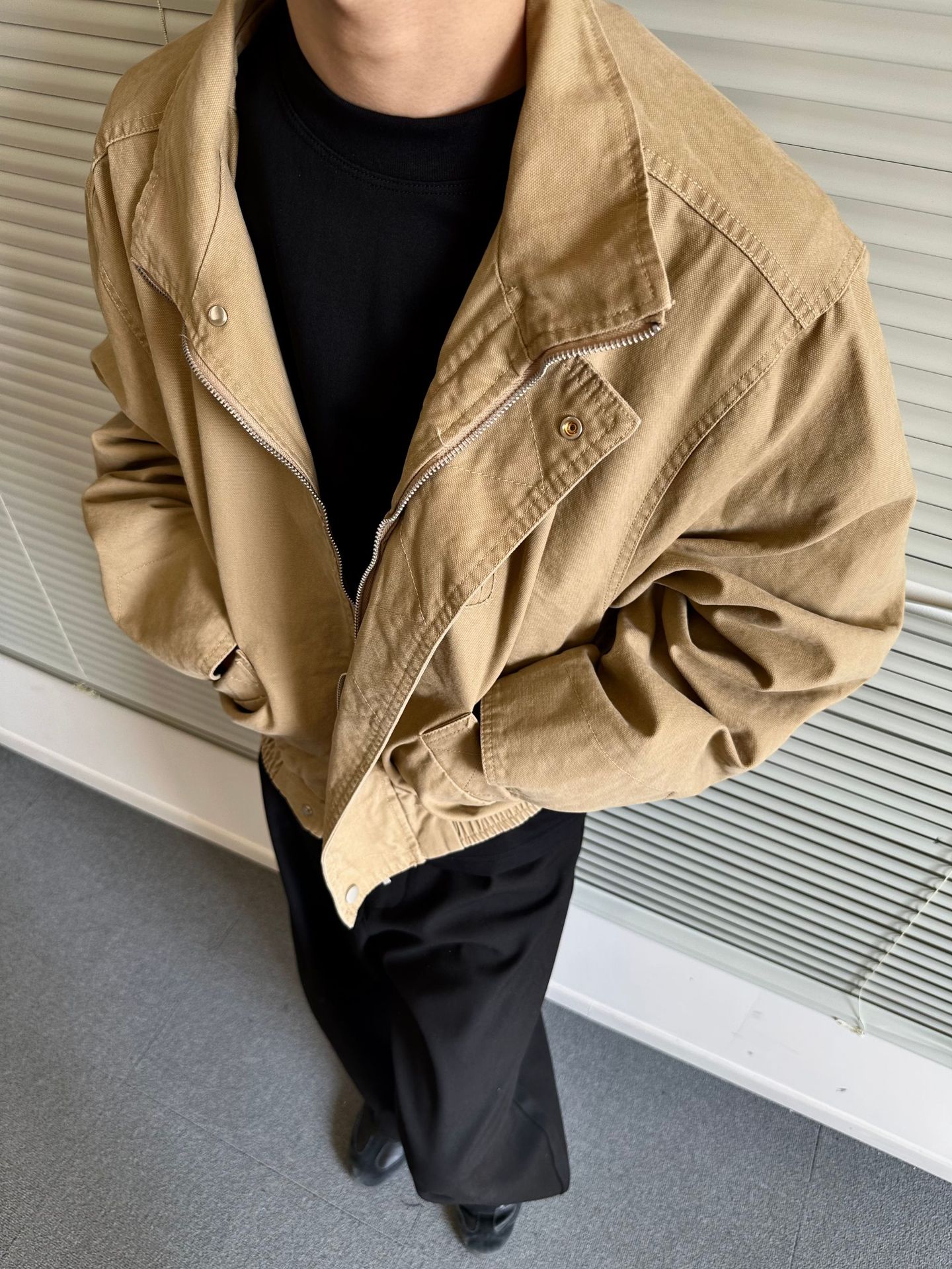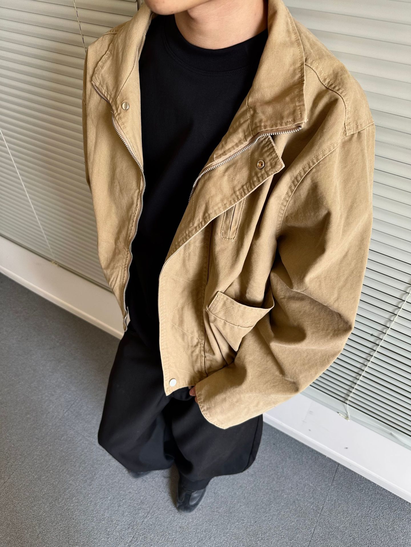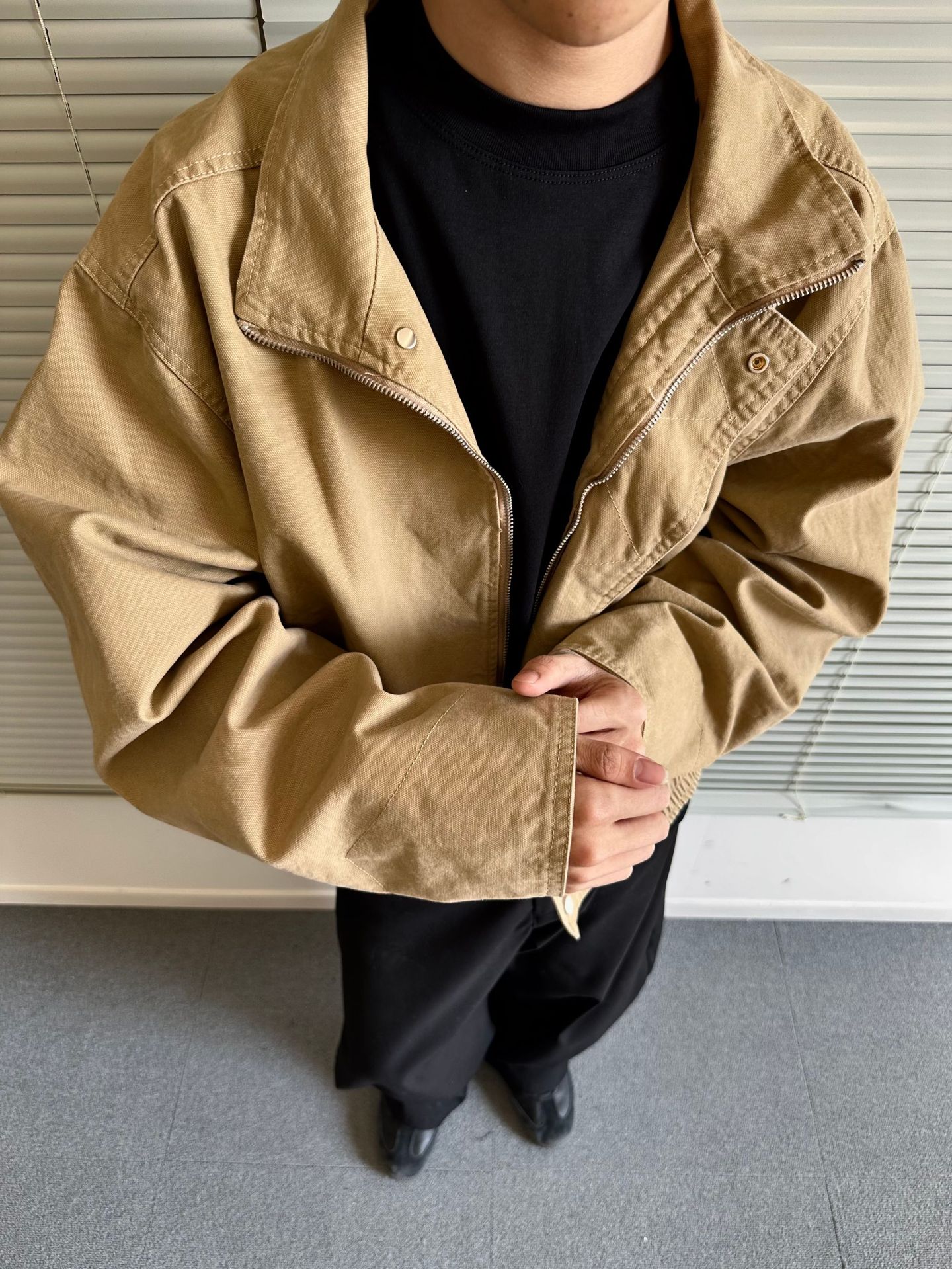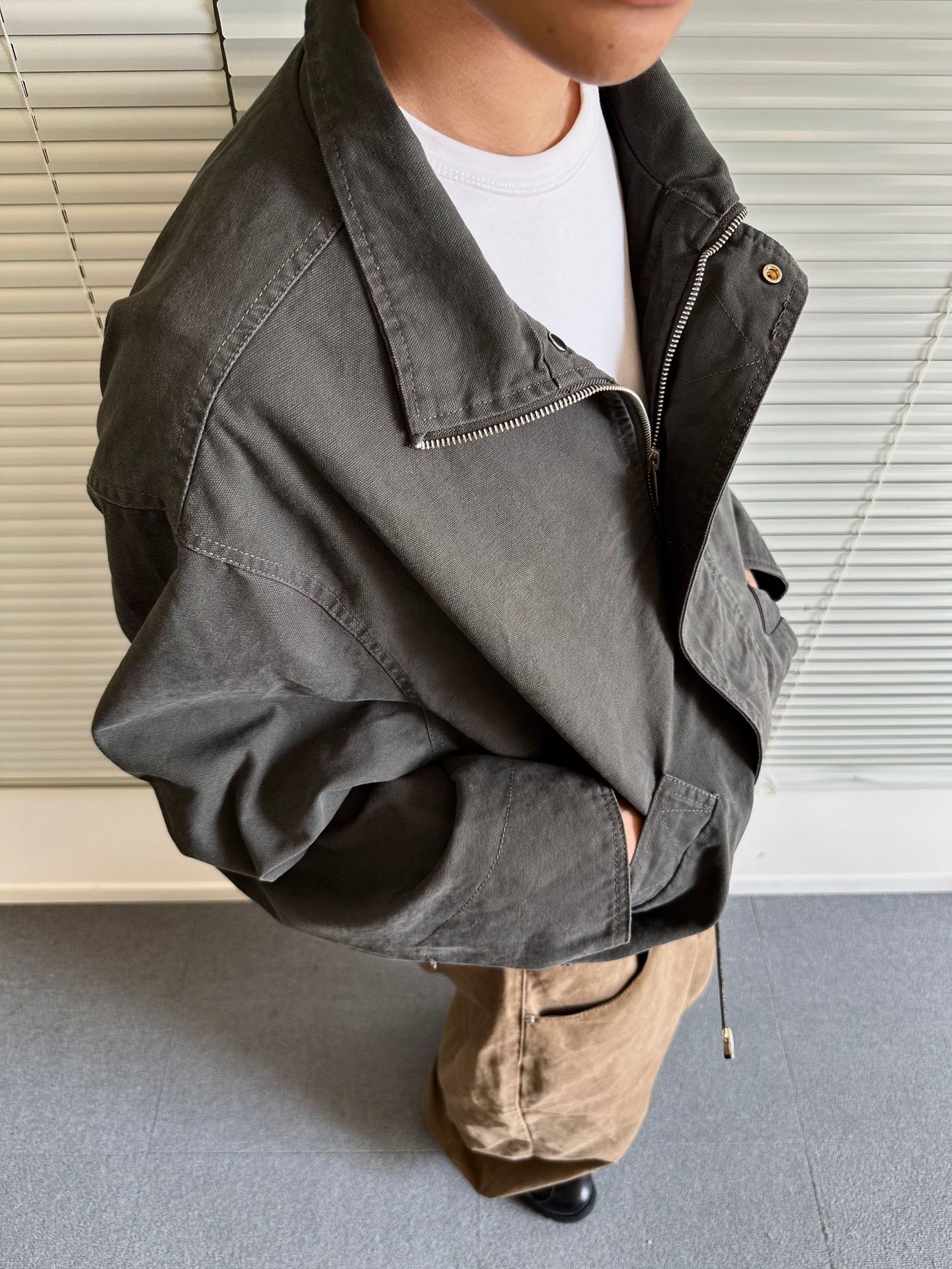 MADEEXTREME 봄 미국 복고풍 남성복 수직 칼라 폭격기 재킷 짧은 와이드 박스 작업복 세탁 재킷스토어 가기